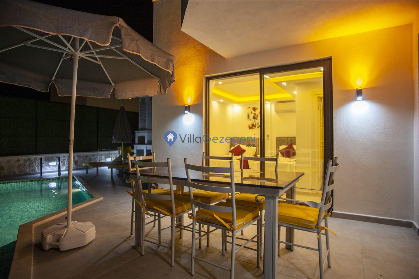 Villamızın genel konsept ve özelliklerinden tekrar bahsedecek olursak; villamızın 1 adet müstakil özel havuzu bulunmaktadır. Ortalama bir bahçeye sahip olan villamız rahatlığı ön planda tutan 2 adet yatak odası,3 yatak,2 banyo, hareket alanı geniş bir mutfak ve 4 kişinin geniş aralıklarla rahatlıkla oturabileceği koltuklara sahip salonu bulunmaktadır.