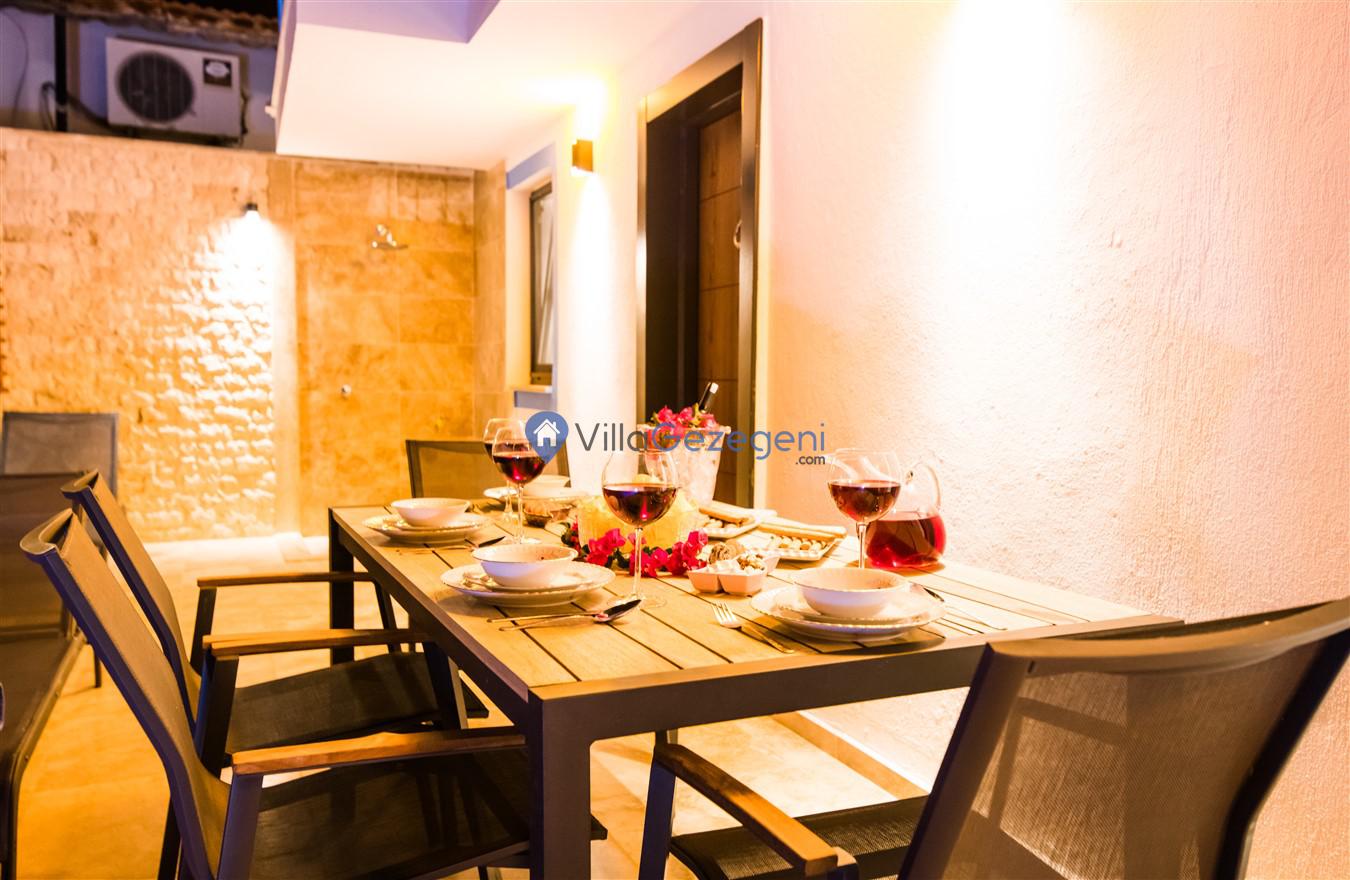 Yemek masası ve rahat bahçe mobilyaları, villamızın bahçesinde sizin için hazırlandı. Bu eşsiz ortamda sevdiklerinizle unutulmaz anlar yaşama fırsatını yakalayabilirsiniz.
