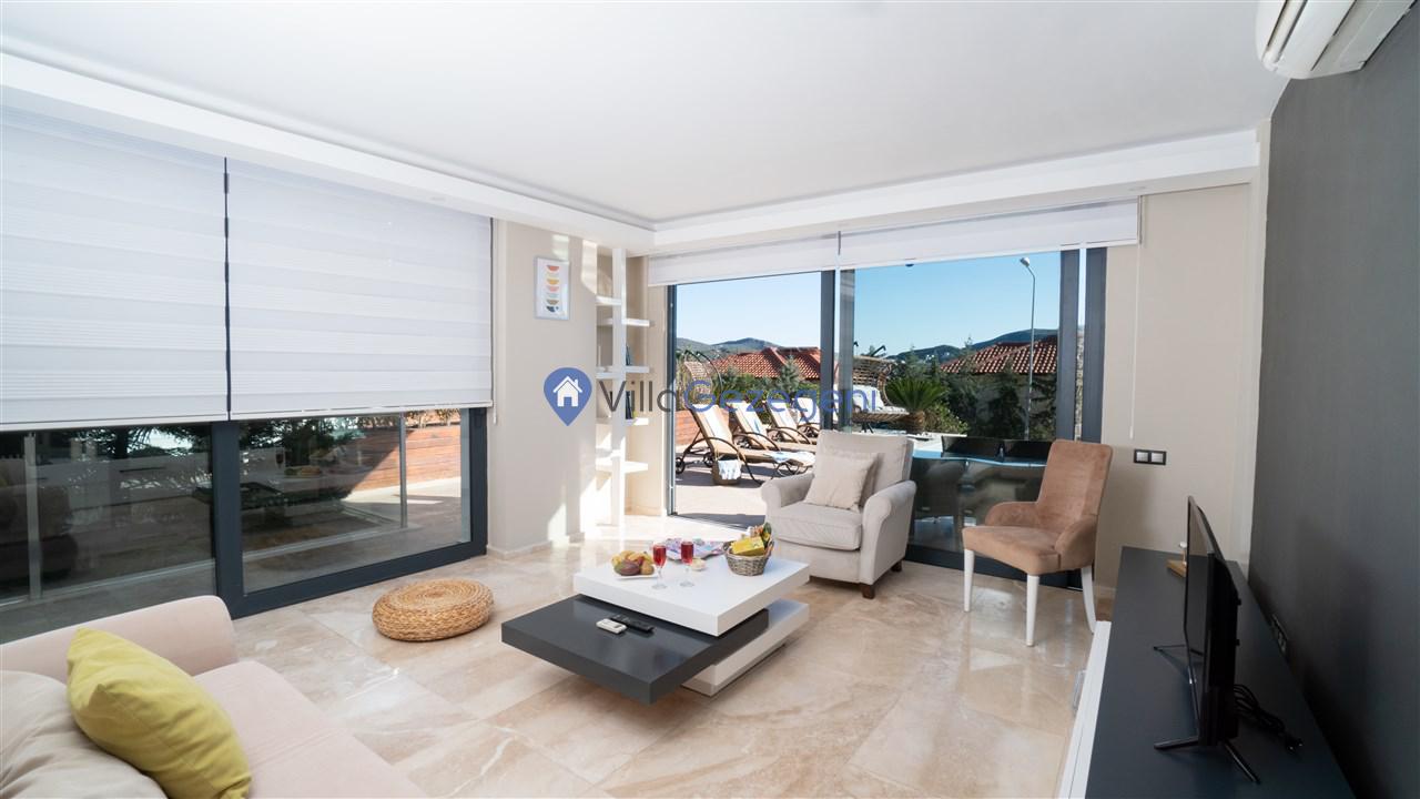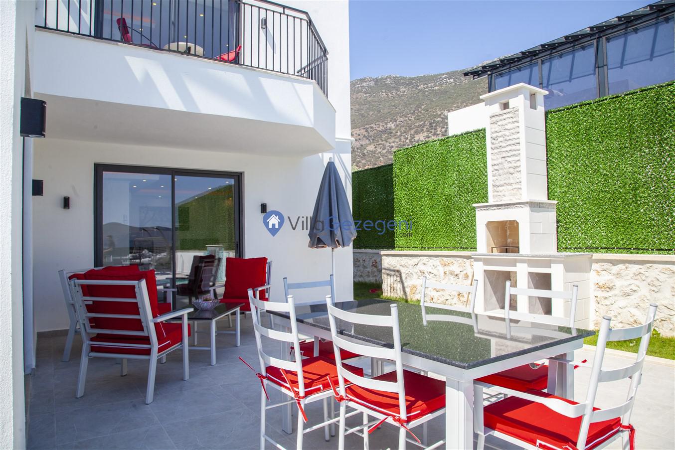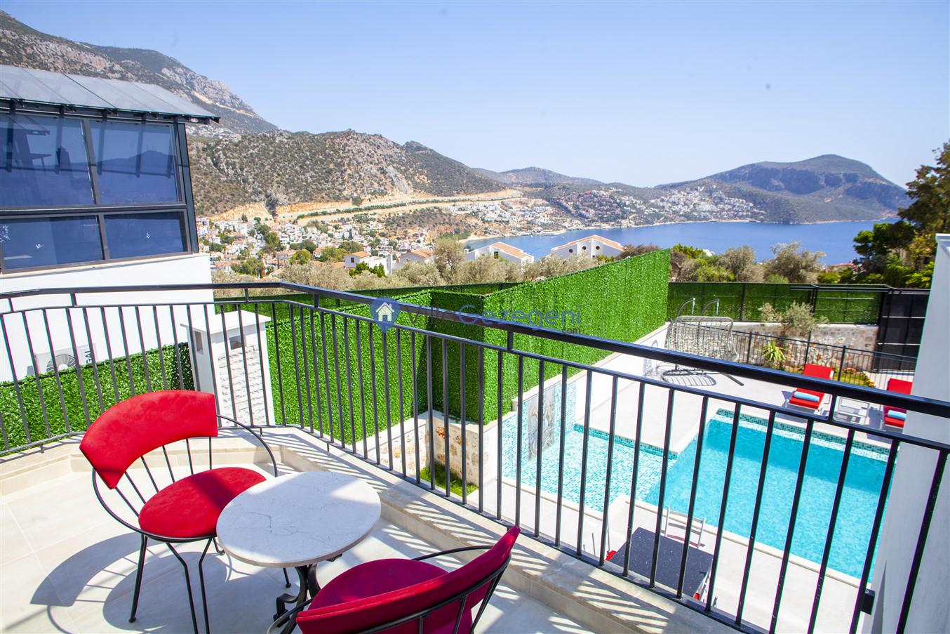 Villa Otantik, Kalkan Ortaalan'da 11 kişilik, deniz manzaralı, doğa içerisinde, merkeze yakın konumda, kalabalık gruplar için uygun kiralık villa.