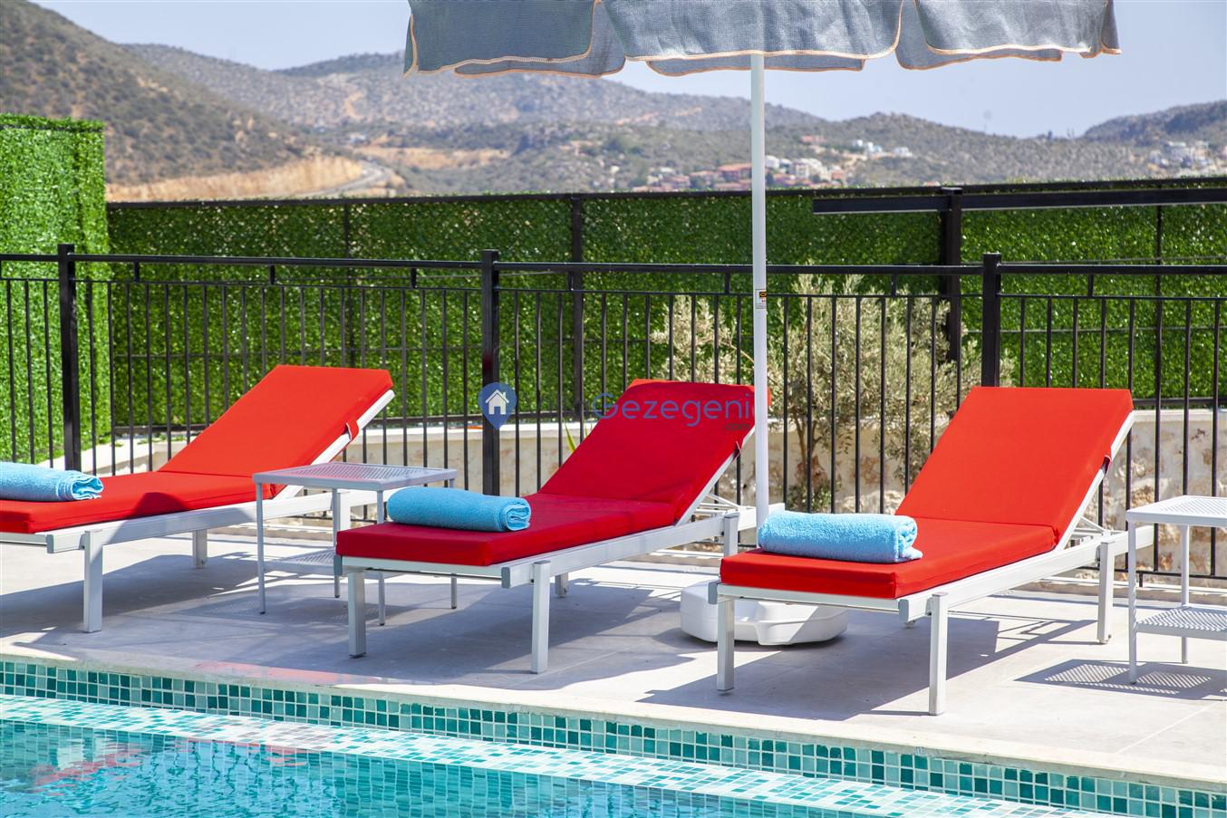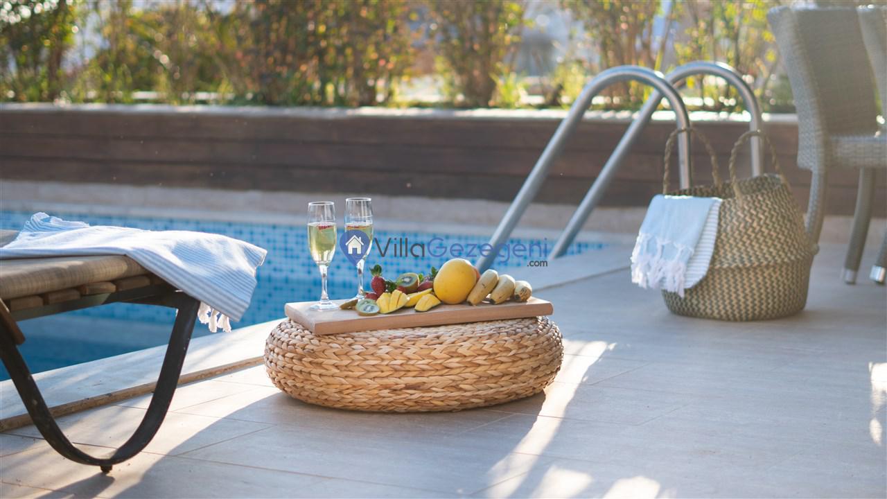 Villamızın genel konsept ve özelliklerinden tekrar bahsedecek olursak; villamızın 1 adet müstakil özel havuzu bulunmaktadır. Ortalama bir bahçeye sahip olan villamız rahatlığı ön planda tutan 2 adet yatak odası,3 yatak,2 banyo, hareket alanı geniş bir mutfak ve 4 kişinin geniş aralıklarla rahatlıkla oturabileceği koltuklara sahip salonu bulunmaktadır.