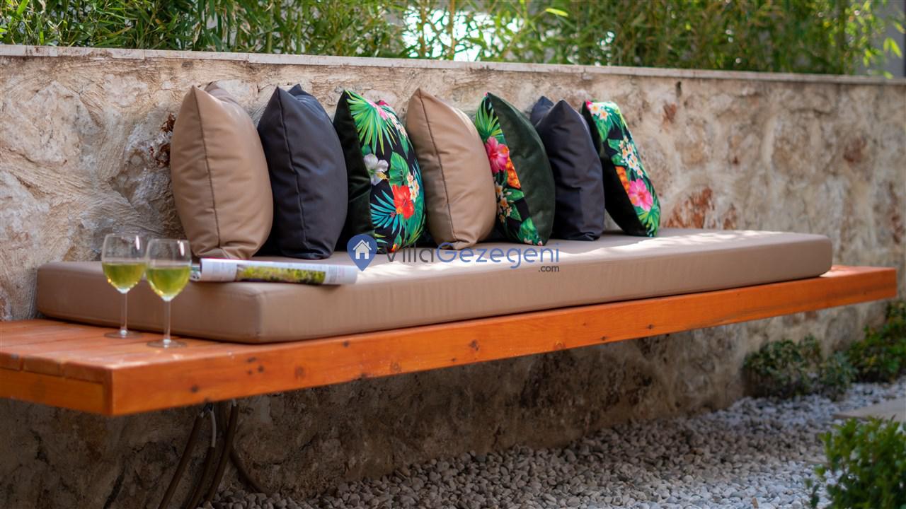 Yemek masası ve rahat bahçe mobilyaları, villamızın bahçesinde sizin için hazırlandı. Bu eşsiz ortamda sevdiklerinizle unutulmaz anlar yaşama fırsatını yakalayabilirsiniz.