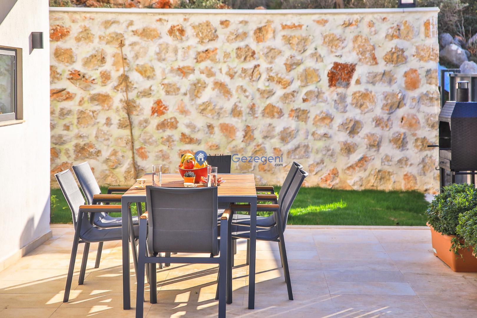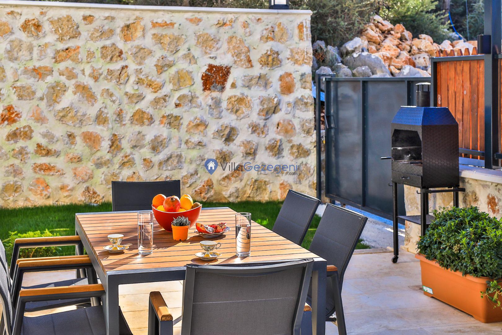 Yemek Masası ve bahçe mobilyaları kullanımınız için hazır bulunmaktadır sevdikleriniz ile beraber yemekler yiyip sohbetin dibine vurabilirsiniz. Villanın bahçesindeki salıncak ile keyifli vakitler geçirebilirsiniz.