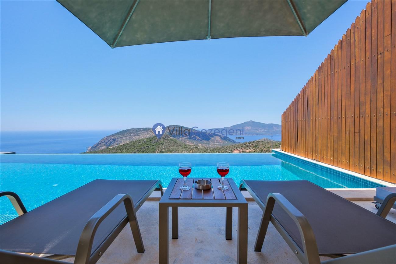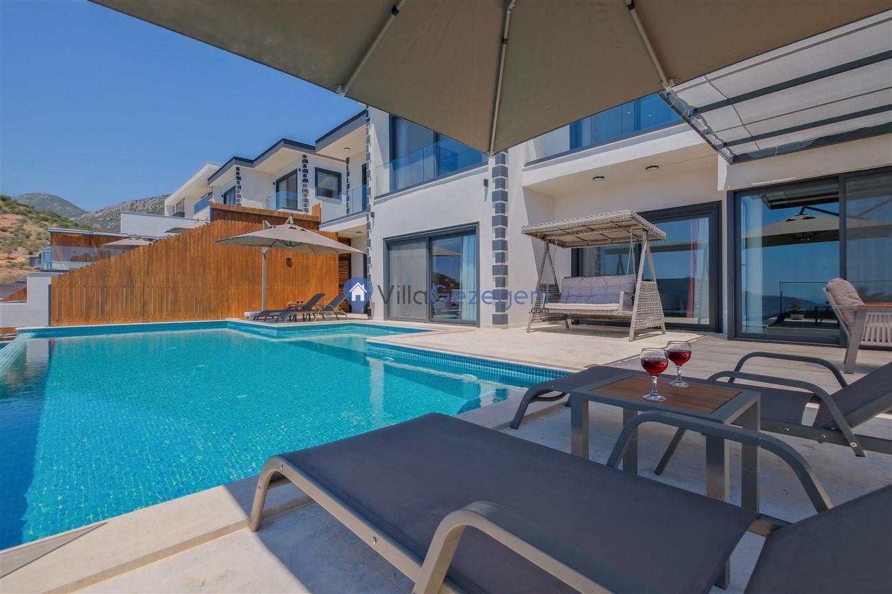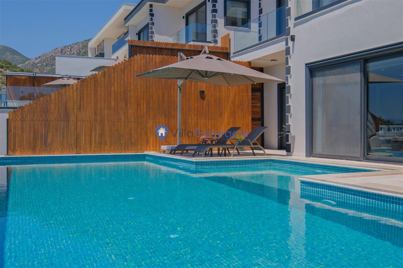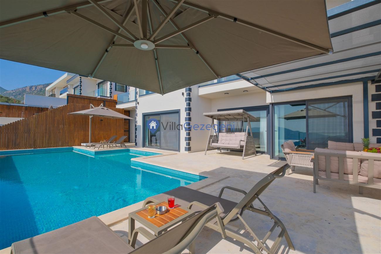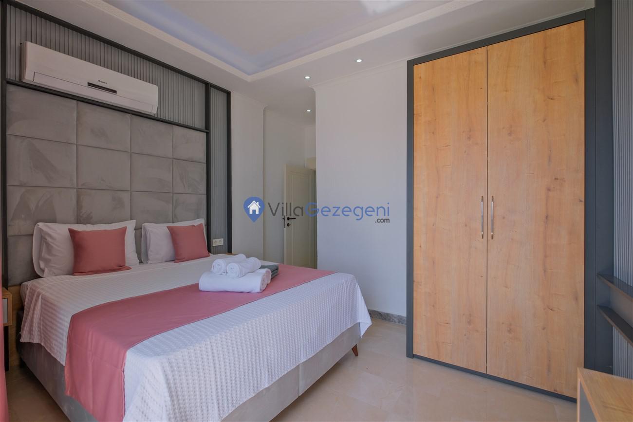 Kalkan Kördere mevkiinde deniz manzaralı muhafazakar aileler için ideal 2 yatak odalı yazlık kiralık villa