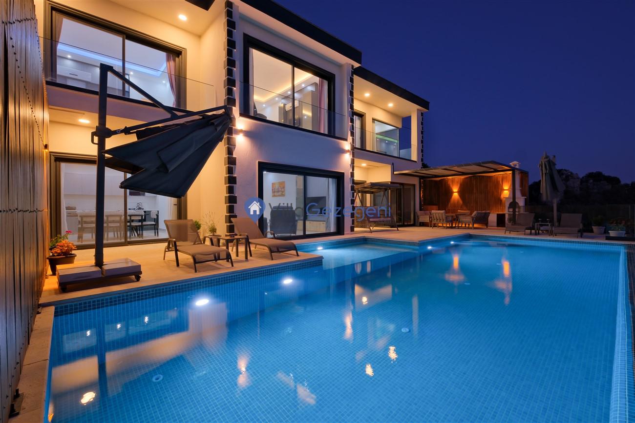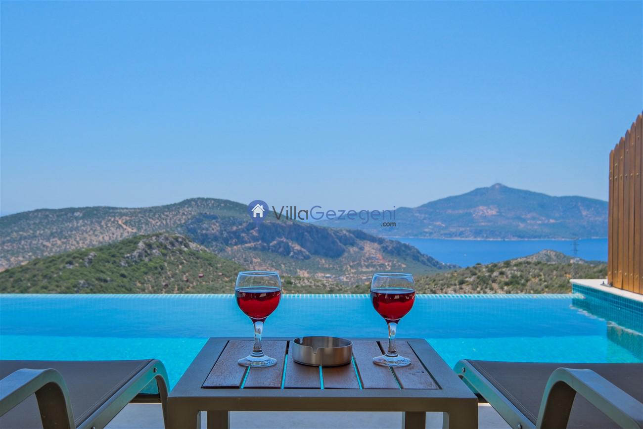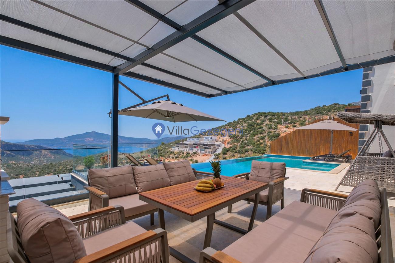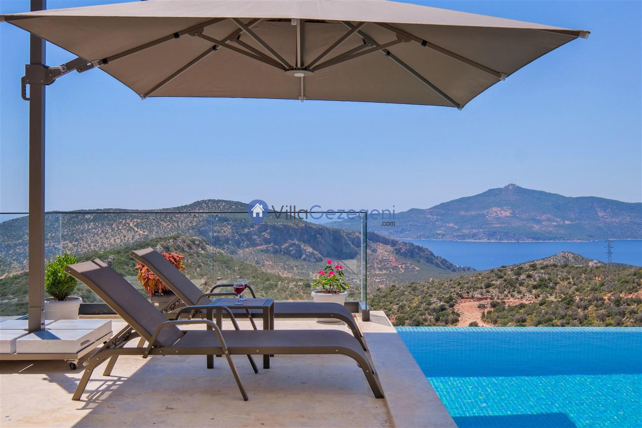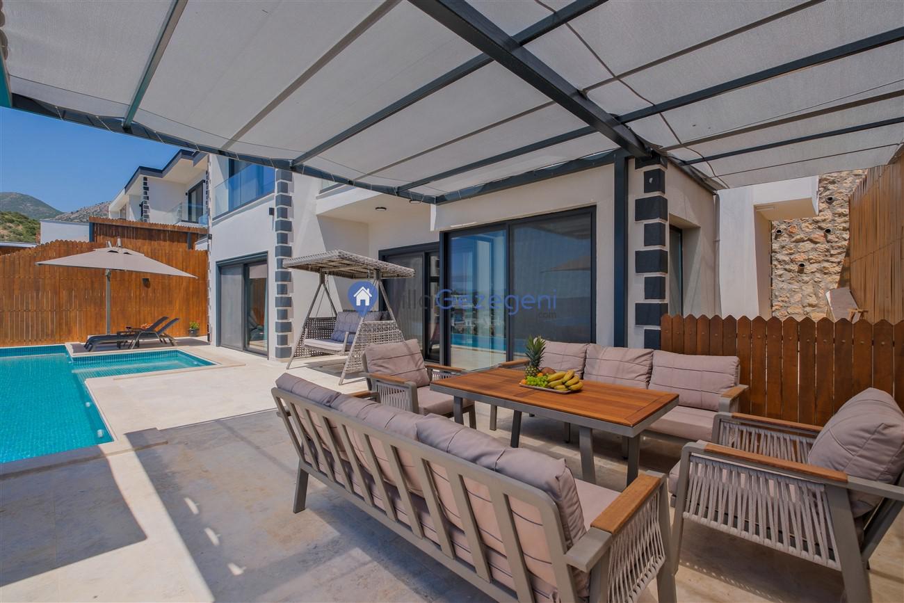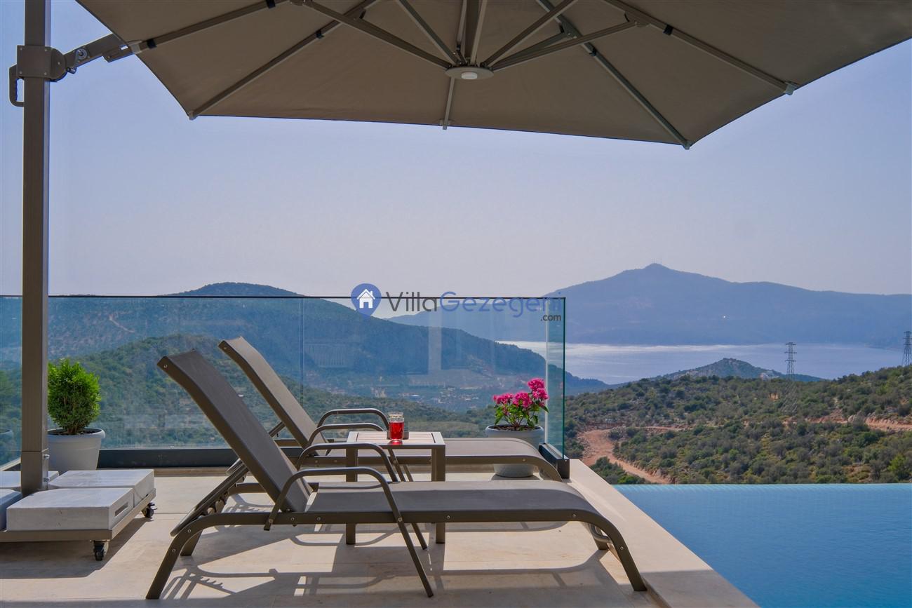 Kalkan Kördere mevkiinde deniz manzaralı muhafazakar aileler için ideal 2 yatak odalı yazlık kiralık villa