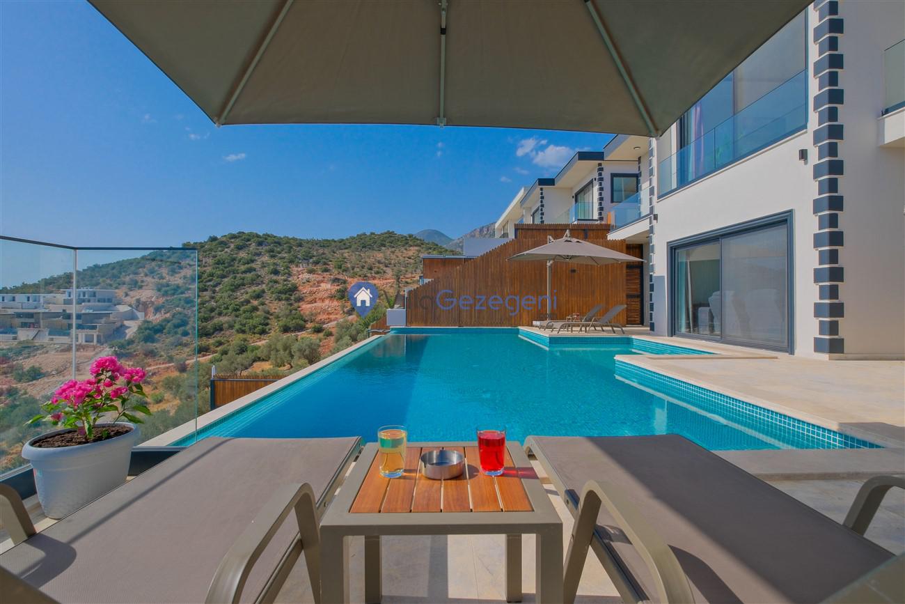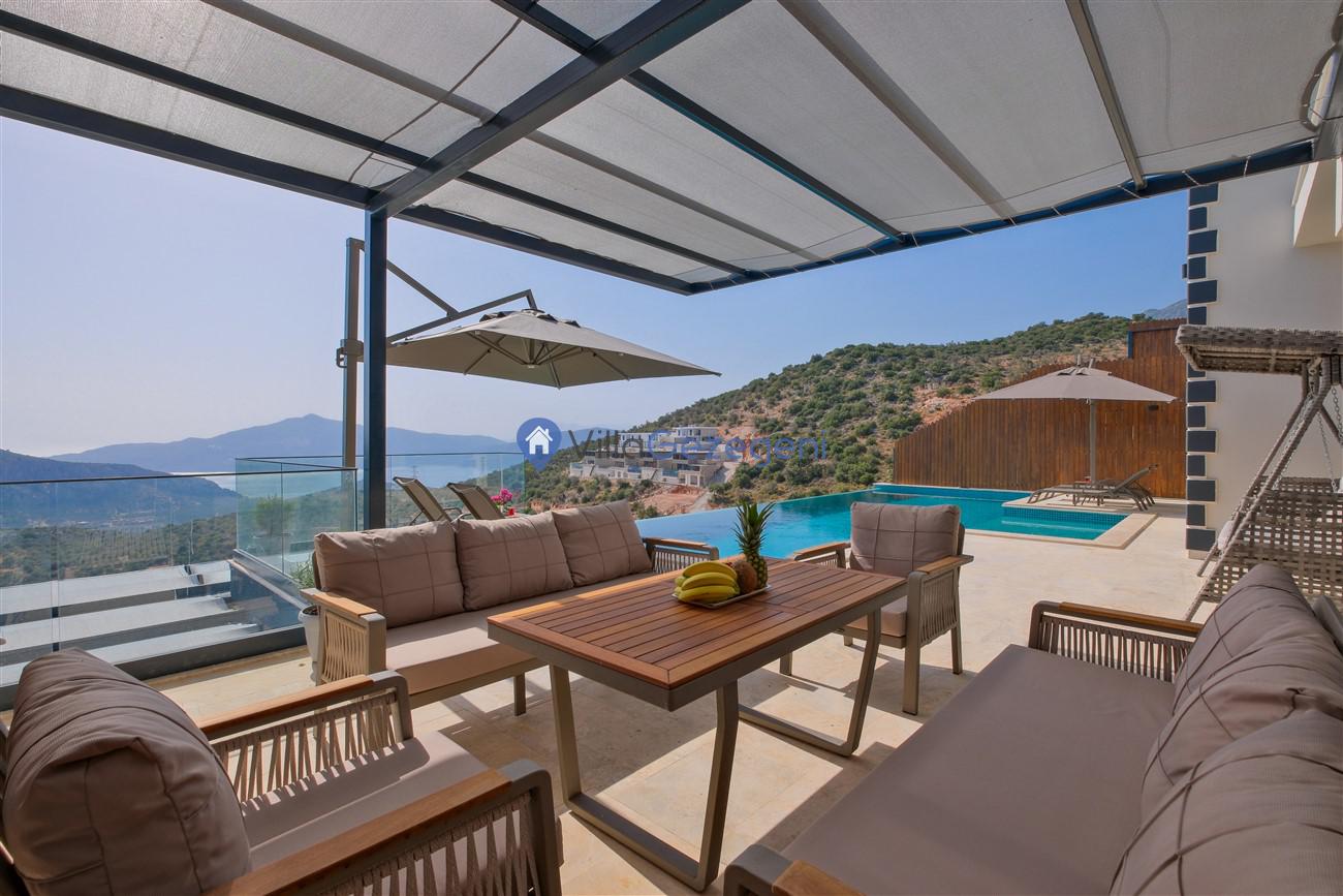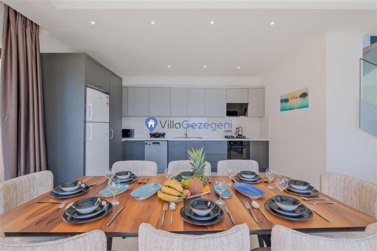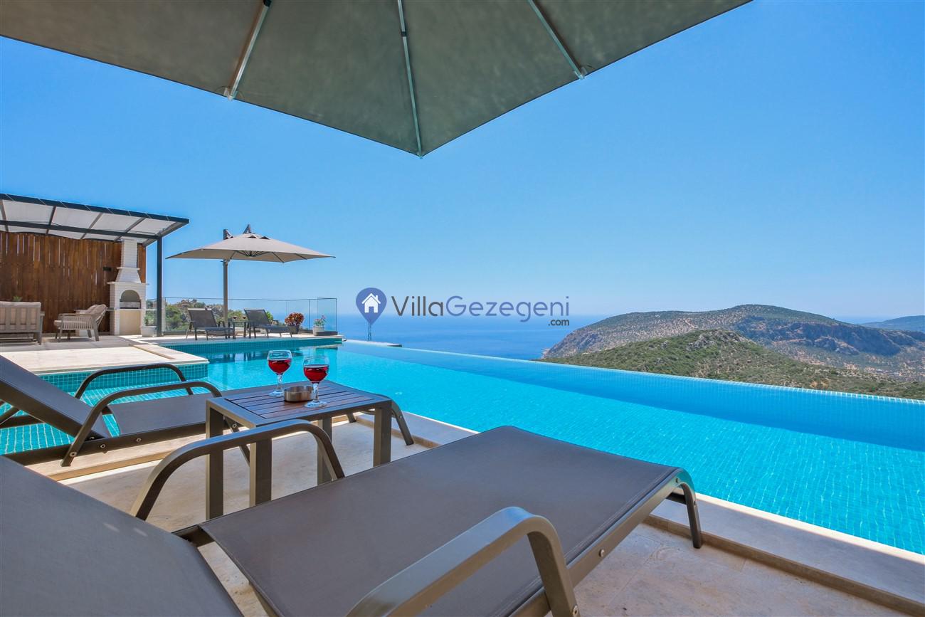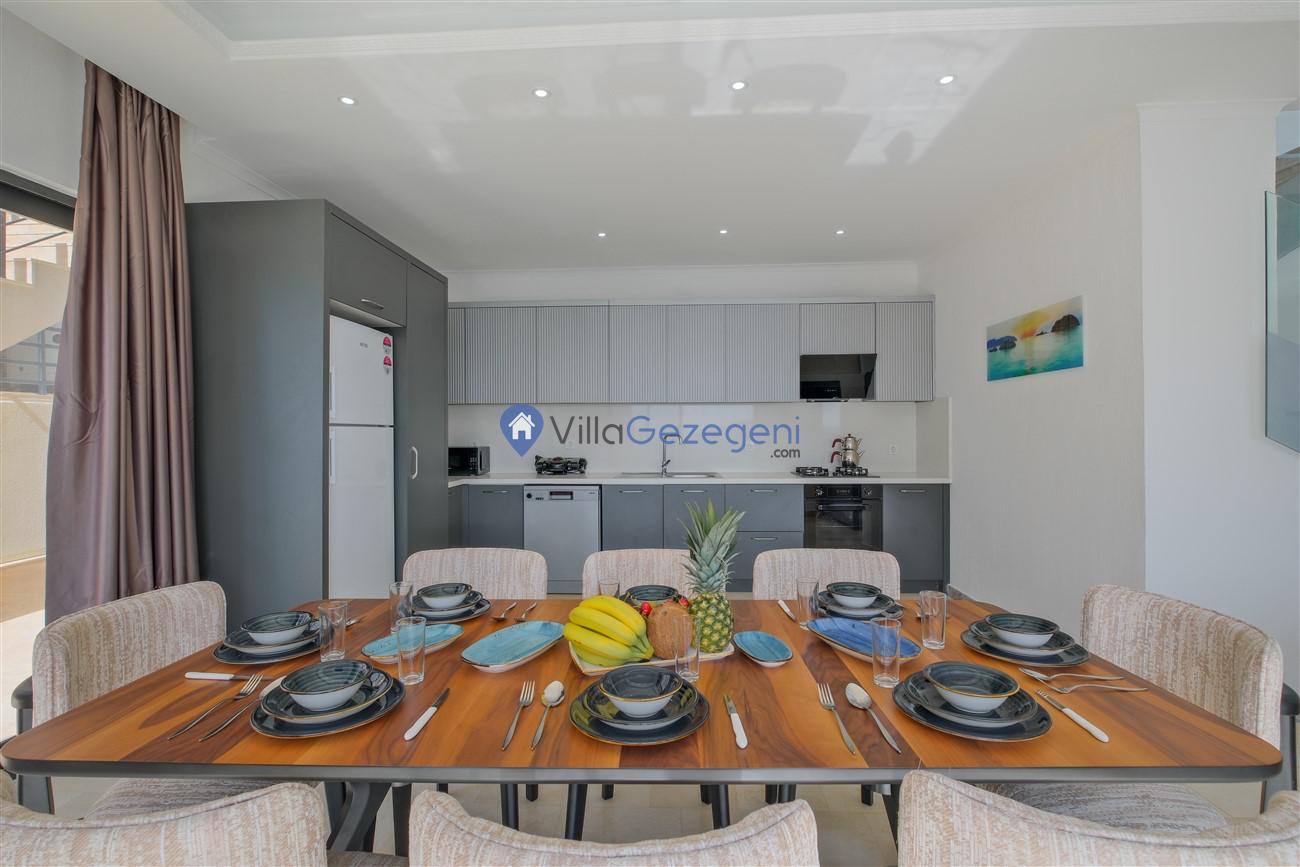 Kalkan Kördere mevkiinde deniz manzaralı muhafazakar aileler için ideal 2 yatak odalı yazlık kiralık villa