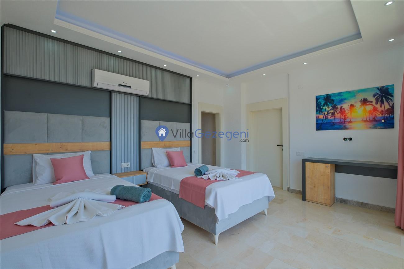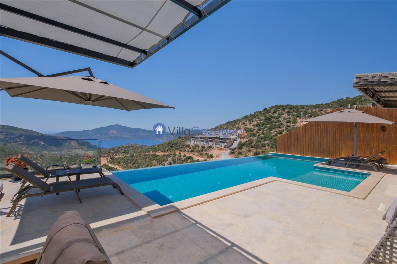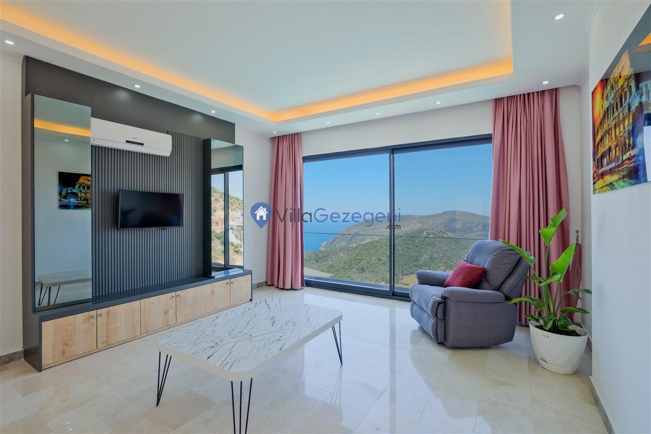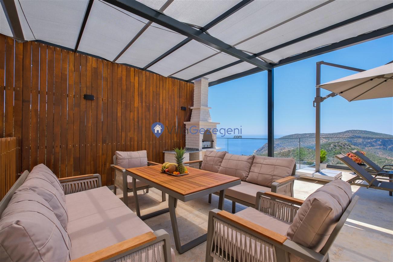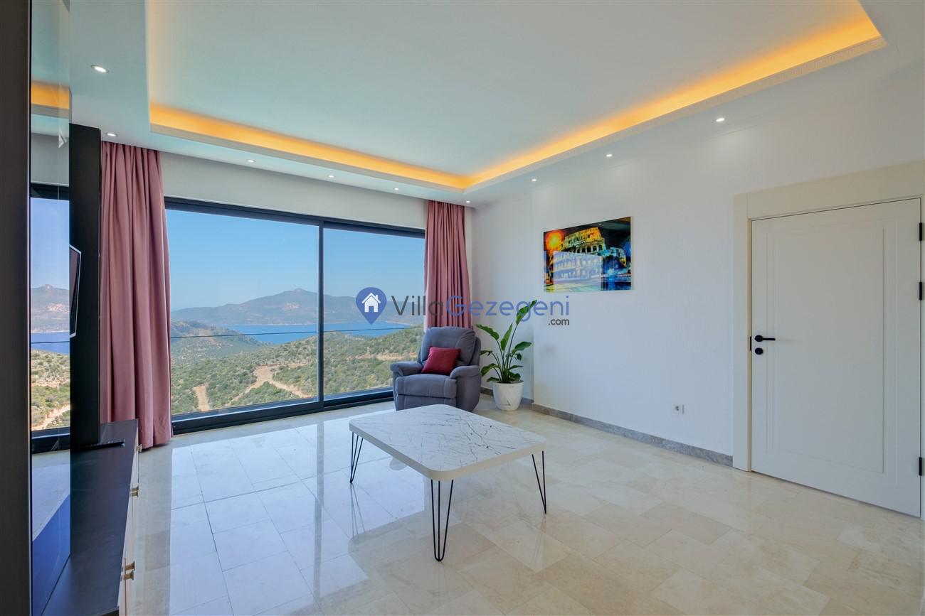 Kaş Kalkan Kördere Ordu bölgesinde yer alan 3 yatak odalı 6 kişi kapasiteli deniz manzaralı kiralık tatil villası.