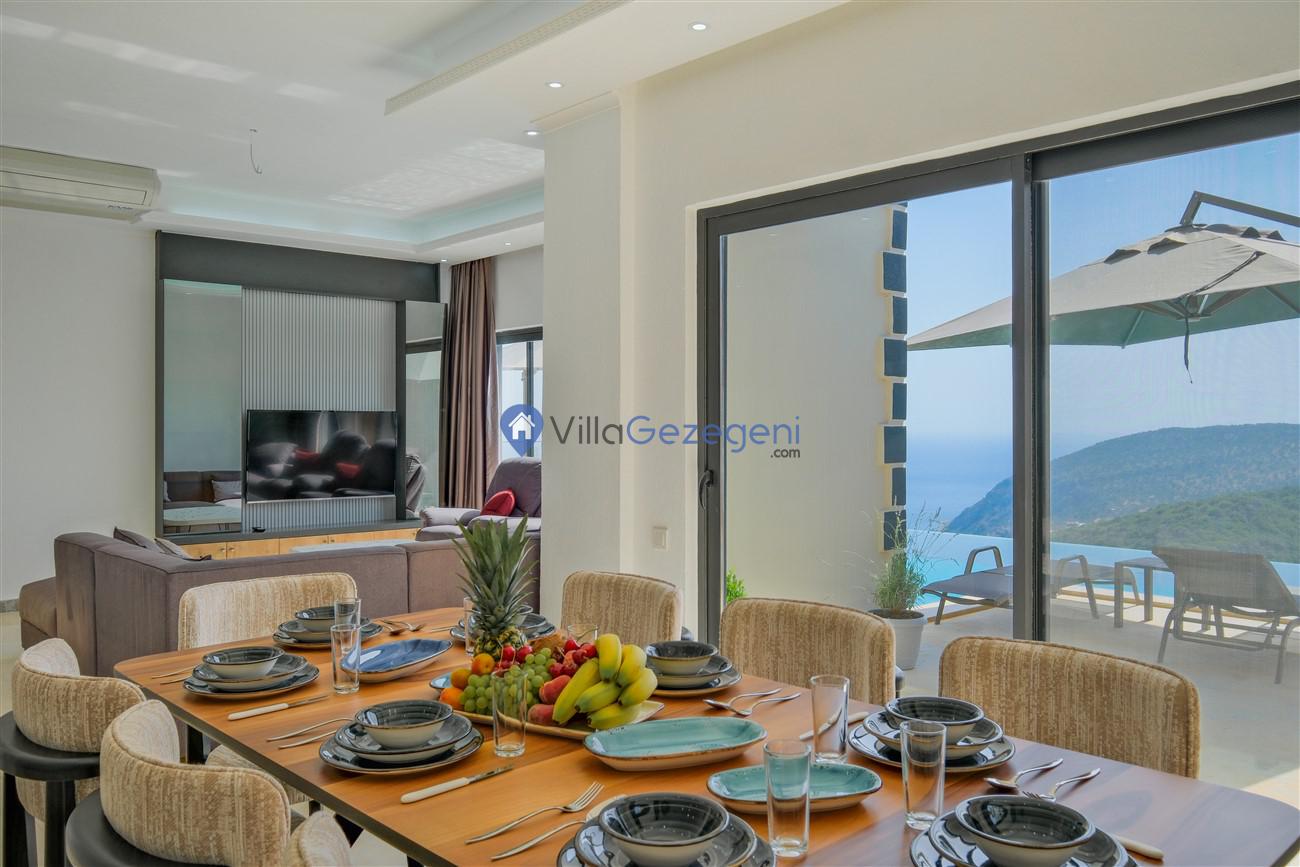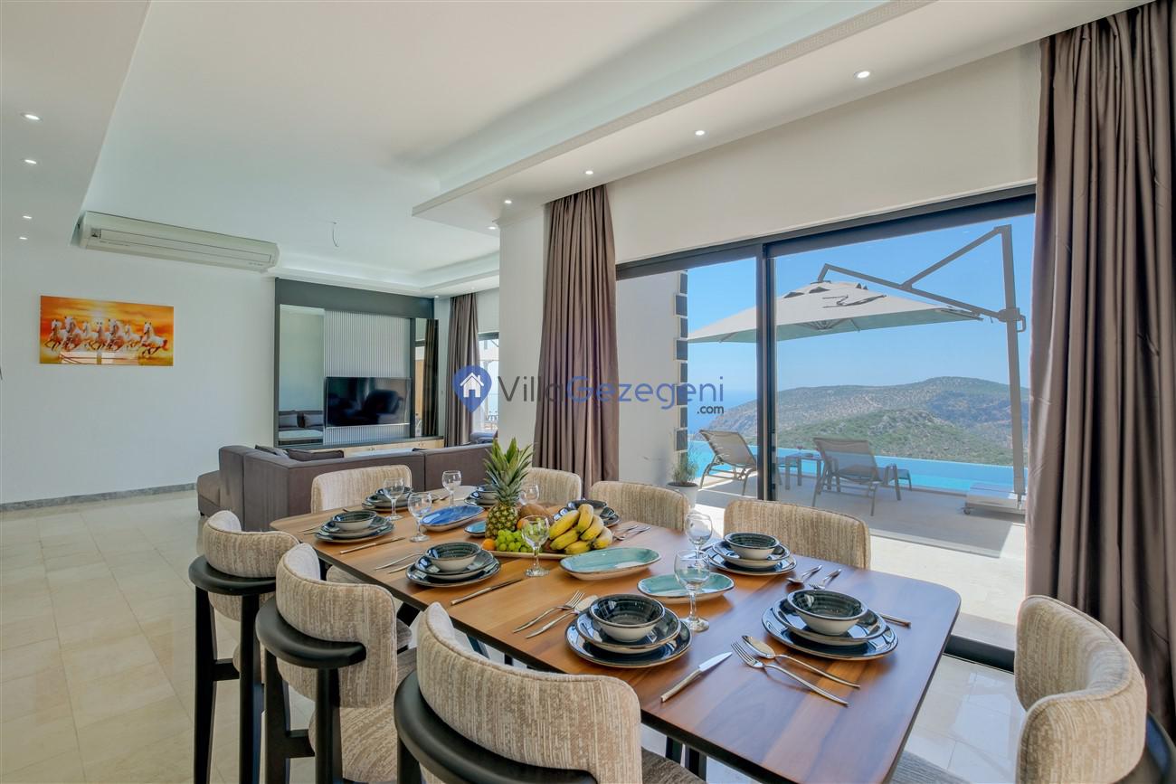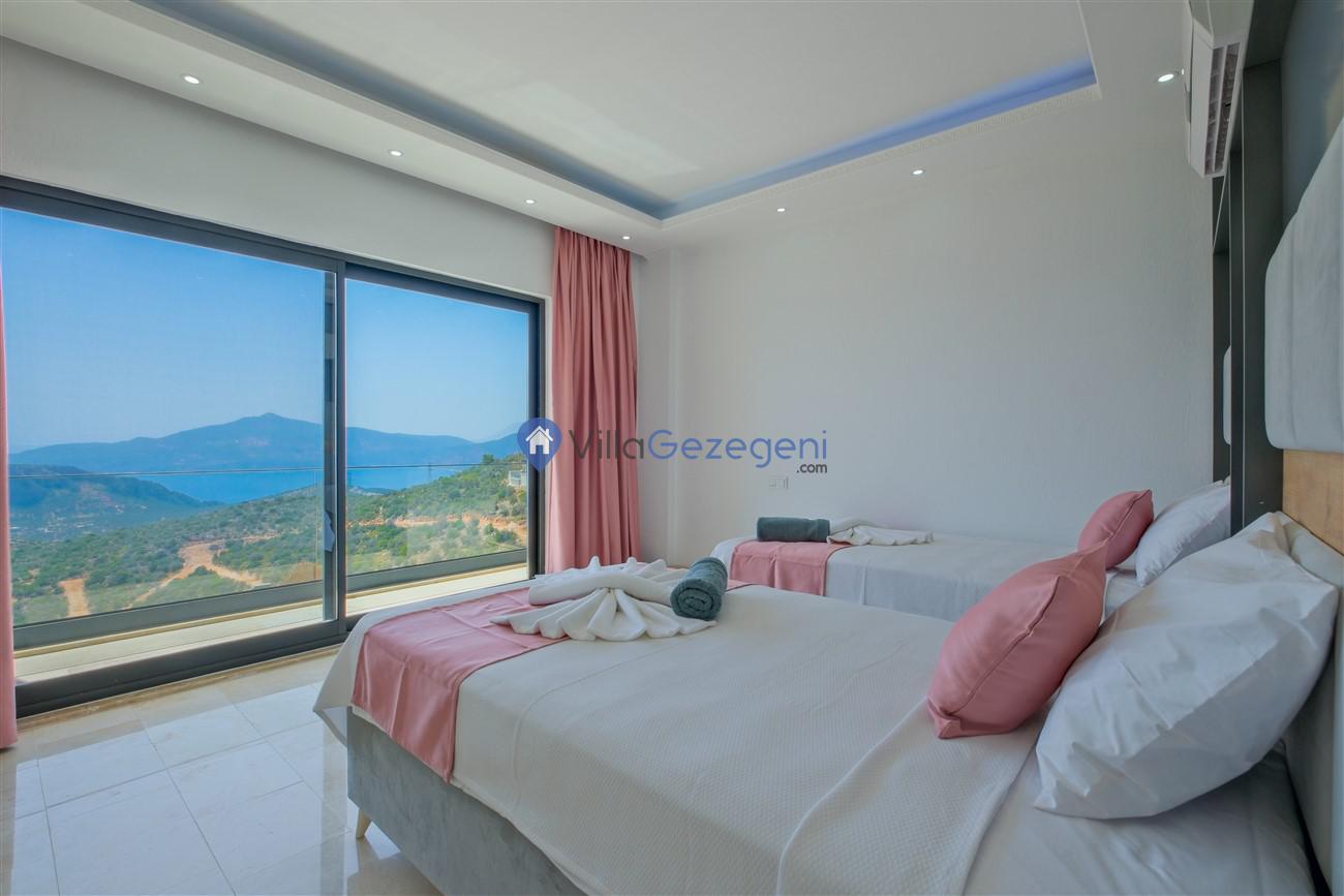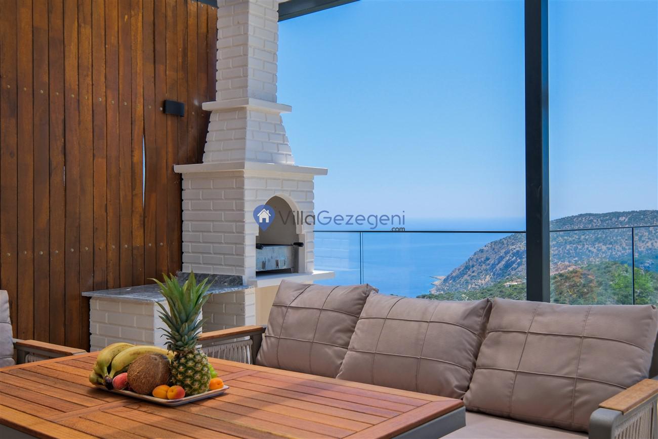 Kaş Kalkan Kördere Ordu bölgesinde yer alan 3 yatak odalı 6 kişi kapasiteli deniz manzaralı kiralık tatil villası.