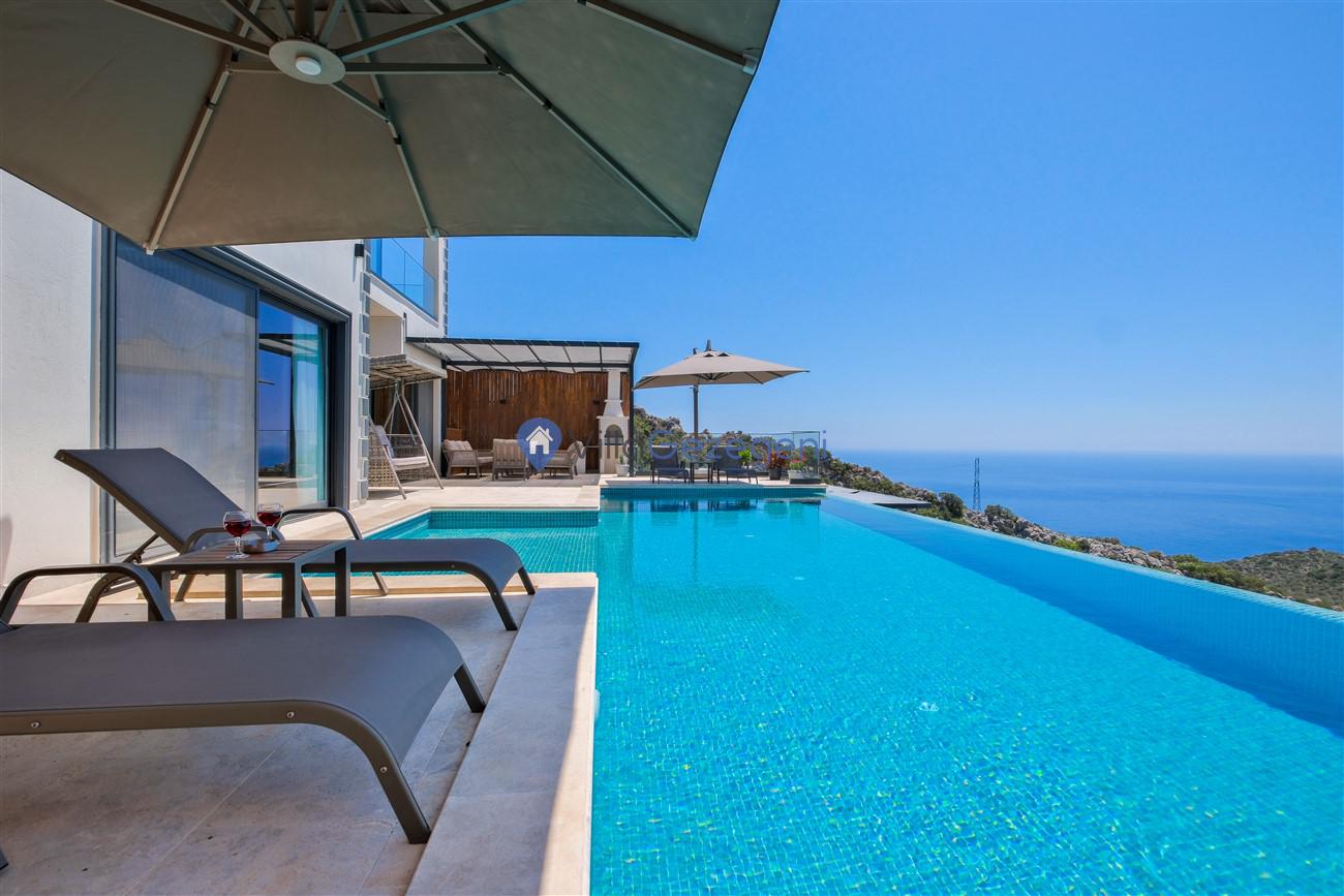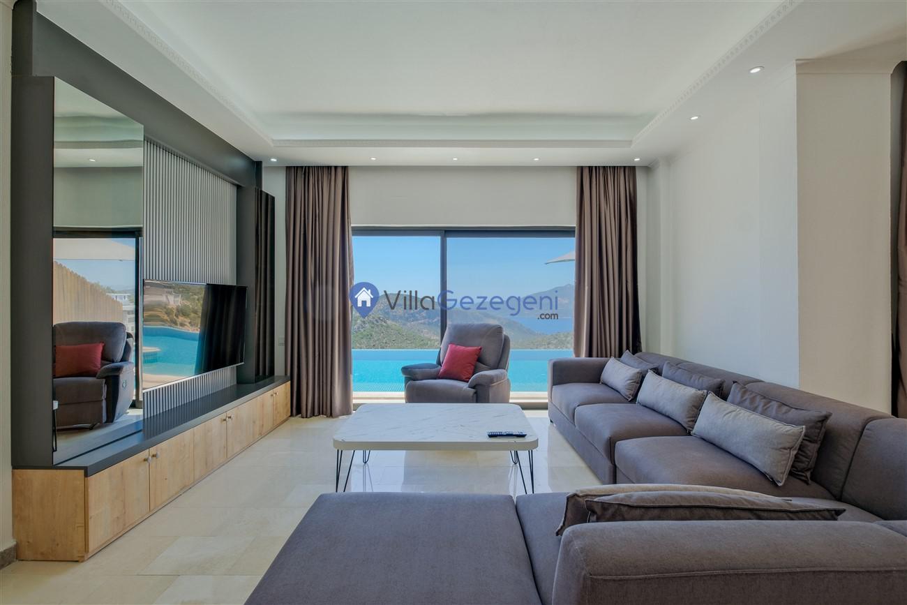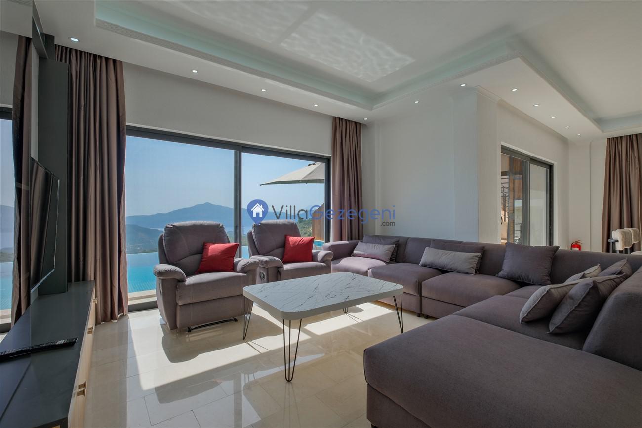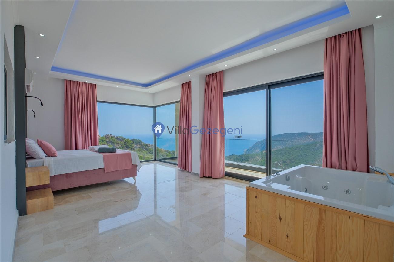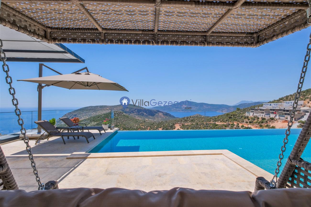 Kaş Kalkan Kördere Ordu bölgesinde yer alan 3 yatak odalı 6 kişi kapasiteli deniz manzaralı kiralık tatil villası.