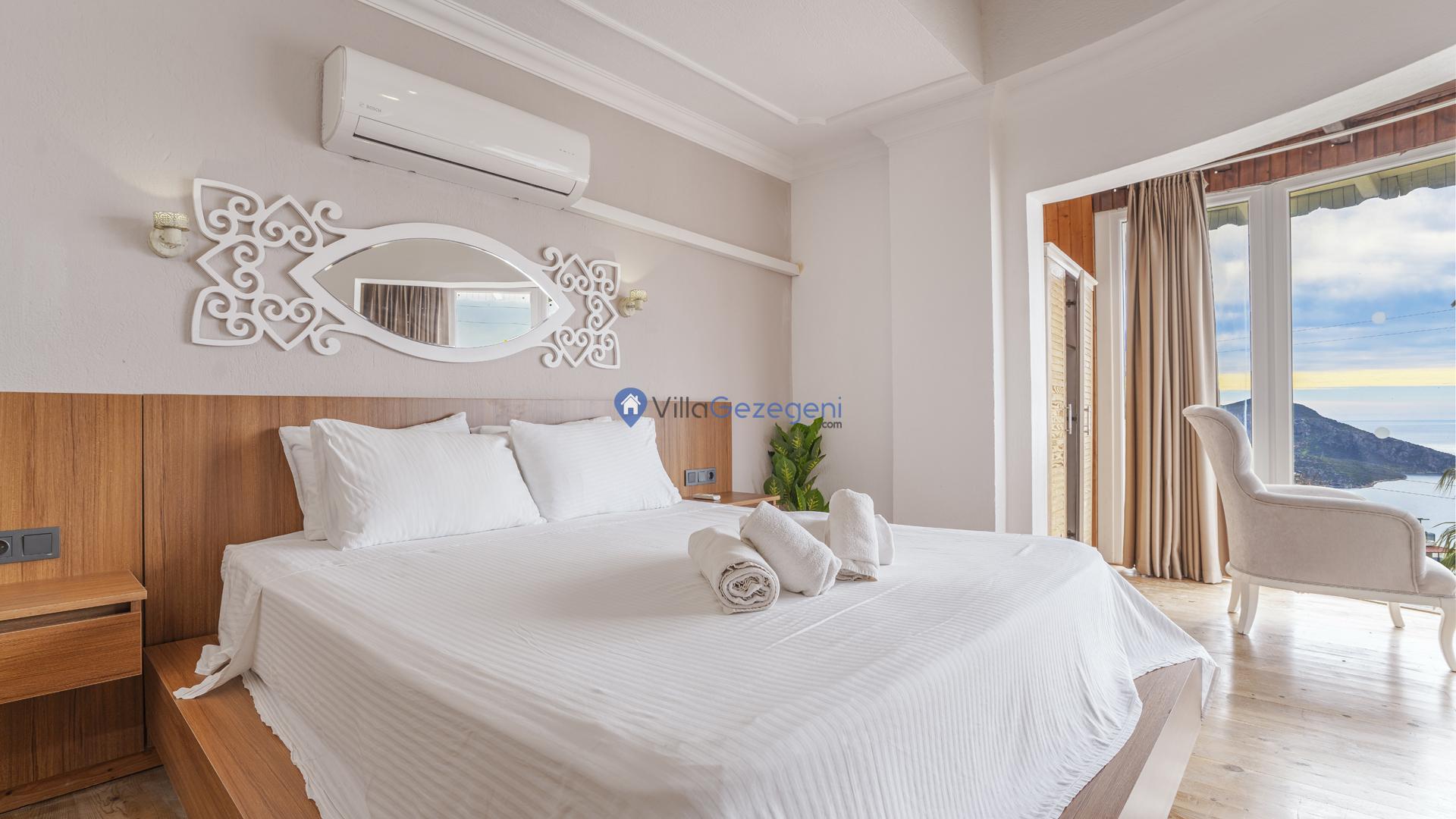 Kalkan Kızıltaş bölgesinde yer alan 3 yatak odalı 6 kişilik deniz manzaralı kiralık villa