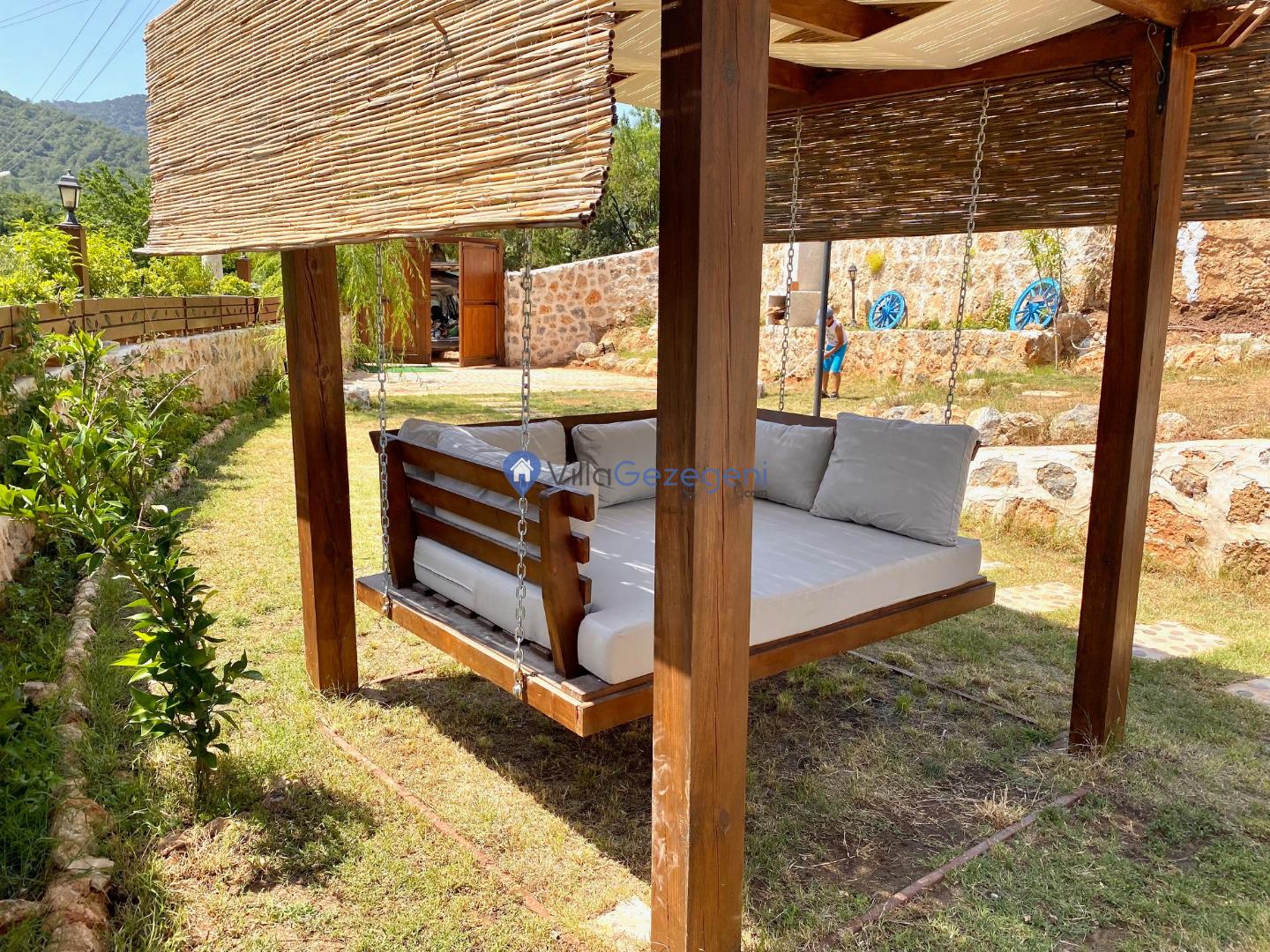 Yemek Masası ve bahçe mobilyaları kullanımınız için hazır bulunmaktadır sevdikleriniz ile beraber yemekler yiyip sohbetin dibine vurabilirsiniz. Villanın bahçesindeki salıncak ile keyifli vakitler geçirebilirsiniz.