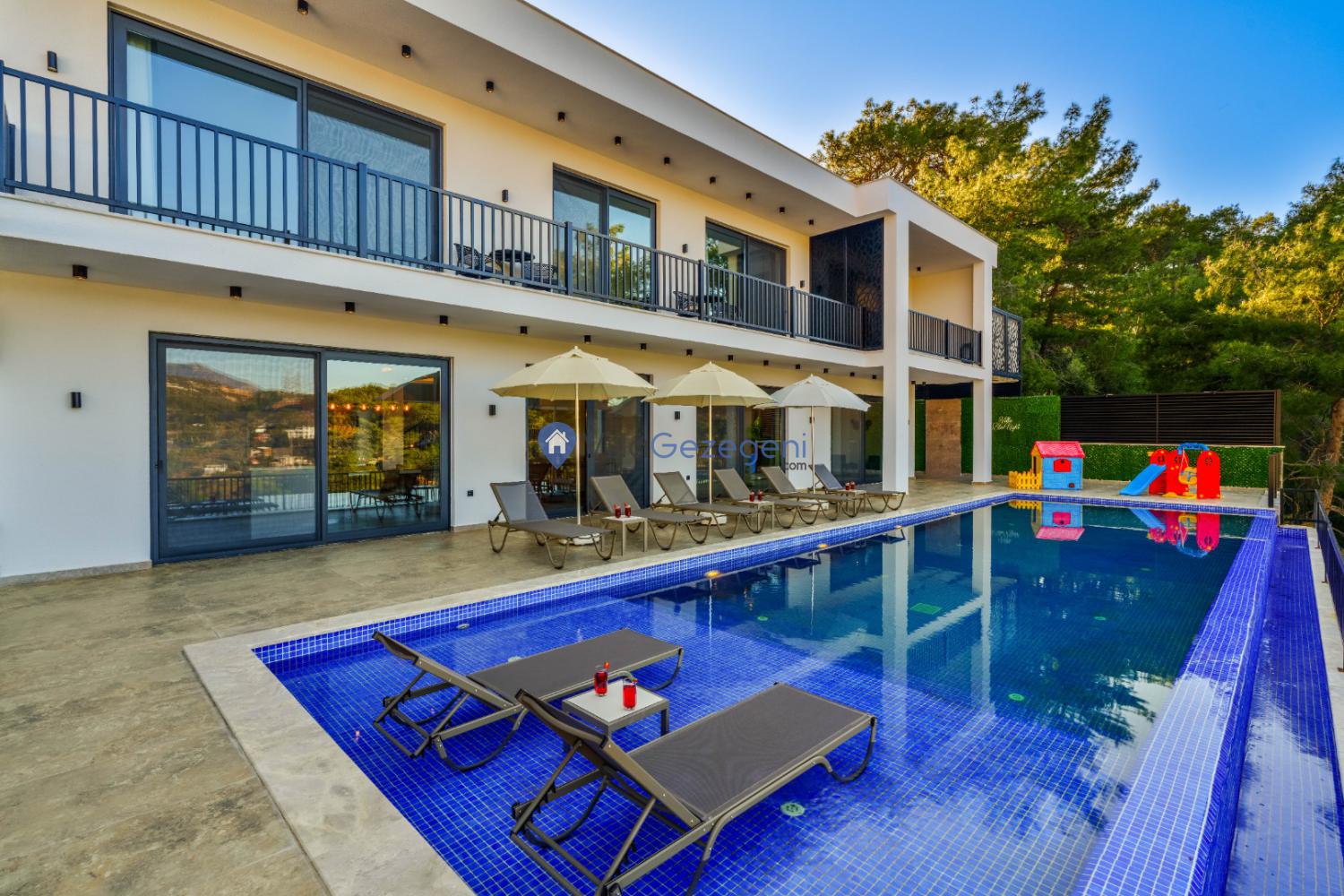 Doğayla iç içe konumlanan villa, misafirlerine hem sakin hem de keyifli bir tatil ortamı sağlar. Geniş ve ferah yaşam alanlarına sahip olan villada, konforlu bir konaklama deneyimi için ihtiyaç duyulabilecek tüm detaylar düşünülmüştür.