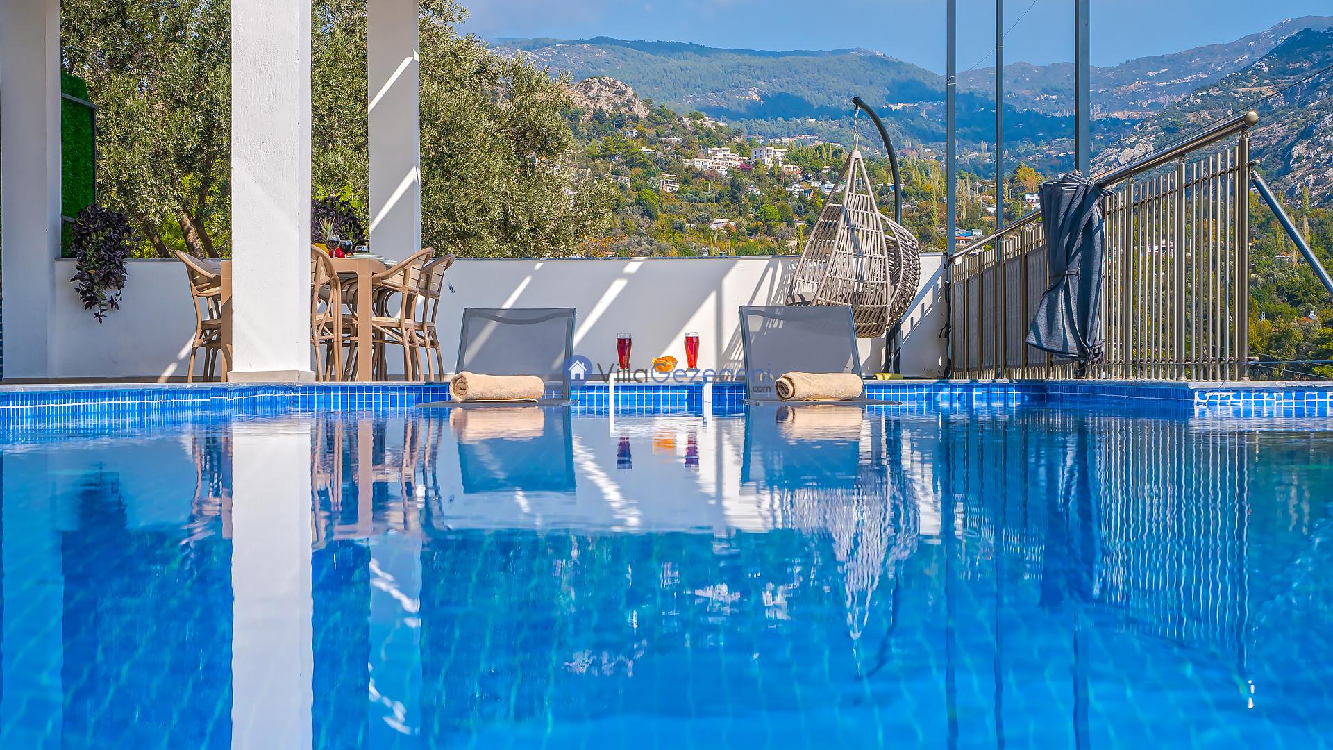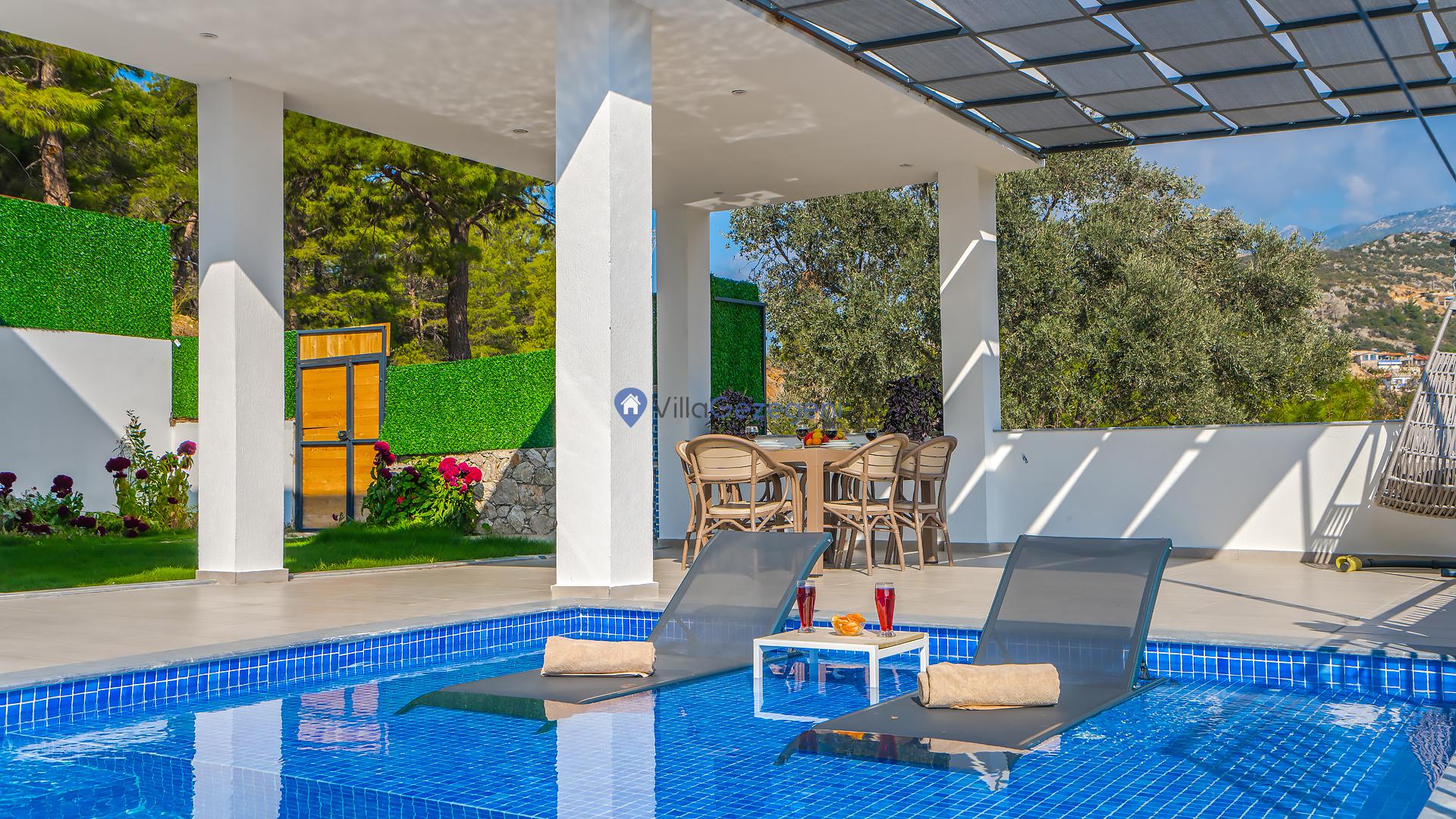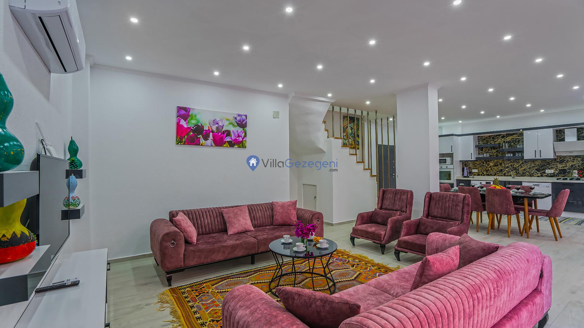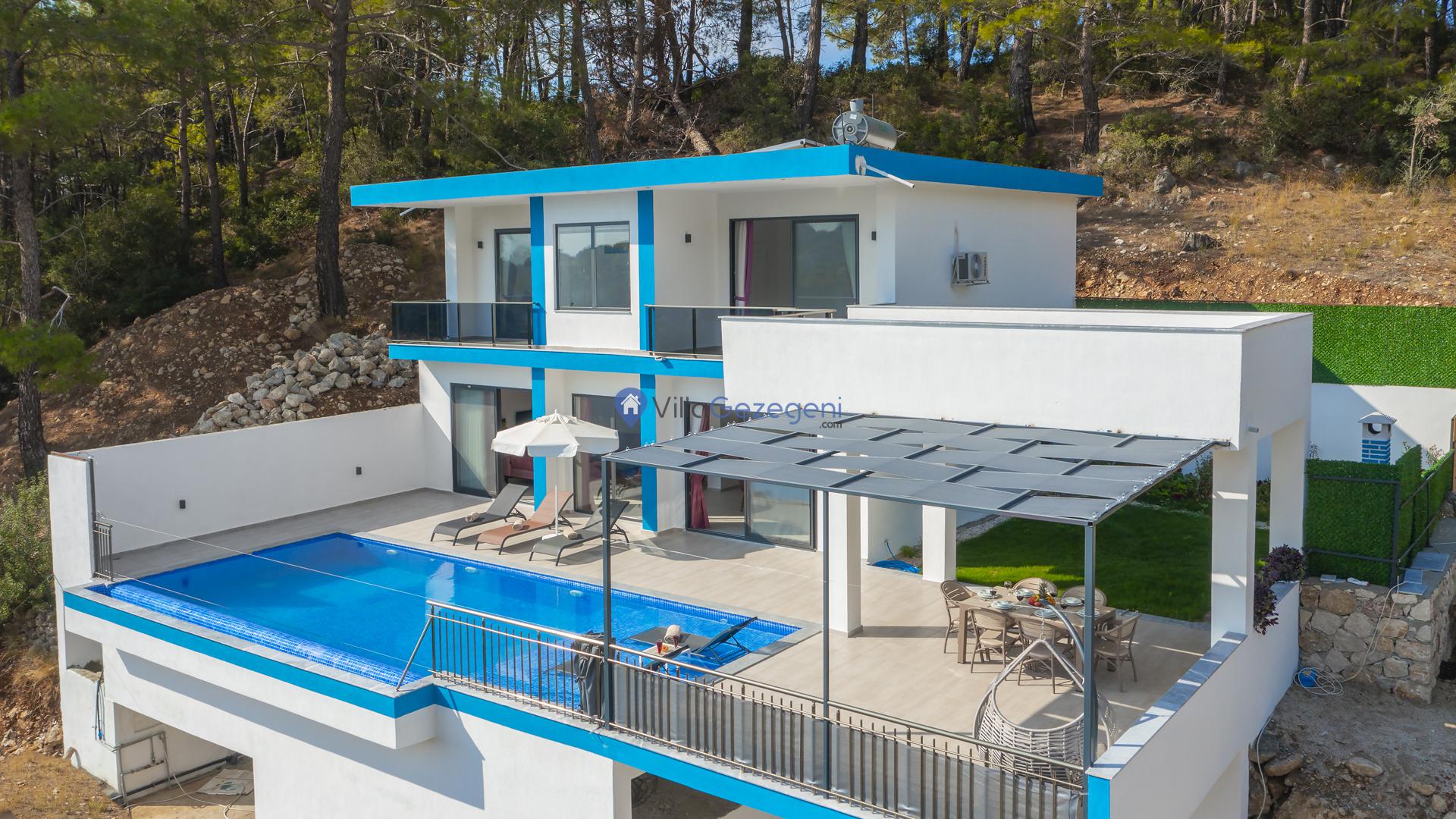 Villamızın genel konsept ve özelliklerinden tekrar bahsedecek olursak; villamızın 1 adet müstakil özel havuzu bulunmaktadır. Ortalama bir bahçeye sahip olan villamız rahatlığı ön planda tutan 2 adet yatak odası, 3 yatak, 2 banyo, hareket alanı geniş bir mutfak ve 4 kişinin geniş aralıklarla rahatlıkla oturabileceği koltuklara sahip salonu bulunmaktadır.