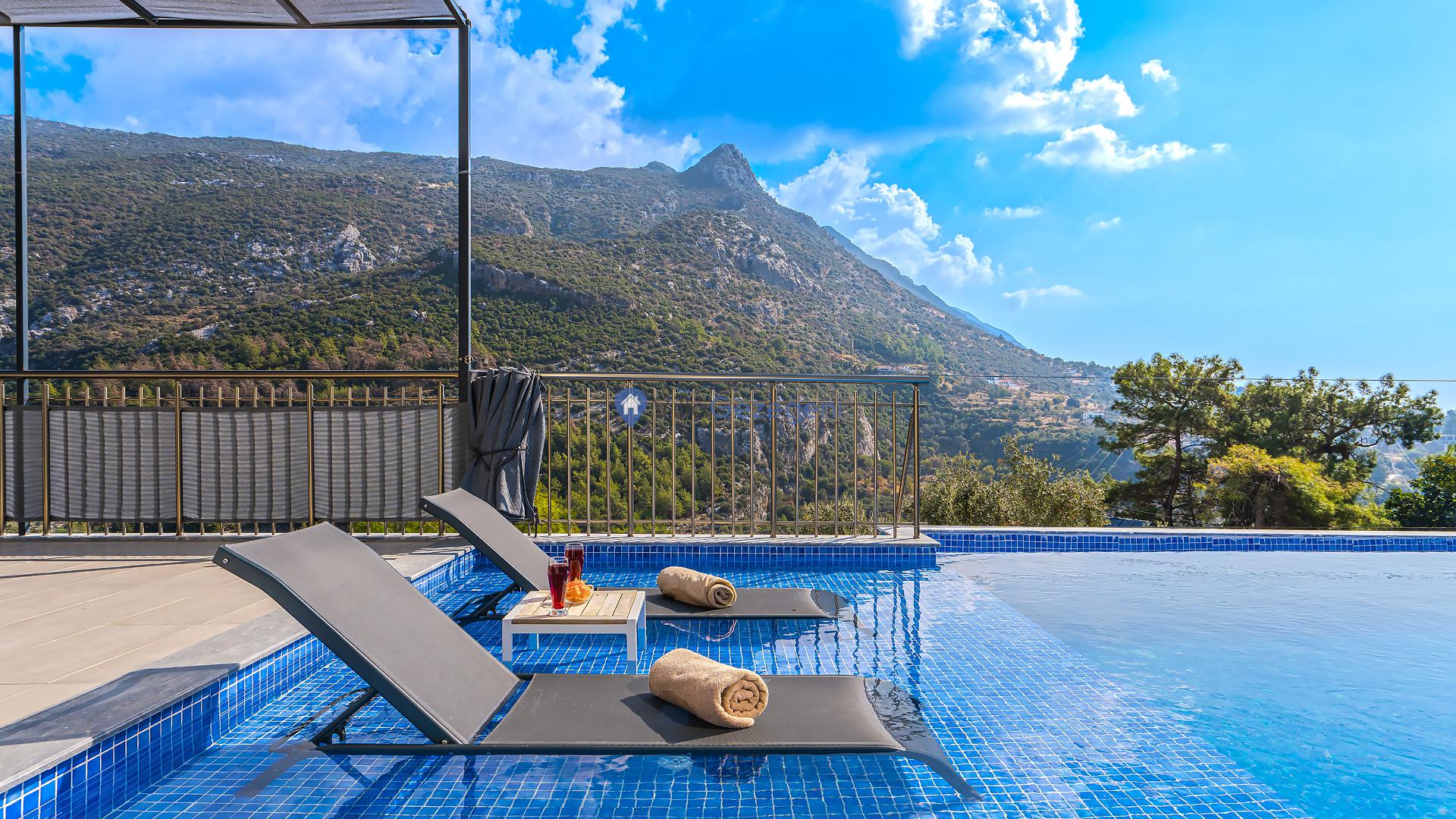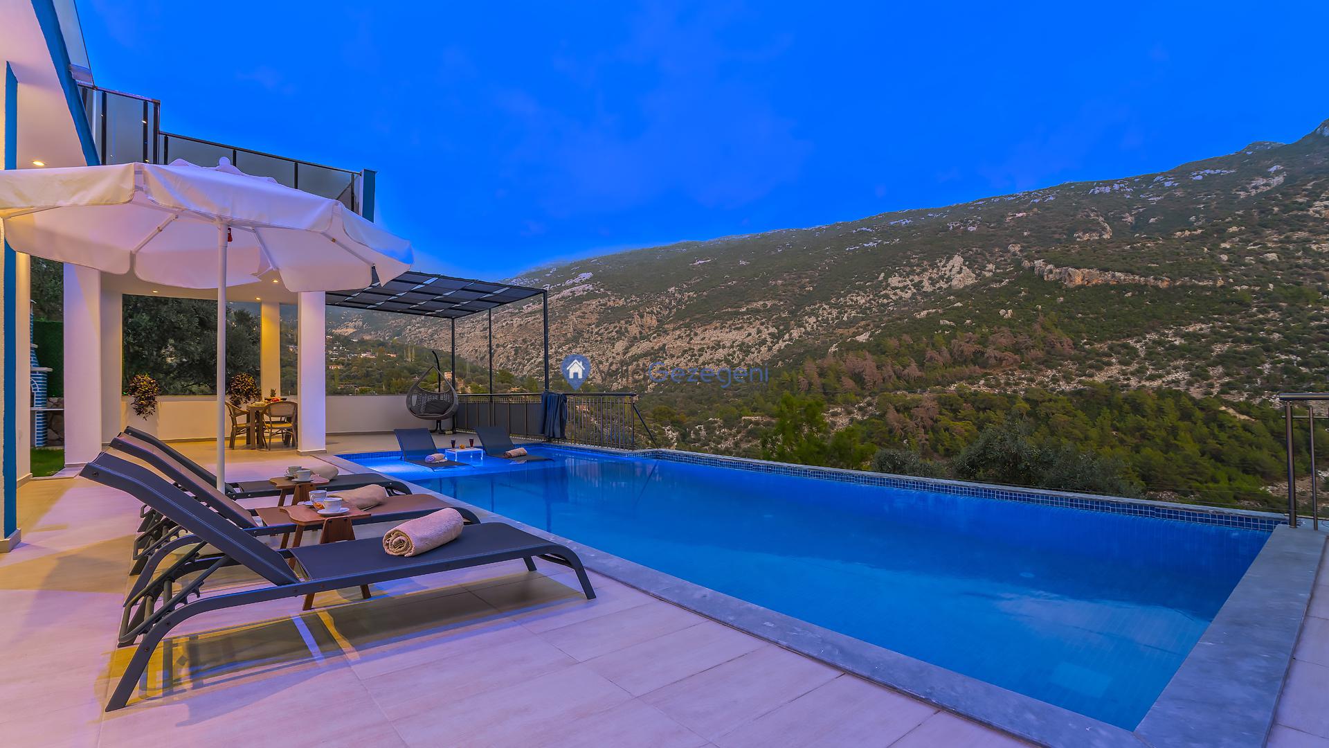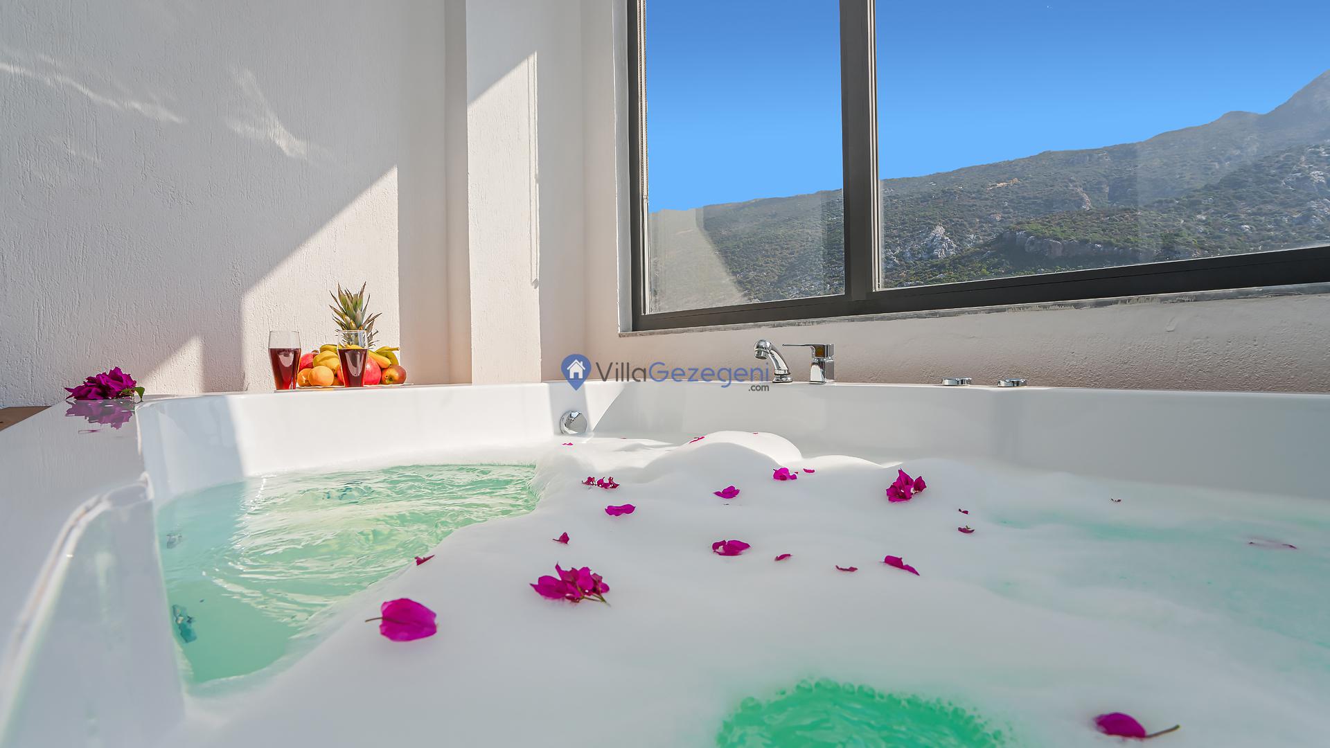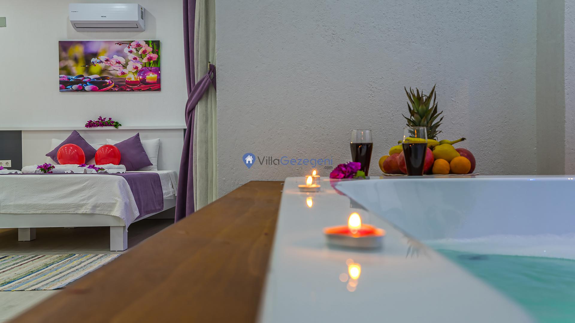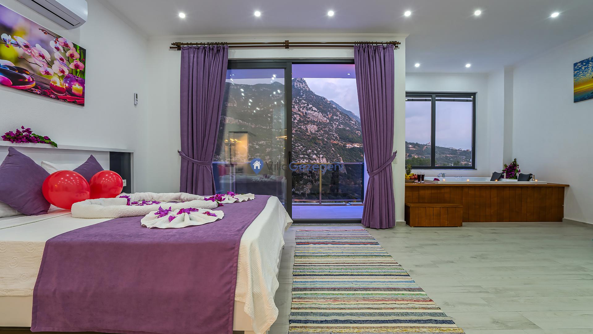 Kaş/Kalkan İslamlar Bölgesinde tek yatak odalı 2 kişi kapasiteli Muhafazakar Jakuzili Balayı Villası.