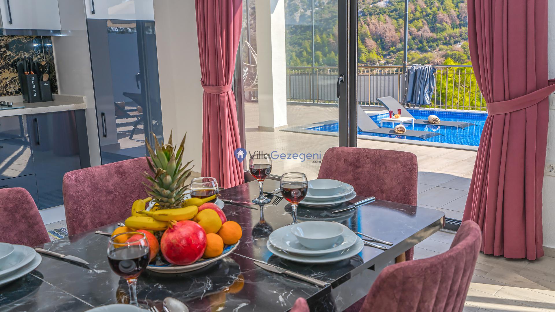 Yemek Masası ve bahçe mobilyaları kullanımınız için hazır bulunmaktadır sevdikleriniz ile beraber yemekler yiyip sohbetin dibine vurabilirsiniz. Villanın bahçesindeki salıncak ile keyifli vakitler geçirebilirsiniz.