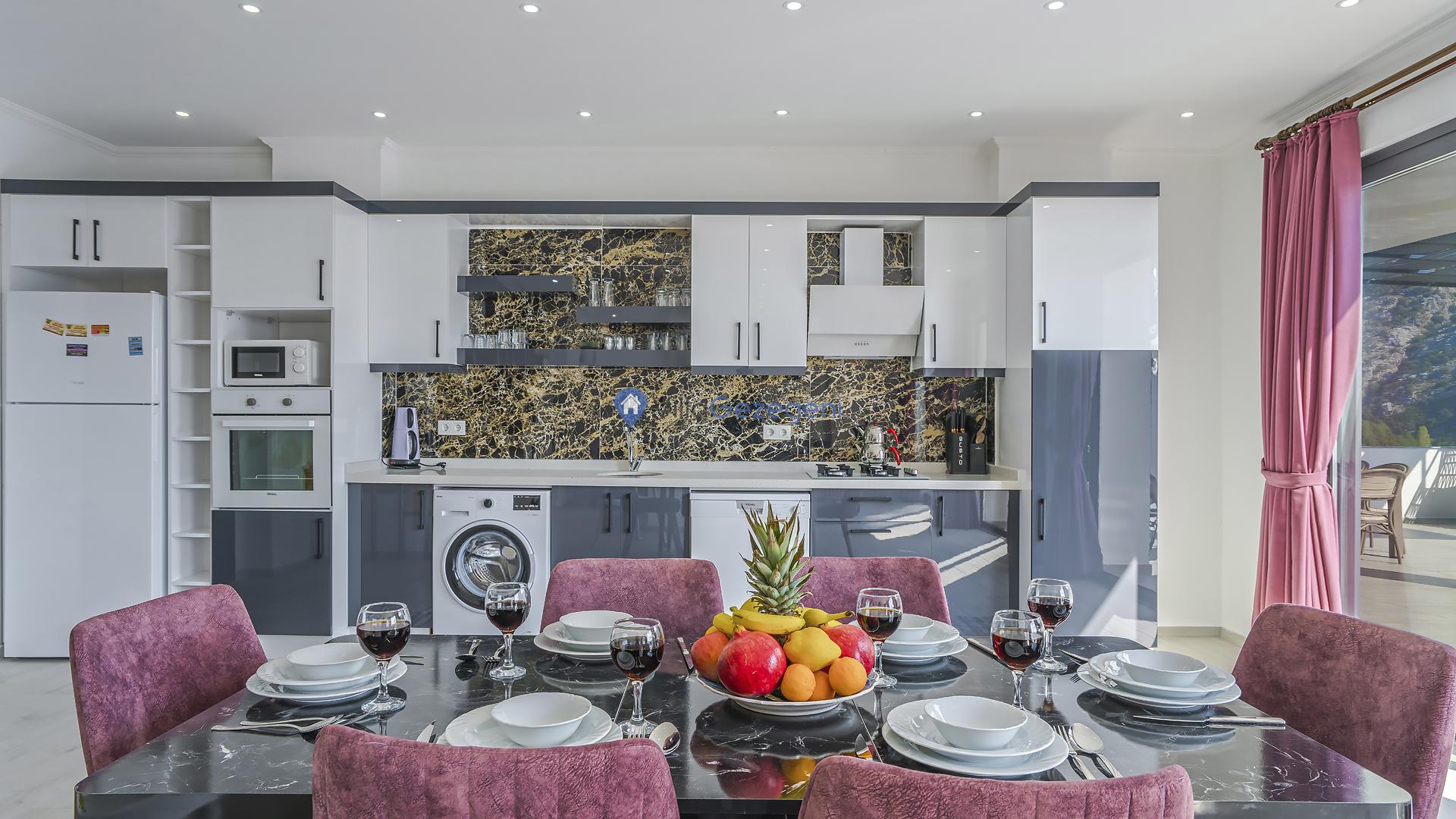 Villamız günlük hayatta sık kullanılan; Mikrodalga fırın, ankastre fırın, buzdolabı, çamaşır makinası, bulaşık makinesi, elektrikli su ısıtıcı kettle, ankastre 4’lü ocak, 5 kişilik yemek takımı, kaşık ve çatal takımı, tencere ve tava takımı, bardaklar yer almaktadır. İhtiyacınız durumunda villamızda bulunmayan malzemeler hakkında bizle iletişime geçebilir ve yardım isteyebilirsiniz.