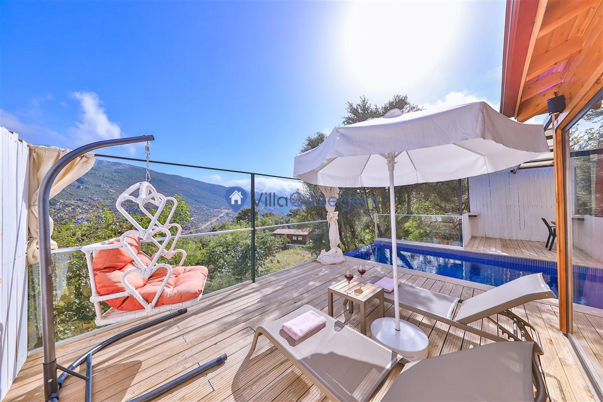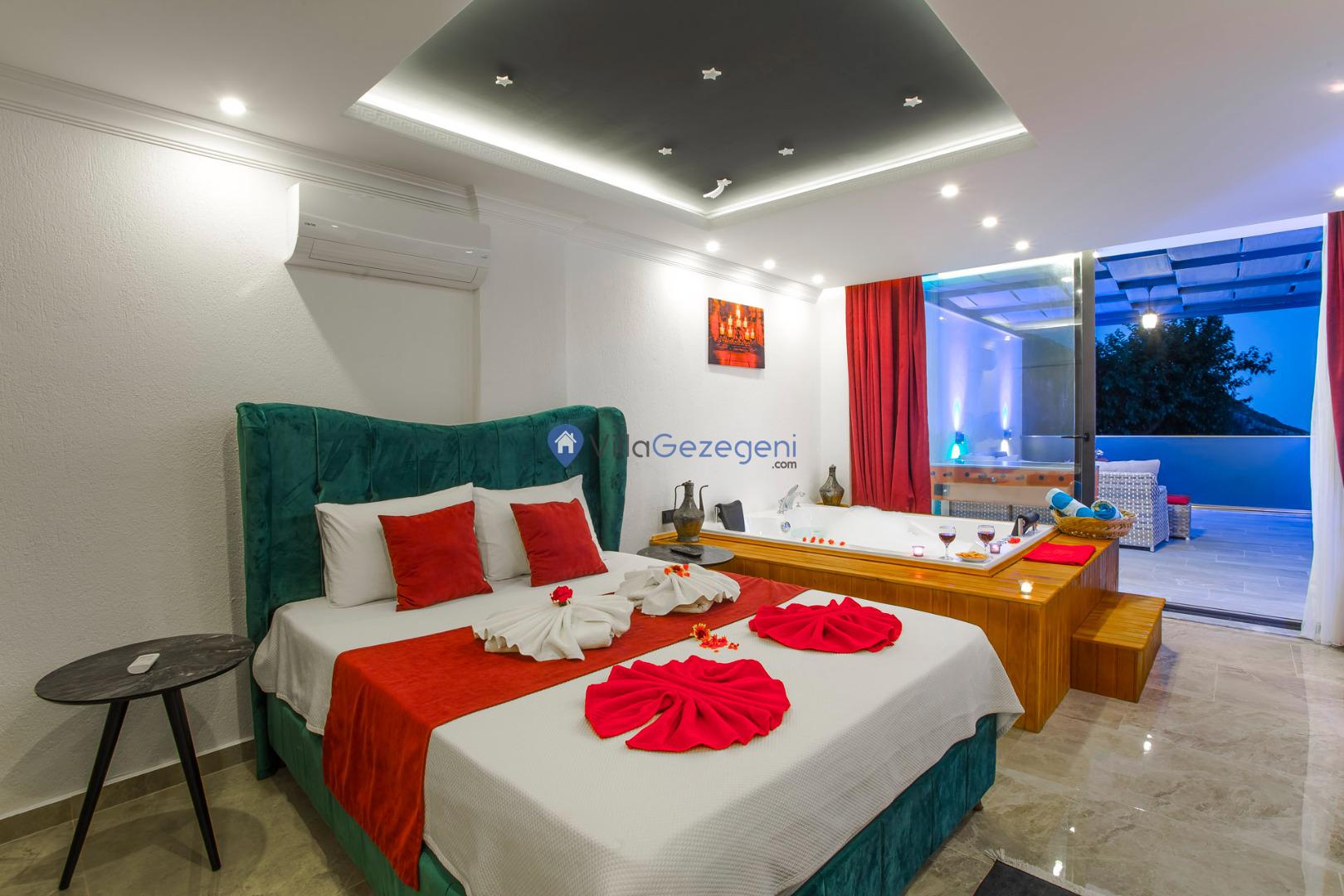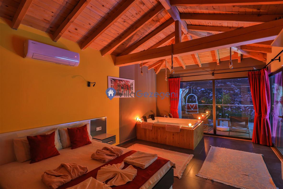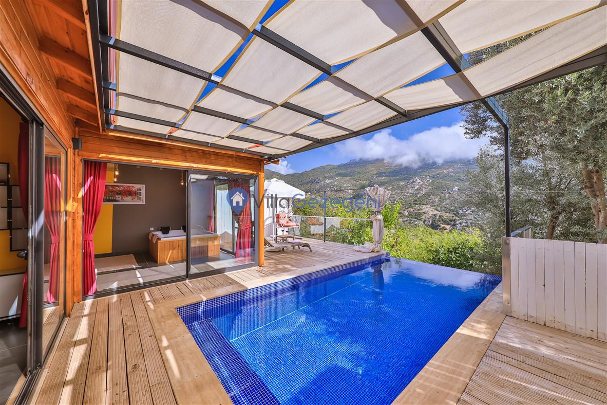 Villa Emek, Kalkan İslamlar bölgesinde 2 kişi kapasiteli, muhafazakar özellikli, doğa ile iç içe, jakuzili, balayı çiftleri için uİgun kiralık villa.
