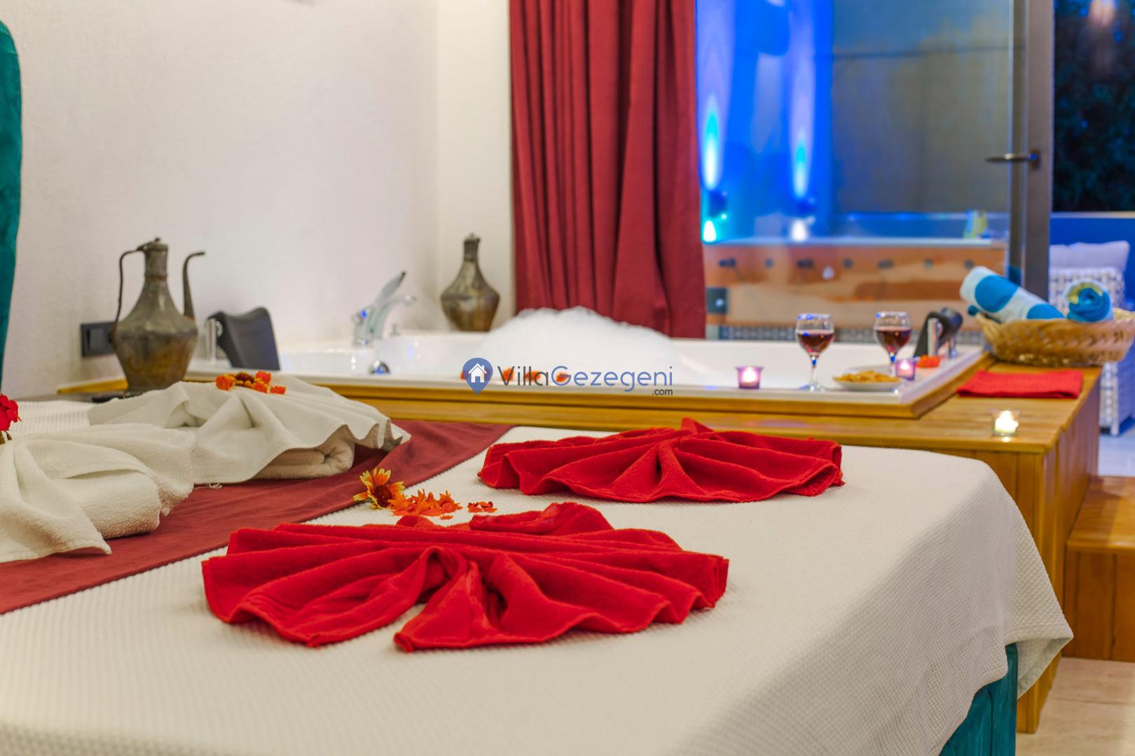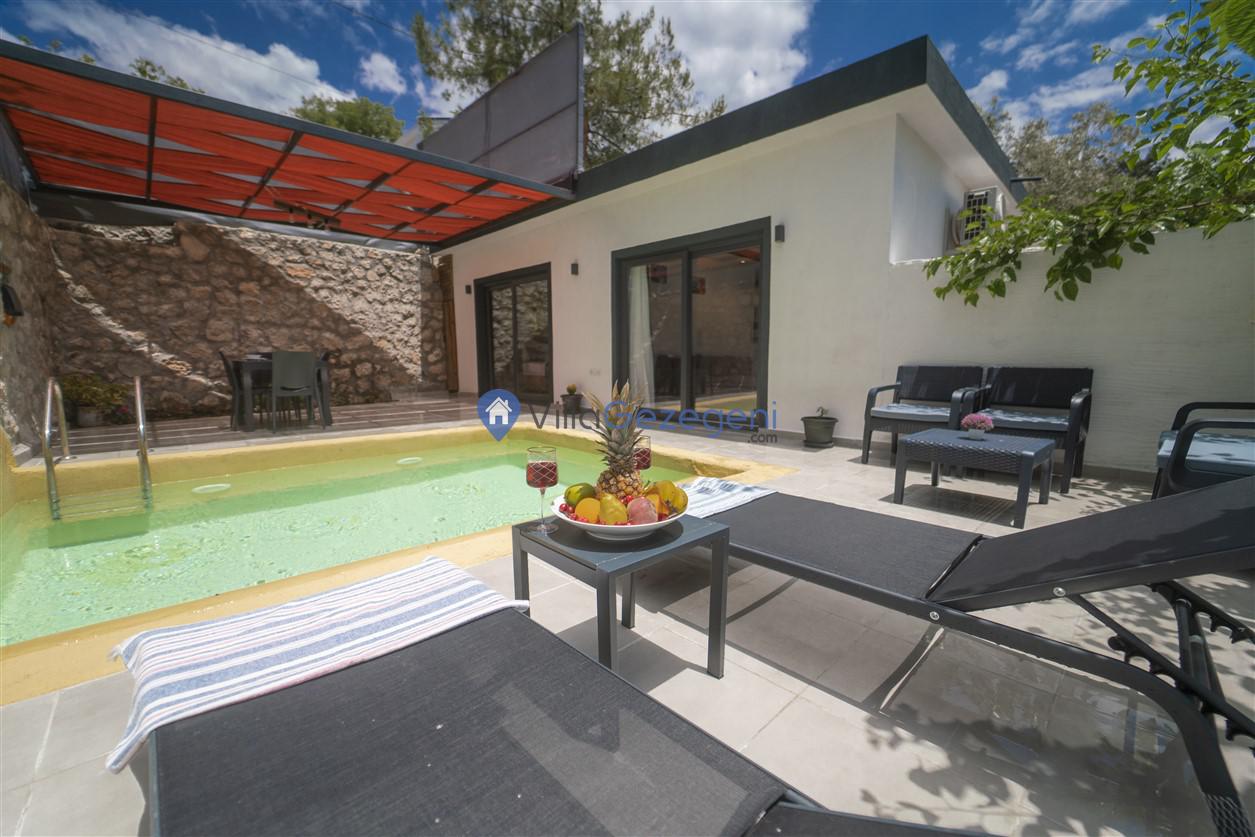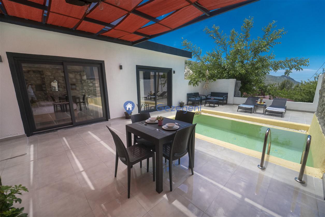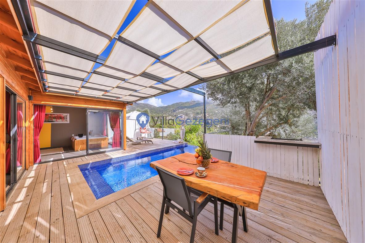 Villa Emek, Kalkan İslamlar bölgesinde 2 kişi kapasiteli, muhafazakar özellikli, doğa ile iç içe, jakuzili, balayı çiftleri için uİgun kiralık villa.