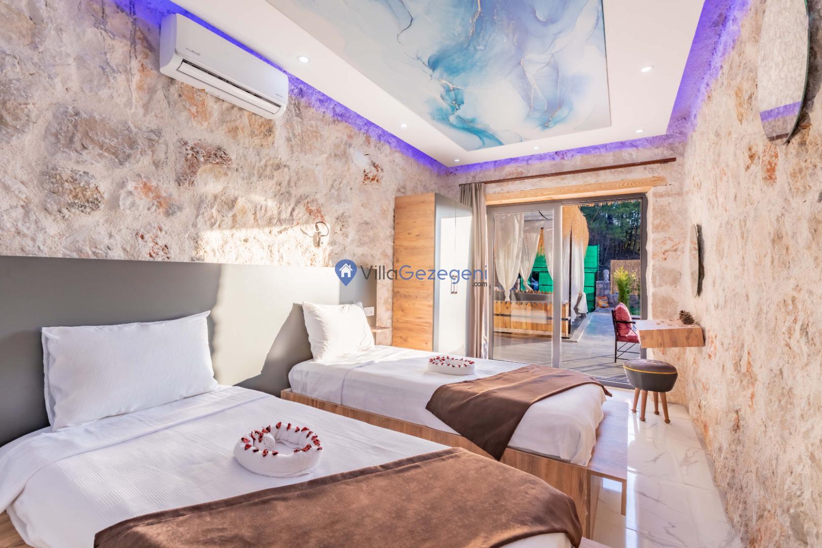 Kalkan Sarıbelen Bölgesinde yer alan 2 yatak odalı 4 kişilik balayı kiralık villası
