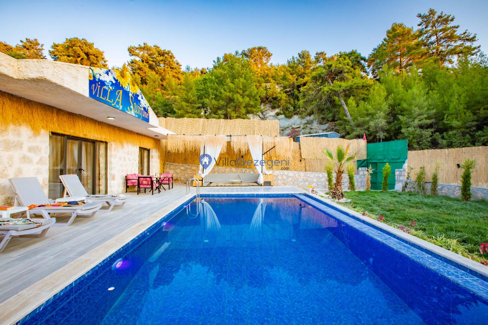 Villamızın genel konsept ve özelliklerinden tekrar bahsedecek olursak; villamızın 1 adet müstakil özel havuzu bulunmaktadır. Ortalama bir bahçeye sahip olan villamız rahatlığı ön planda tutan 2 adet yatak odası, 3 yatak, 2 banyo, hareket alanı geniş bir mutfak ve 4 kişinin geniş aralıklarla rahatlıkla oturabileceği koltuklara sahip salonu bulunmaktadır.