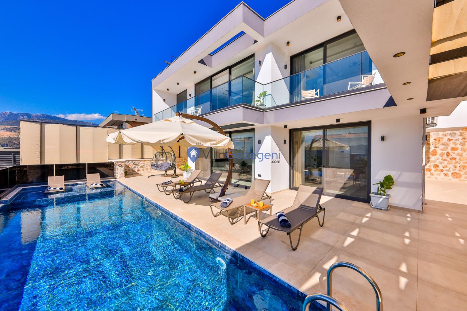 Villa Hills Heart, Kalkan Akbel'de 10 kişilik, deniz manzaralı, lüks tasarımlı, muhafazakar, merkeze yakın, kalabalık gruplara uygun kiralık villa.