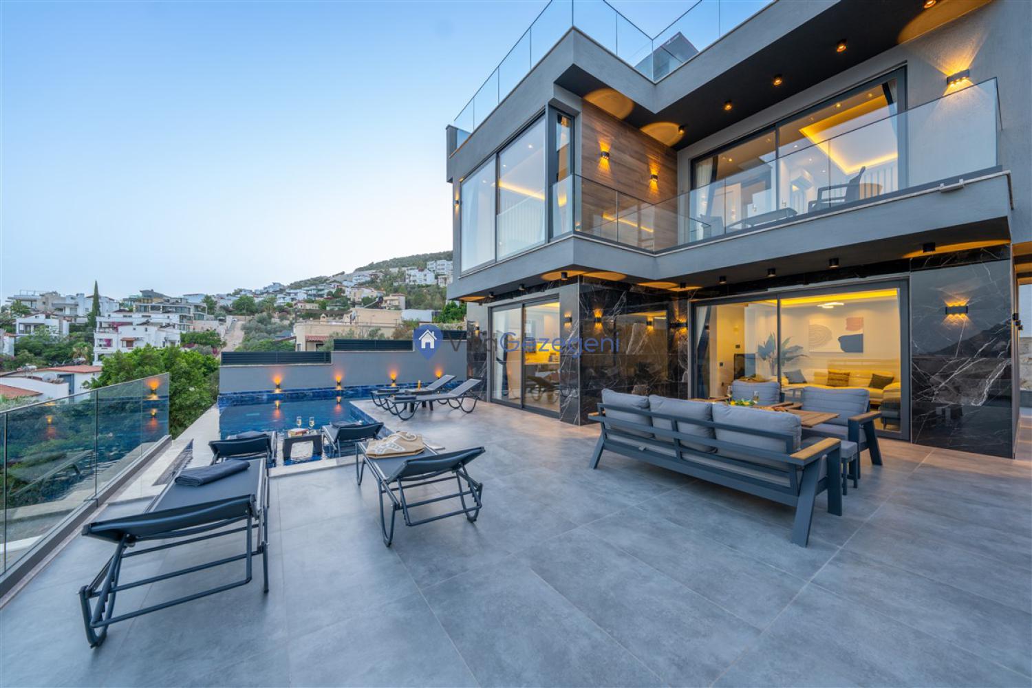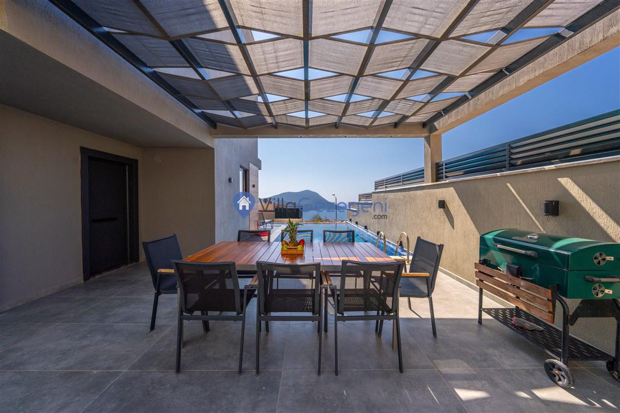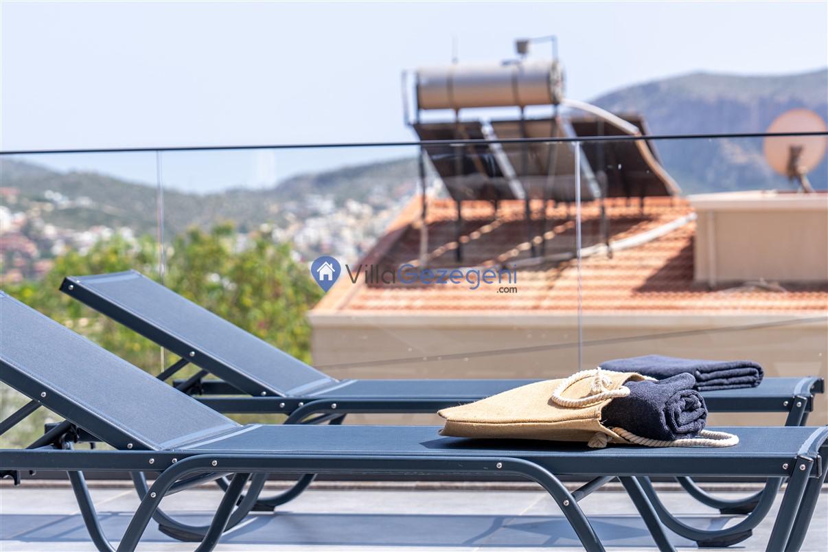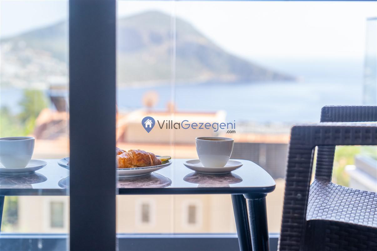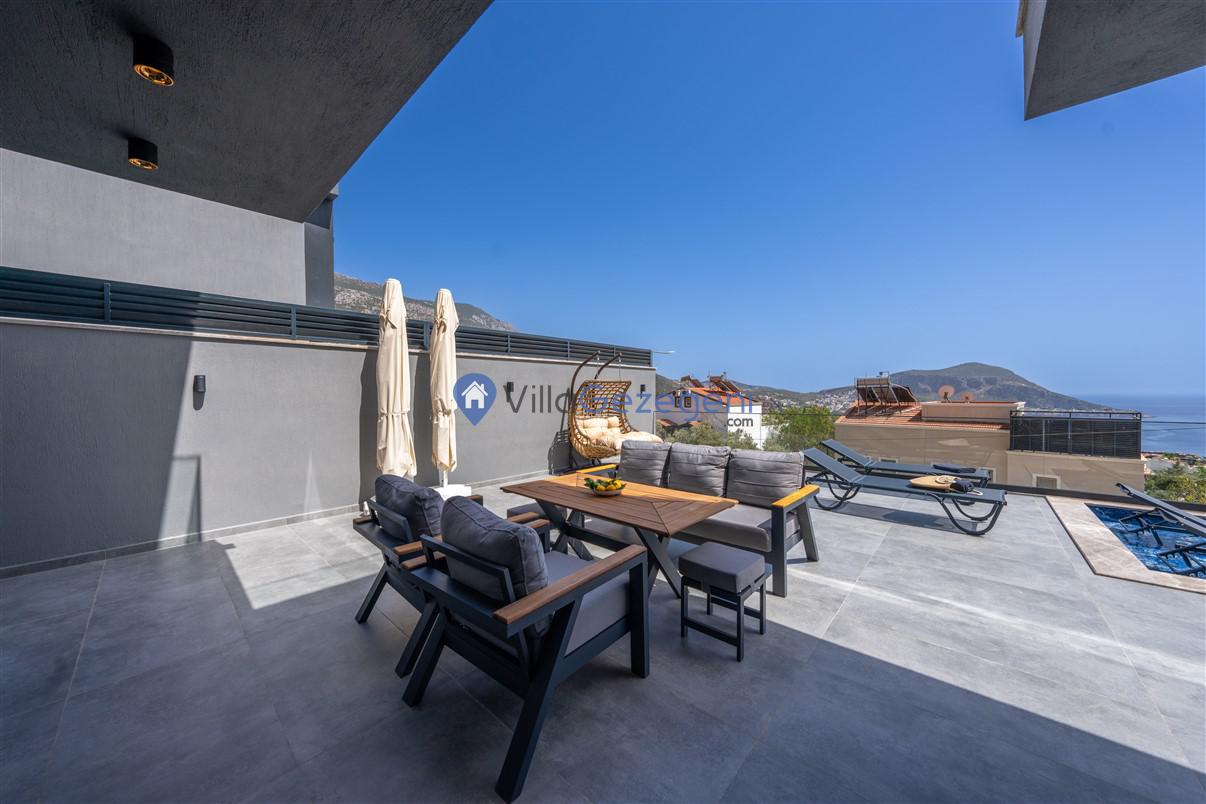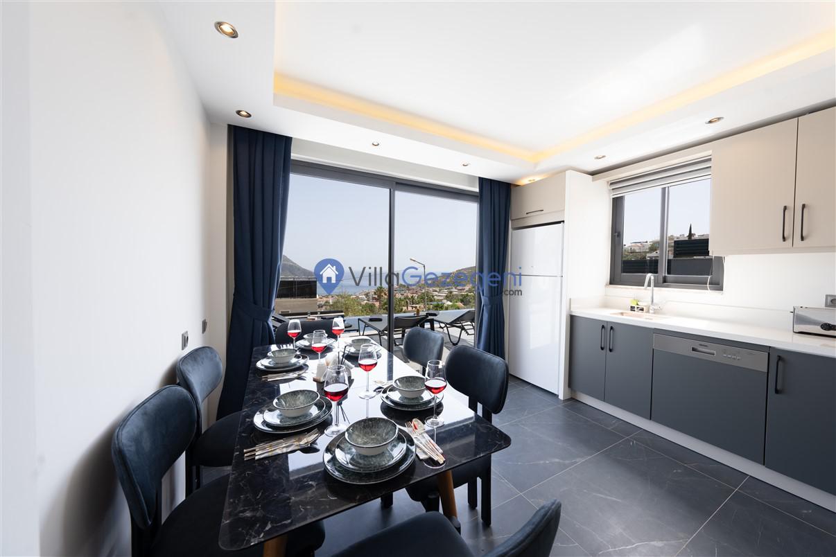 Kalkan merkeze yakın konumda bulunan deniz manzaralı kiralık tatil villası