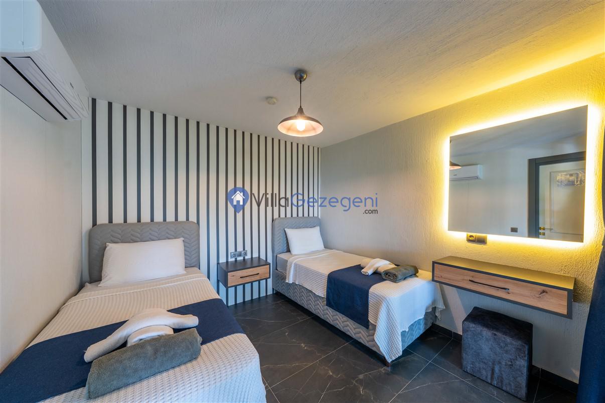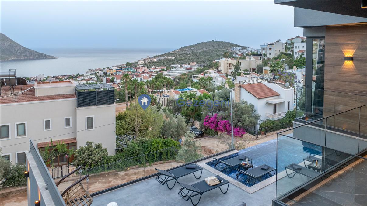 Kalkan Merkez Bölgesinde yer alan 5 yatak odalı 10 kişi kapasiteli şehir Merkezine yakın deniz manzaralı tatil villasıdır.