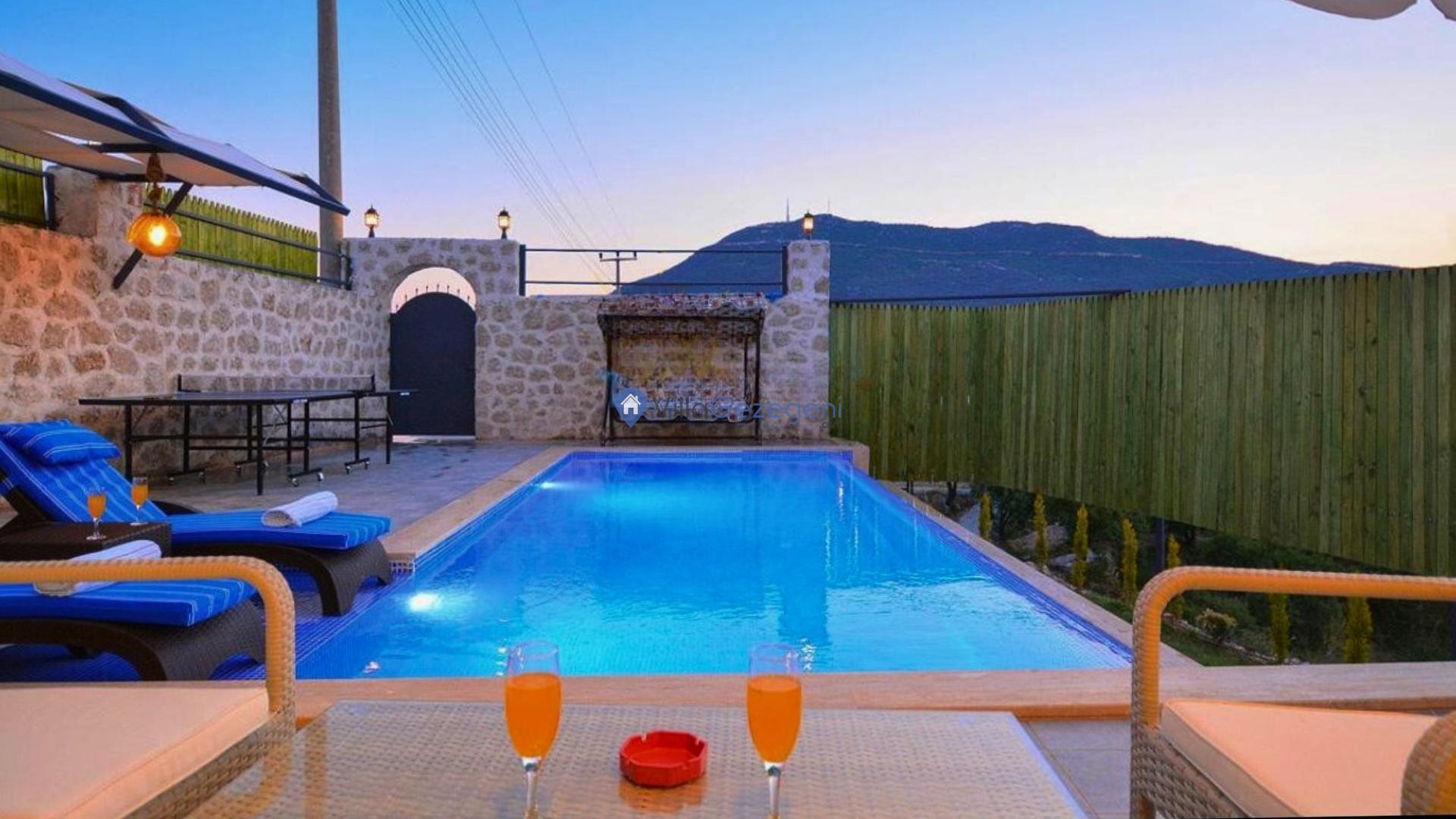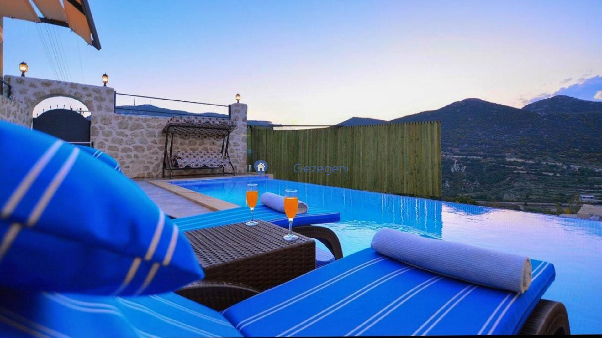 Kaş/Kalkan/Sarıbelen Bölgesinde yer alan tek yatak odalı 2 kişi kapasiteli kapalı ısıtmalı havuzlu doğa içerisinde balayı villası.