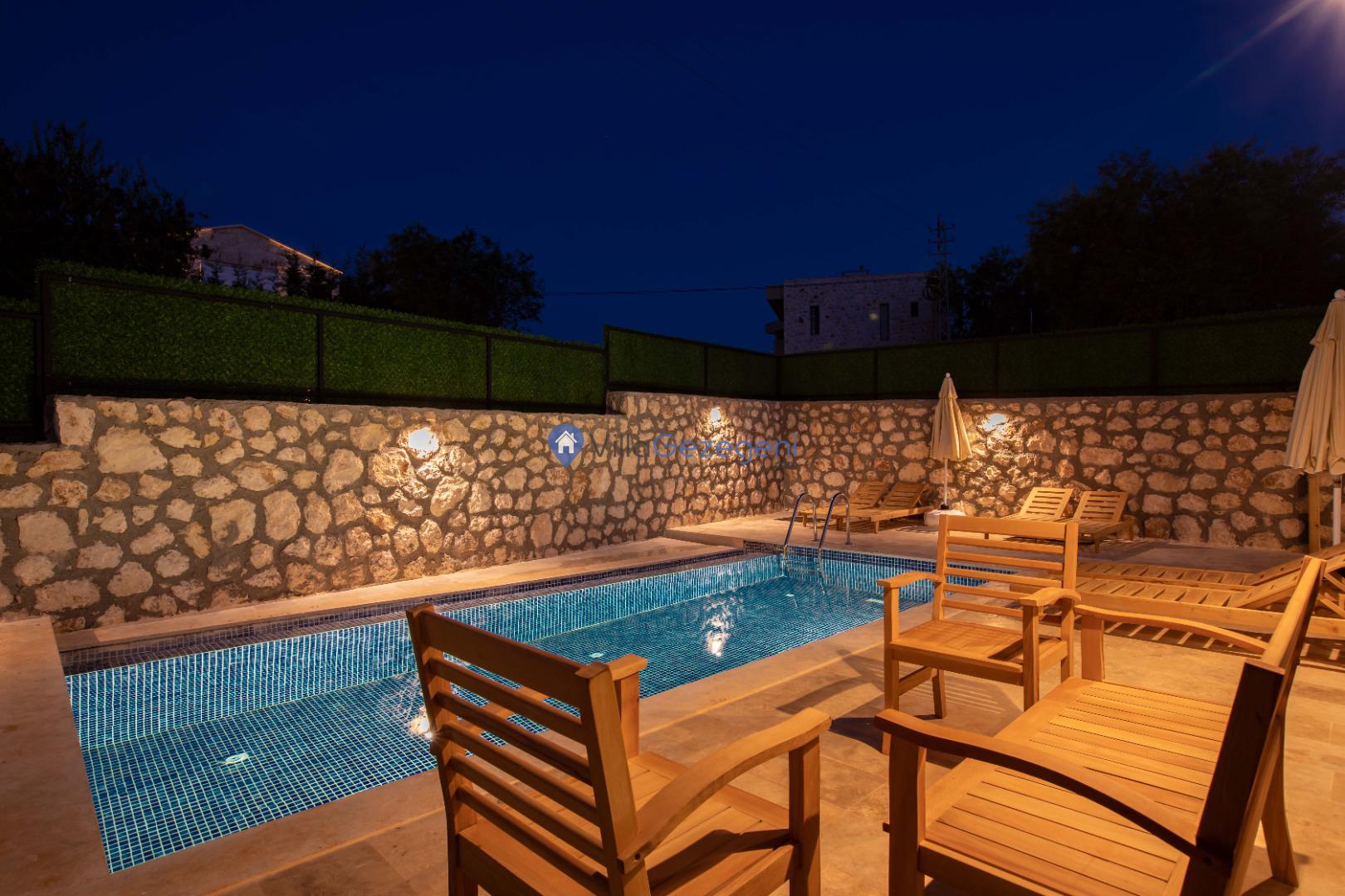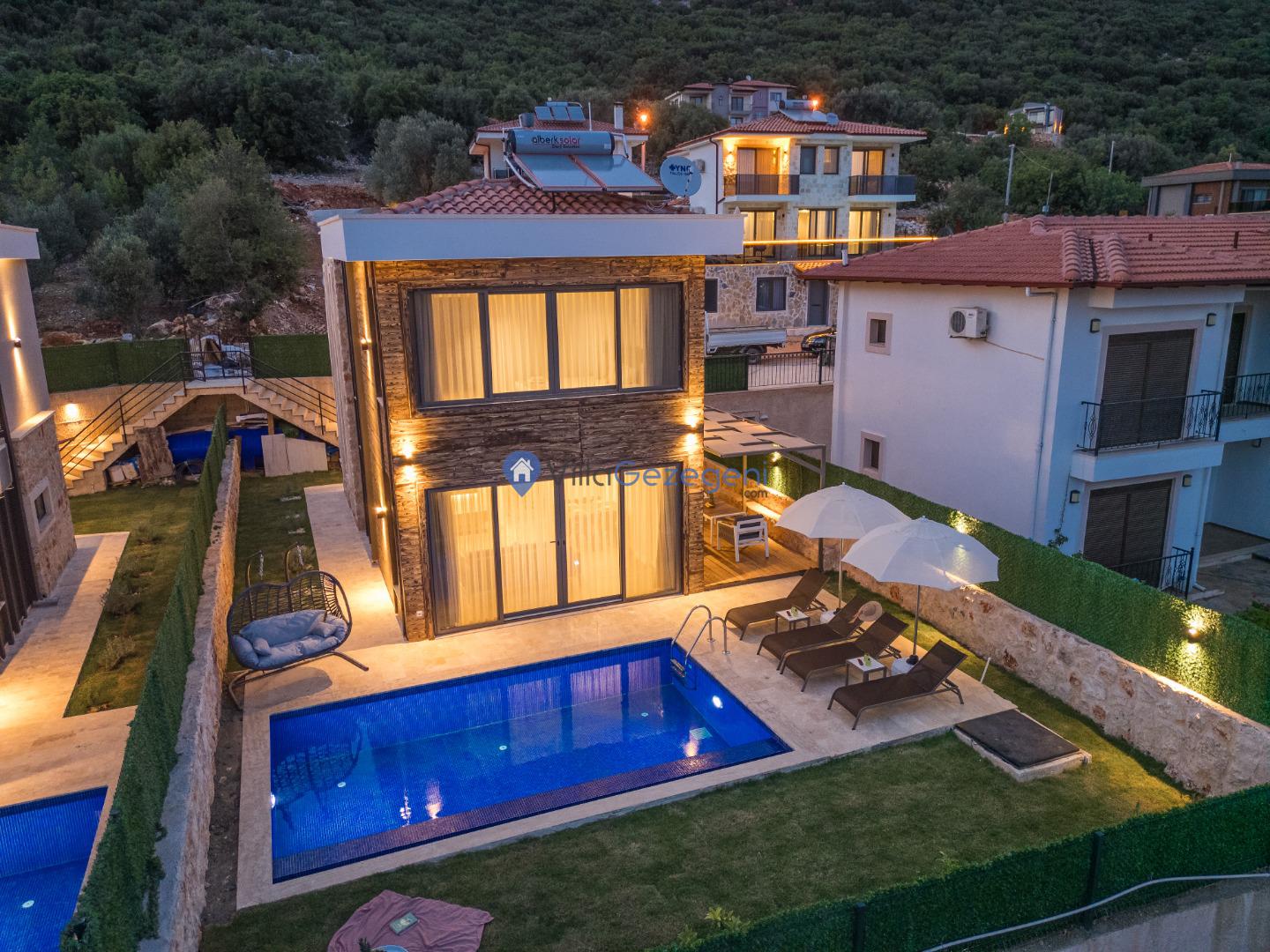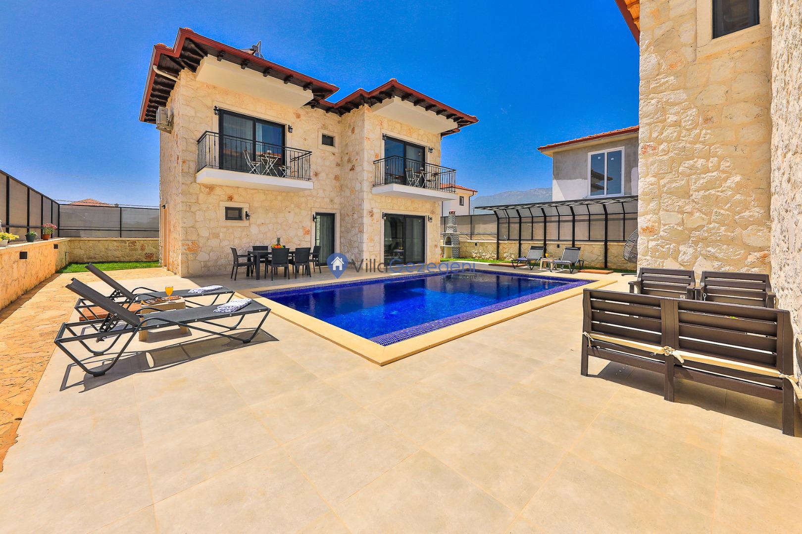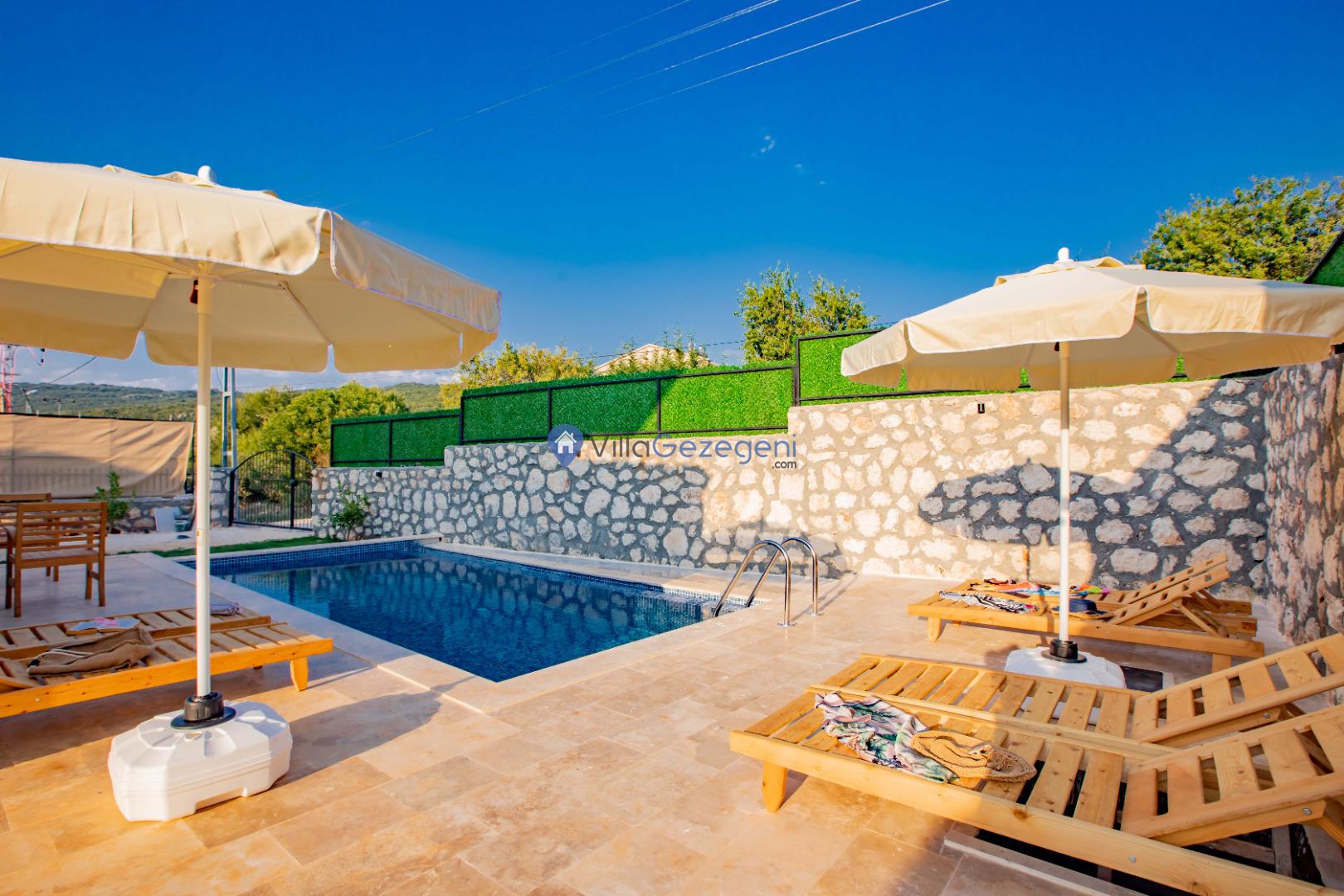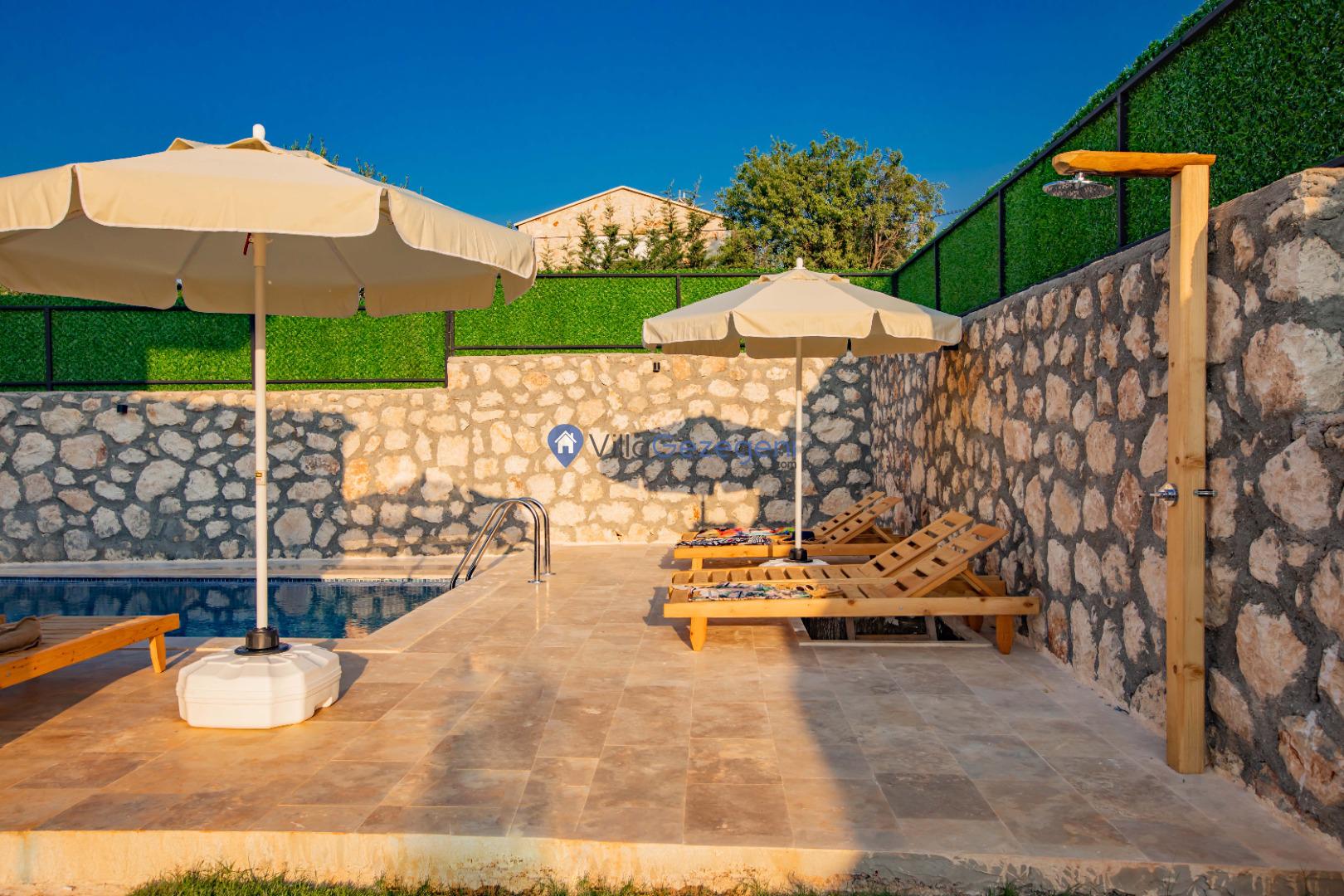 Kaş/Çukurbağ mevkiisinde konumlanmış 3 yatak odalı, 6 kişilik konaklama kapasitesine sahip özel havuzlu tatil villasıdır.