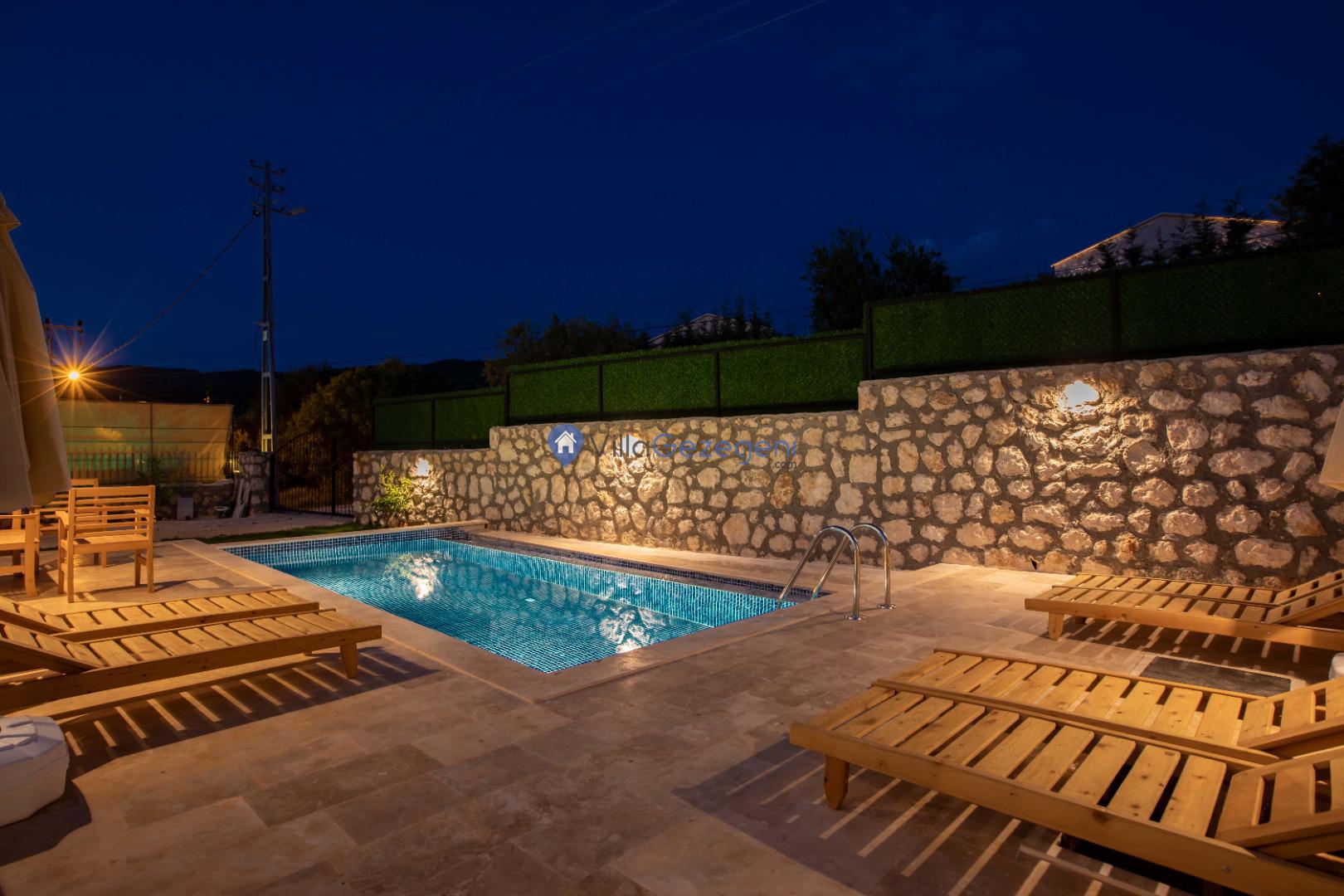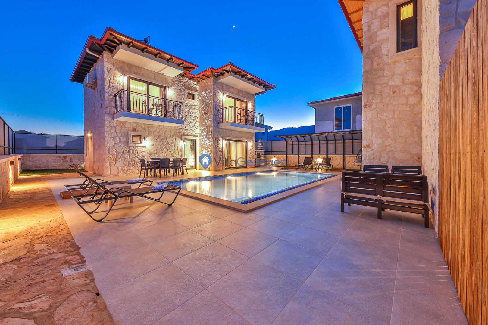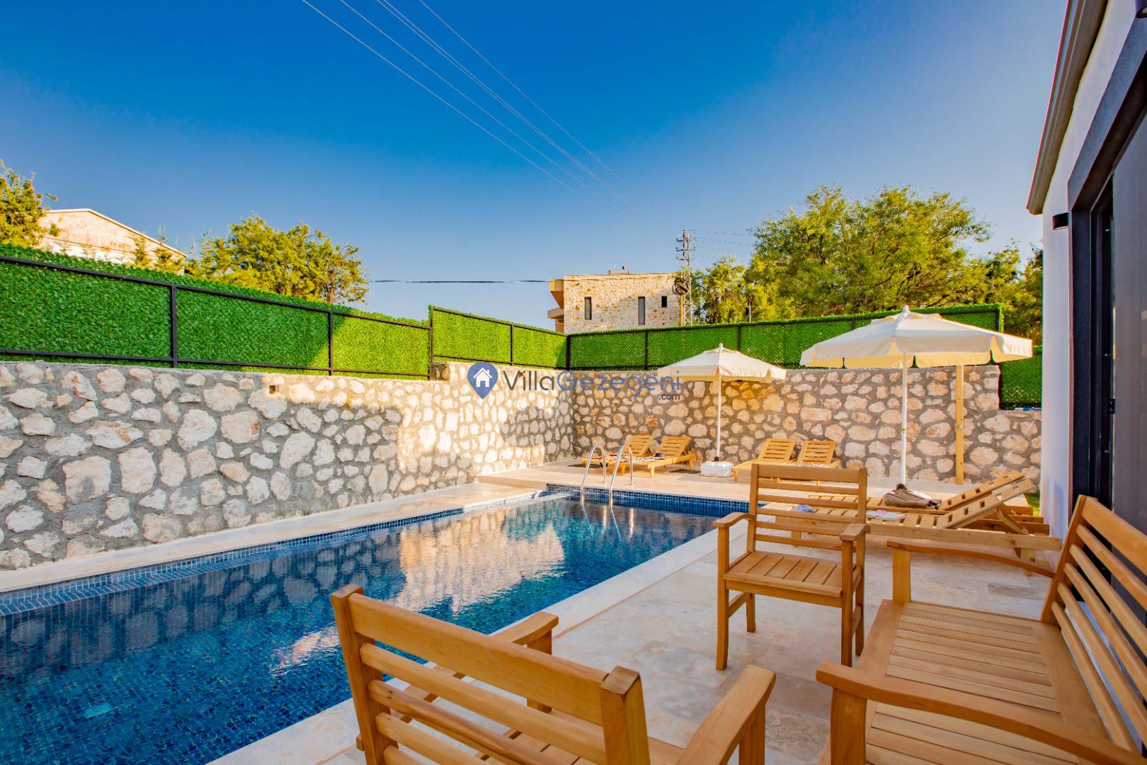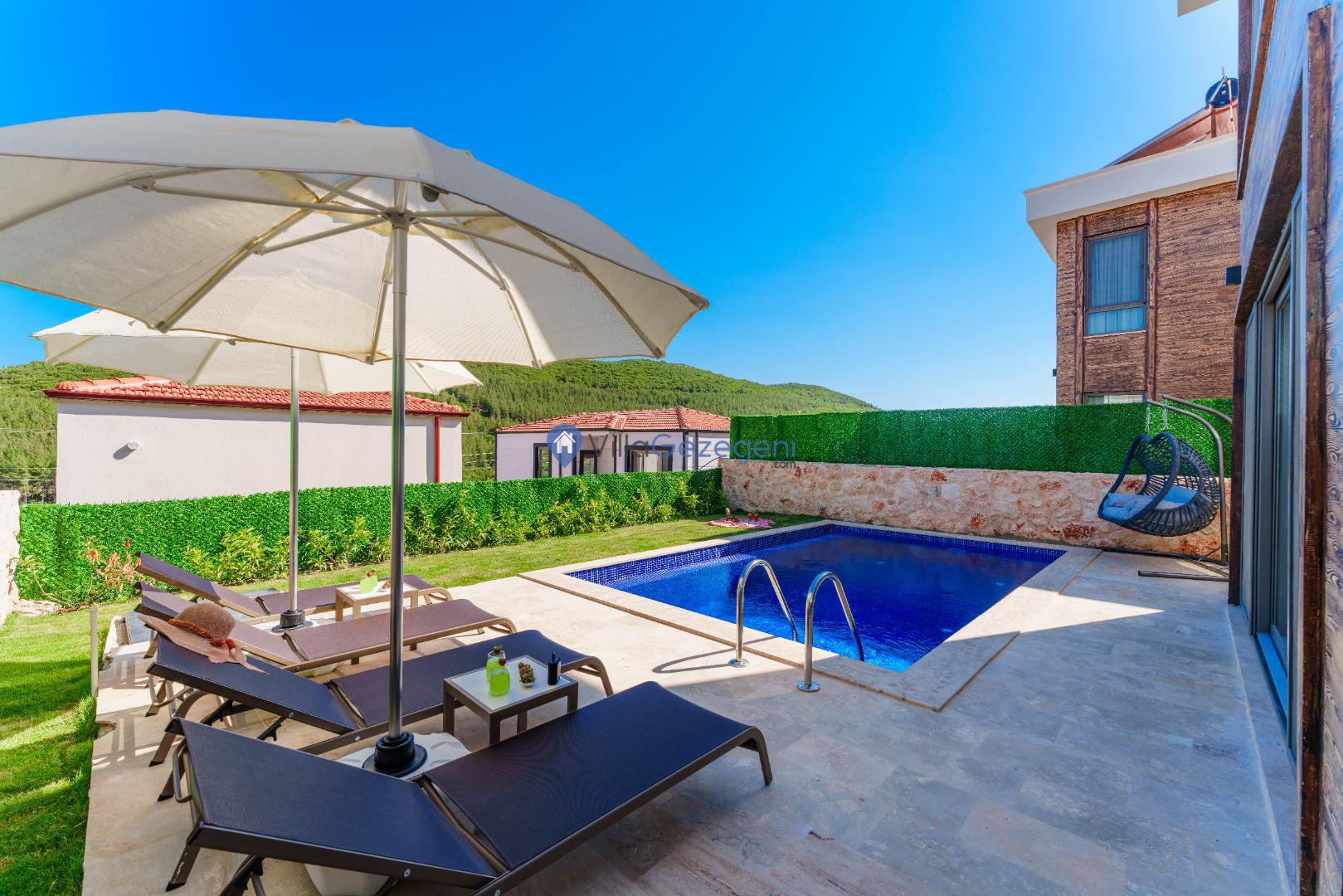 Kaş/Çukurbağ mevkiisinde konumlanmış 3 yatak odalı, 6 kişilik konaklama kapasitesine sahip özel havuzlu tatil villasıdır.