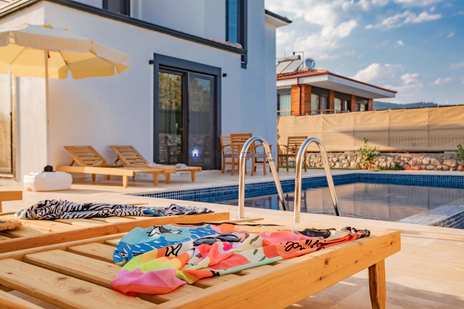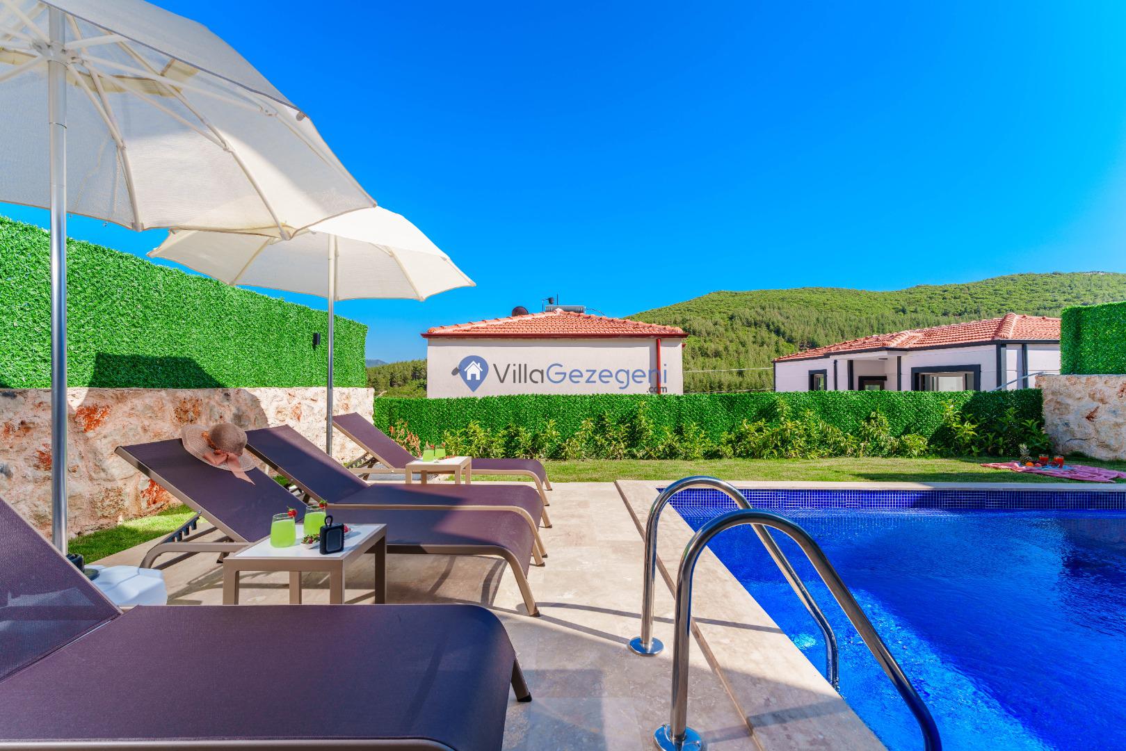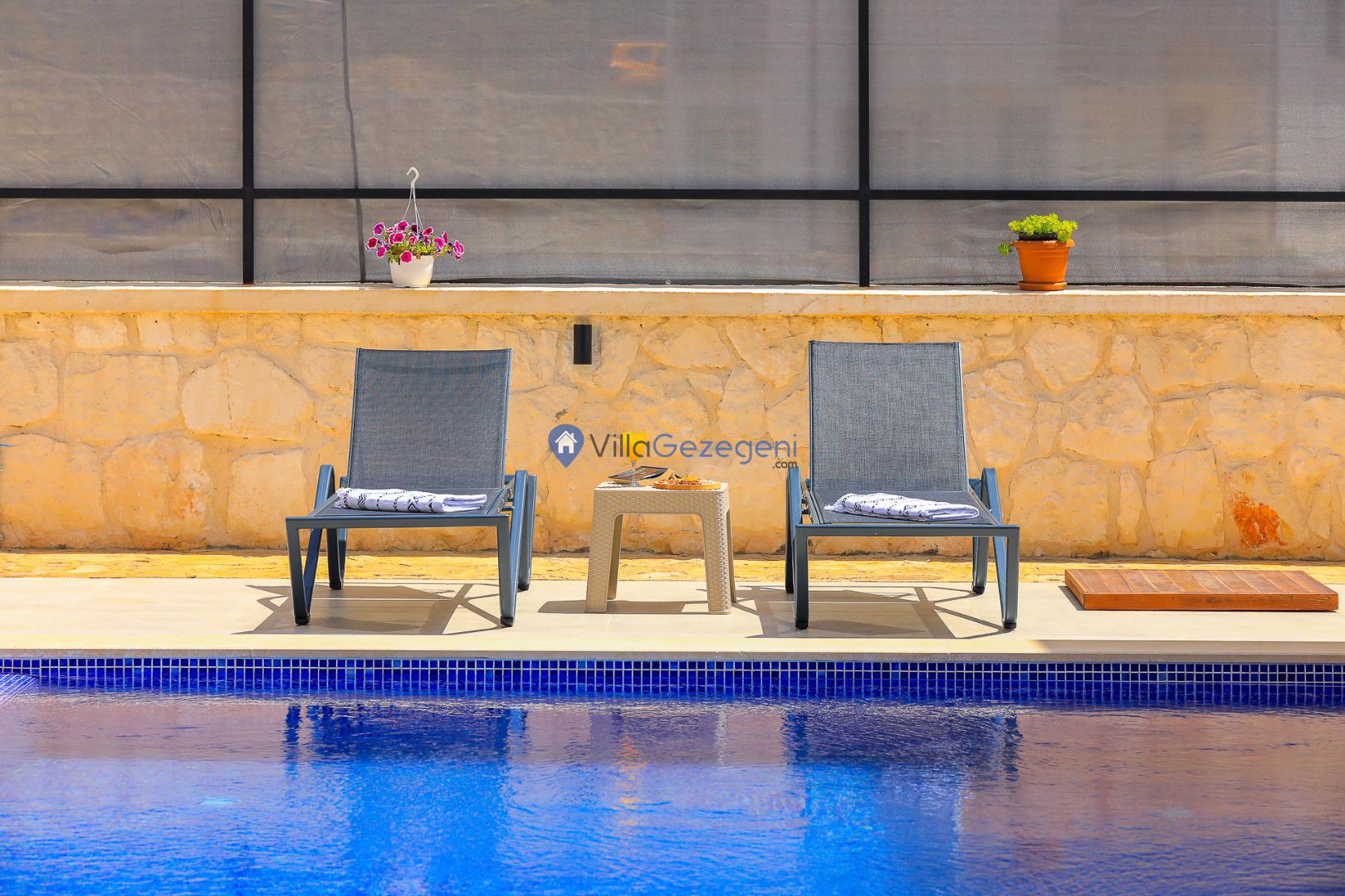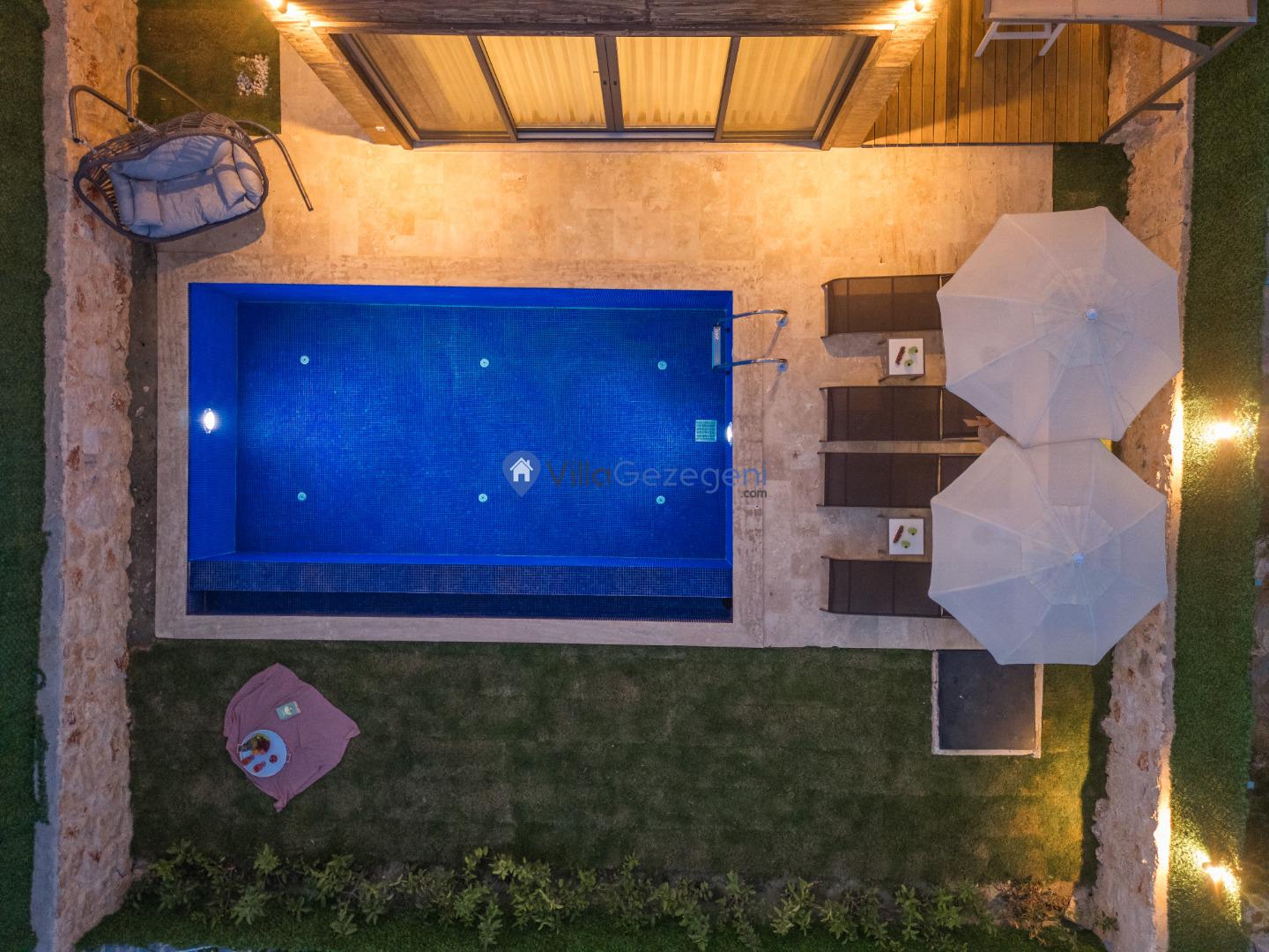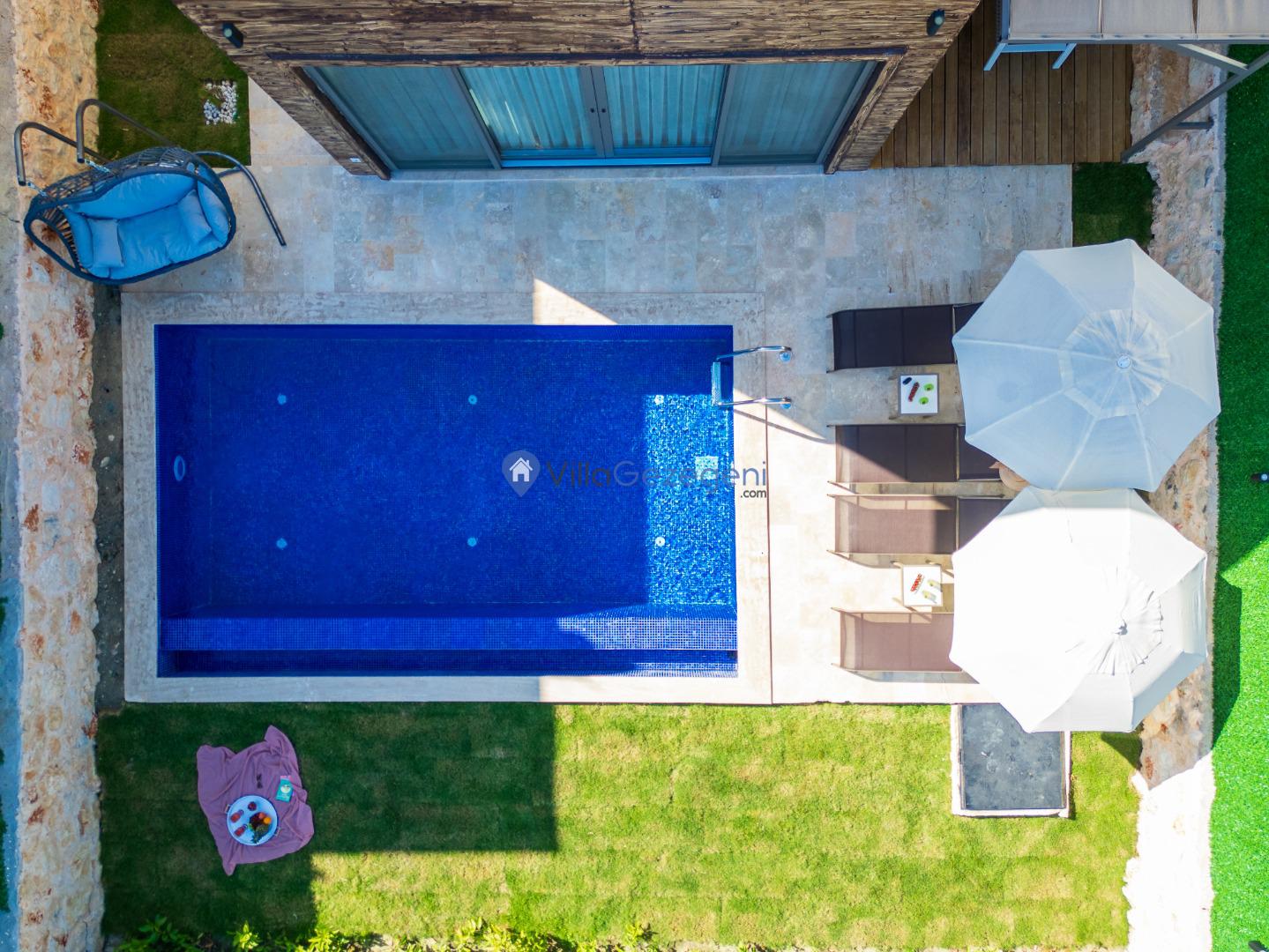 Kaş/Çukurbağ mevkiisinde konumlanmış 3 yatak odalı, 6 kişilik konaklama kapasitesine sahip özel havuzlu tatil villasıdır.