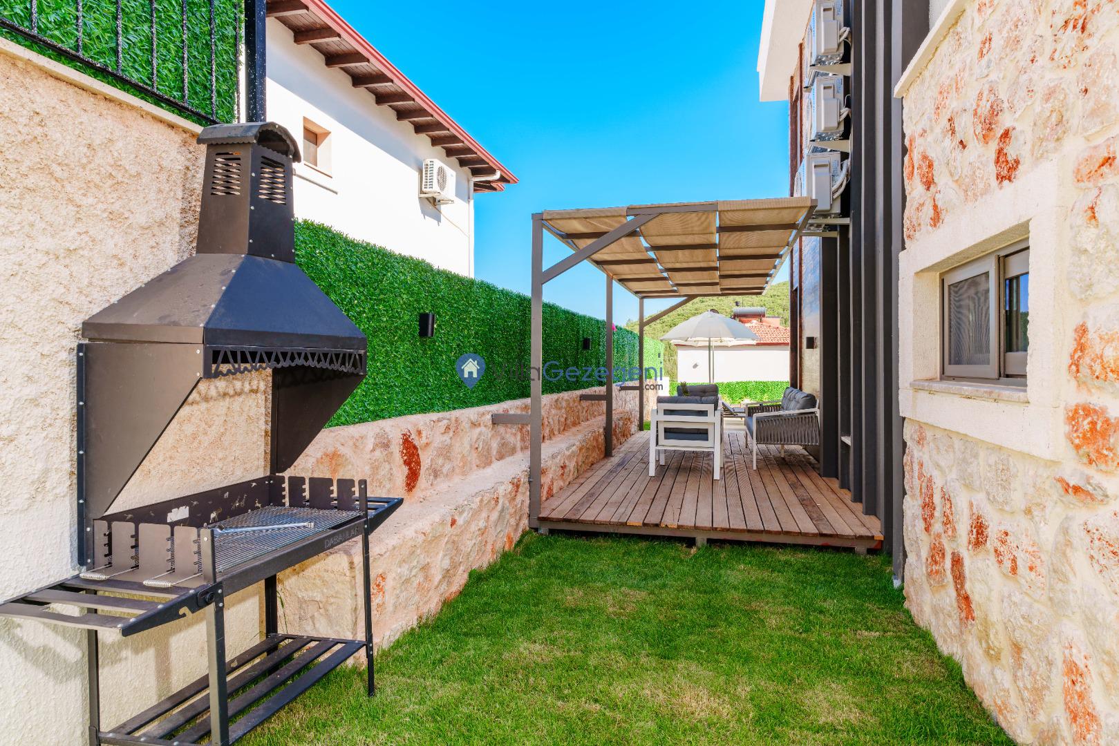 Şezlong, Mangal, Yemek Masası ve bahçe mobilyaları kullanımınız için hazır bulunmaktadır. Gün batımına karşı unutulmaz bir tatilin kapılarını misafirlerine aralayan villamız modern örnekler arasında son dönemlerde geniş arkadaş grupları veya aileler tarafından her yaz dönemi yoğun olarak rağbet görmeye devam etmektedir.