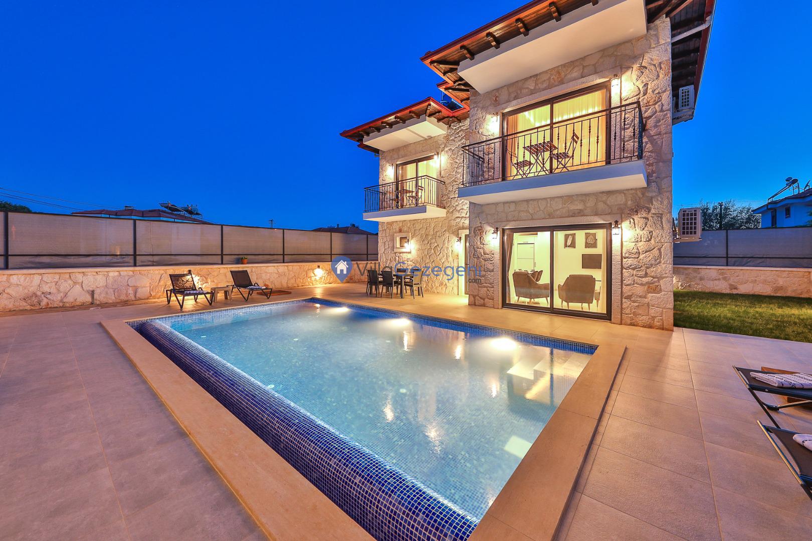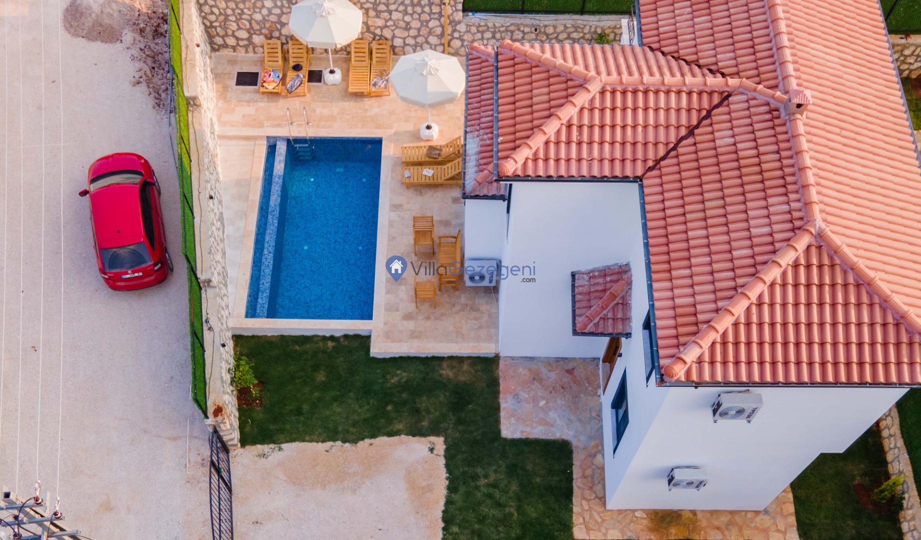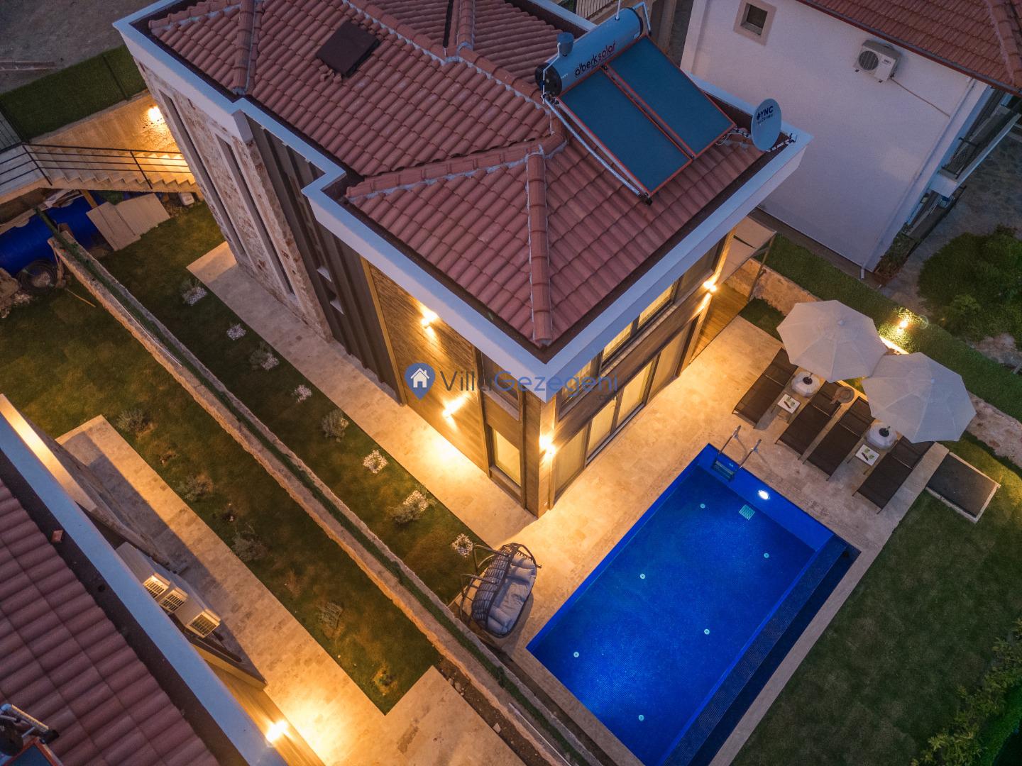Villamızın genel konsept ve özelliklerinden tekrar bahsedecek olursak; villamızın 1 adet müstakil özel havuzu bulunmaktadır. Geniş bir bahçeye sahip olan villamız rahatlığı ön planda tutan 3 adet suit yatak odası ve 4 yatak 3 banyo, hareket alanı geniş bir mutfak ve 6 kişinin geniş aralıklarla rahatlıkla oturabileceği koltuklara sahip salonu bulunmaktadır.