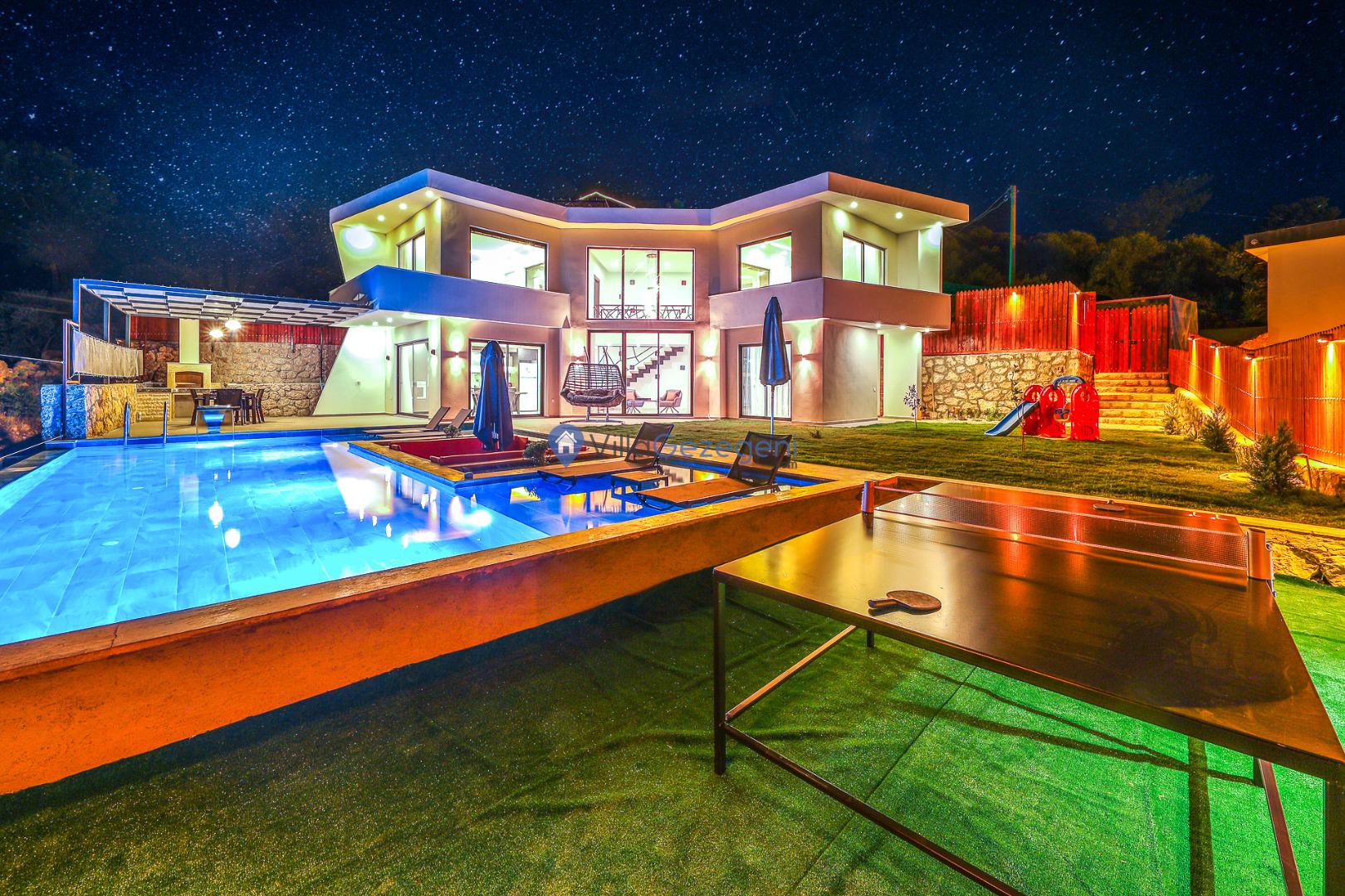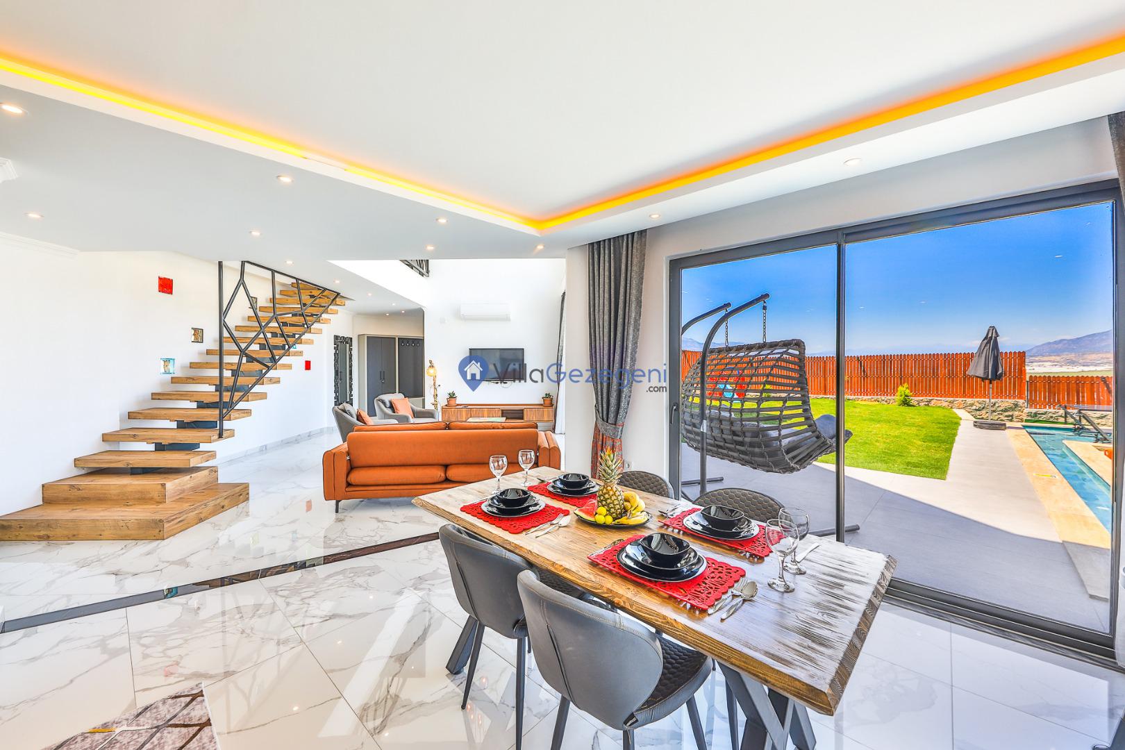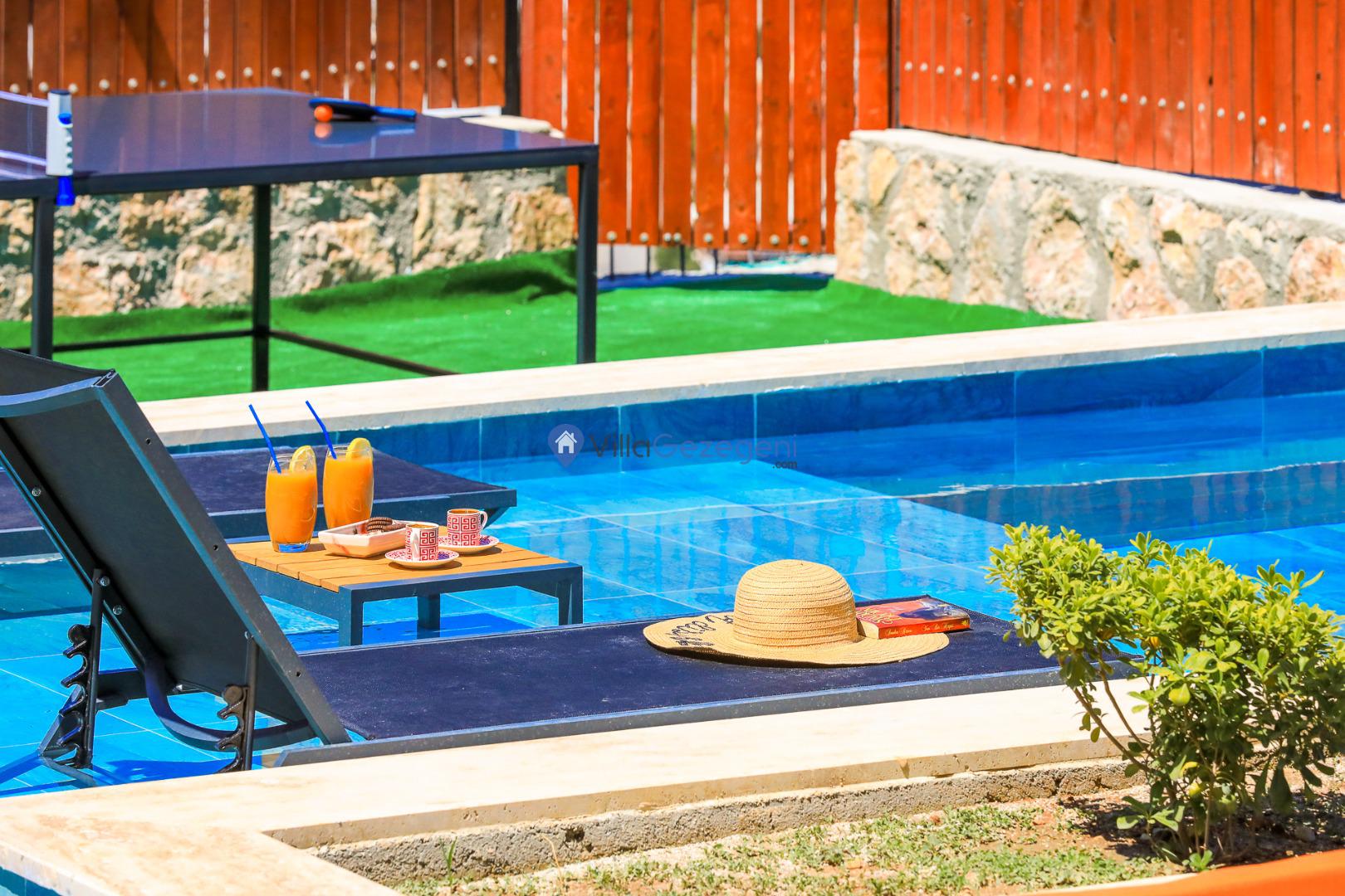 Modern ve şık iç tasarımıyla dikkat çeken villa, ihtiyaç duyabileceğiniz tüm donanımlara sahip olup size ev konforunda bir tatil sunar. Geniş bahçe alanı, özel yüzme havuzu ve doğayla uyumlu yapısıyla misafirlerine gözlerden uzak, dinlendirici bir atmosfer vadeder. Özellikle balayı çiftleri için romantik bir ortam sağlarken, çocuklu aileler için de güvenli ve keyifli bir tatil imkanı sunmaktadır.