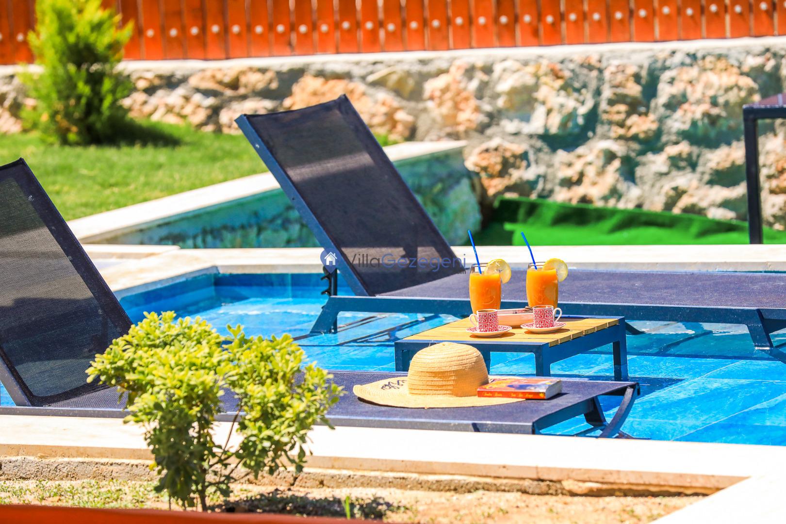 Kalkan Yeşilköy bölgesinde bulunan 2 yatak odalı 4 kişilik kiralık özel havuzlu villa