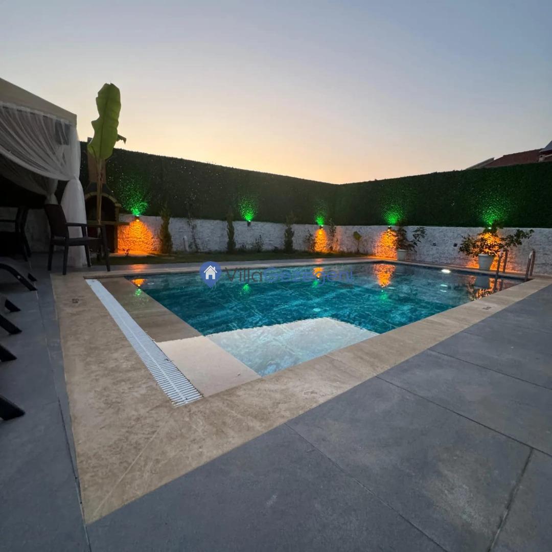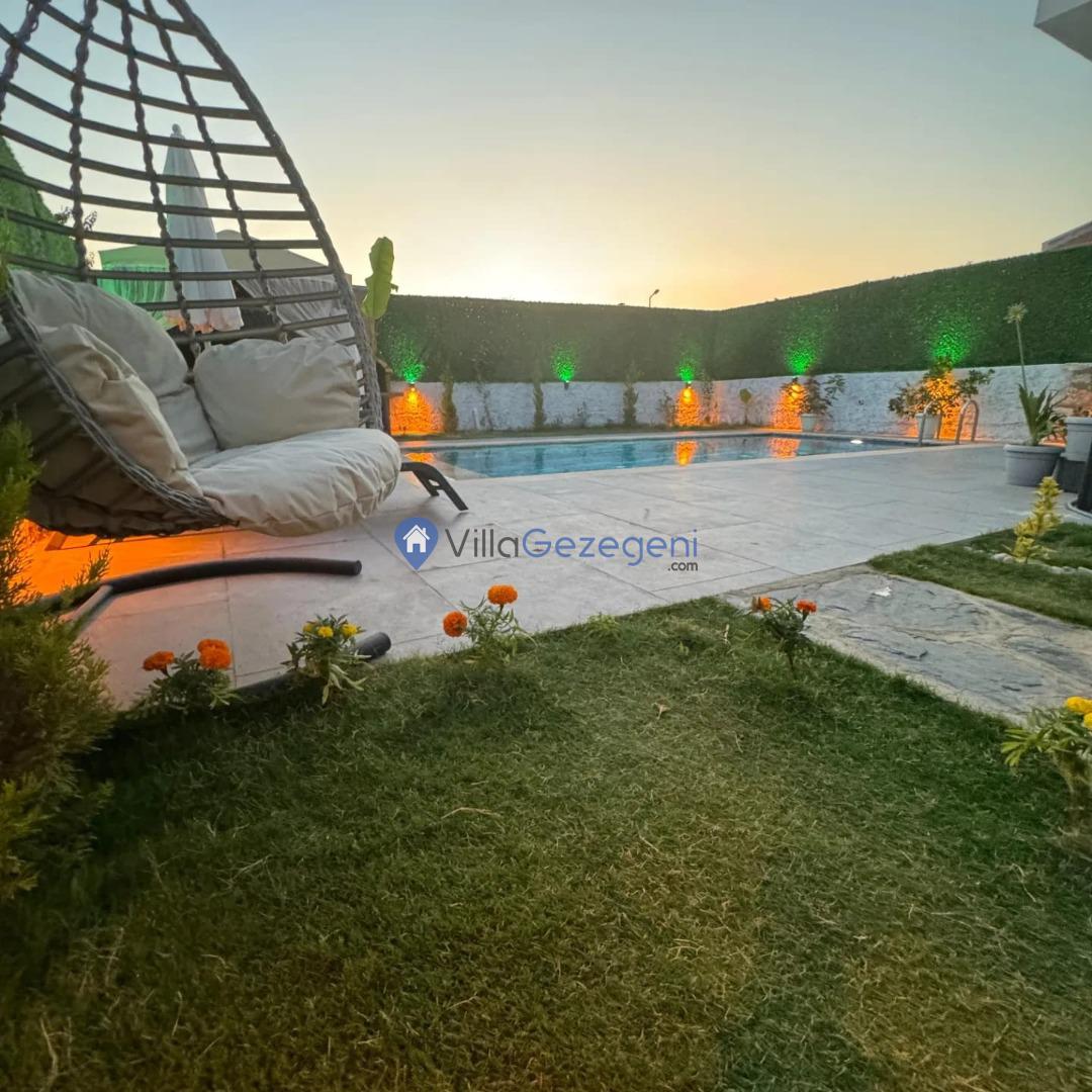 Bahçe: Özel yüzme havuzu, şezlong, güneş şemsiyesi, yemek -masa sandalyeleri, langırt, salıncak ve barbekü