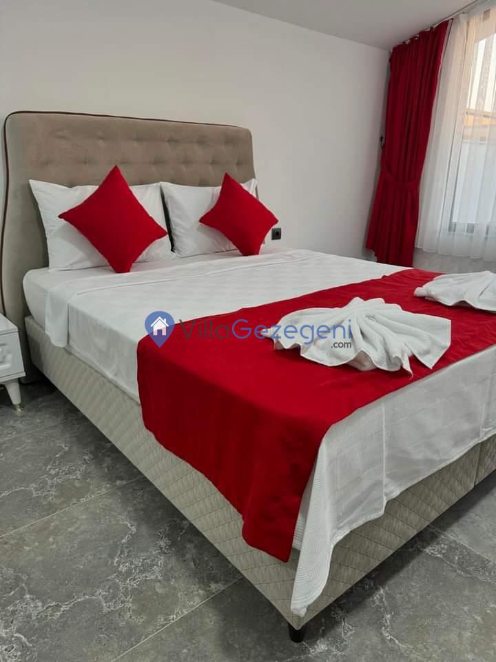 1. Yatak Odası : 1 adet Çift kişilik yatak, Klima, Komodin, Elbise Dolabı, ortak banyo/WC