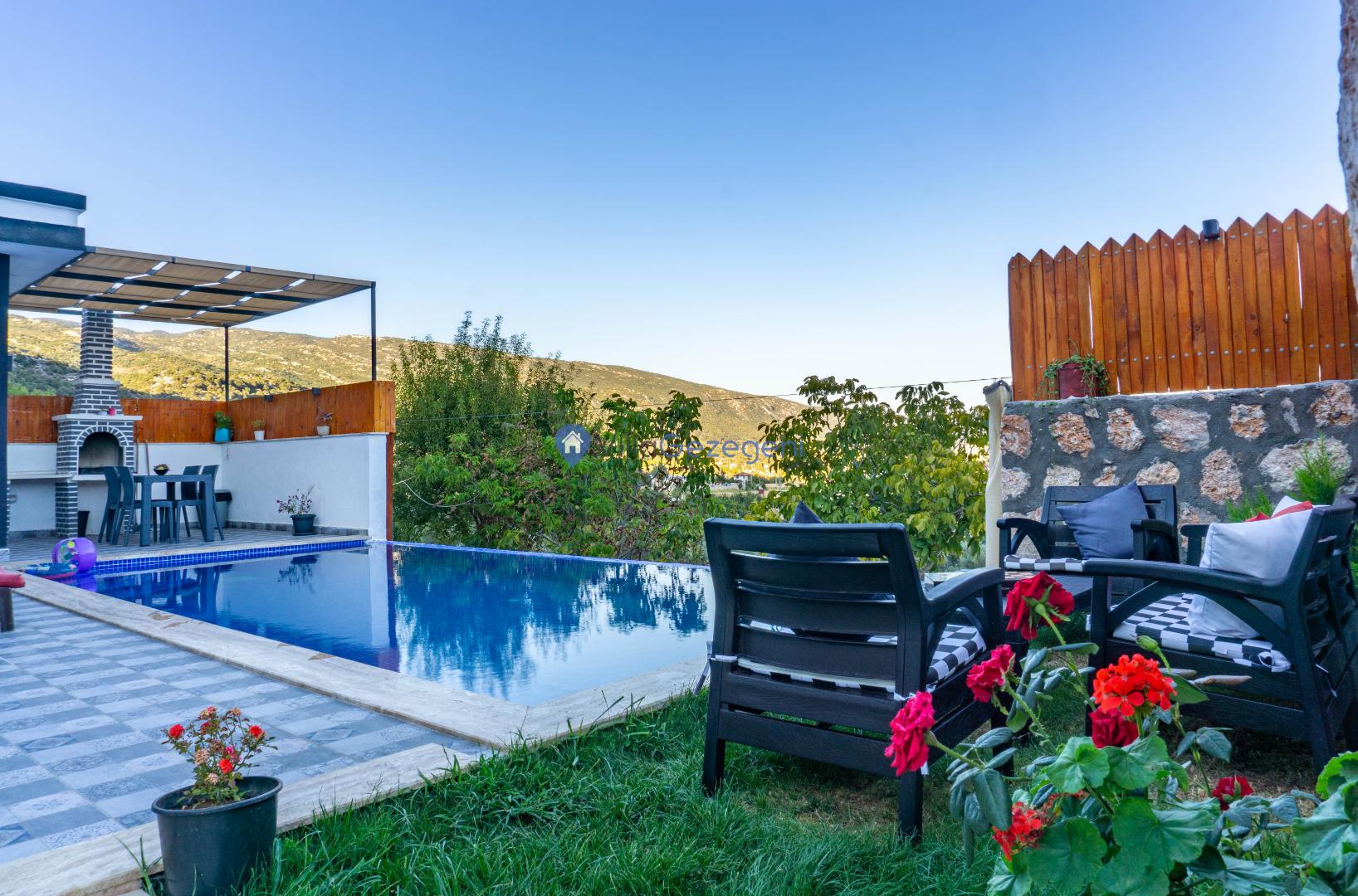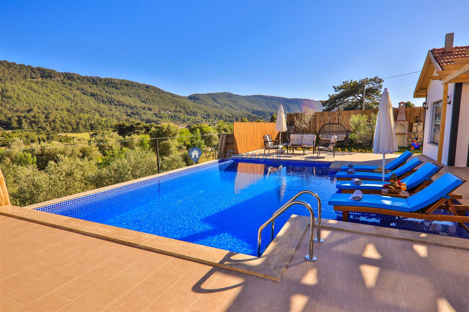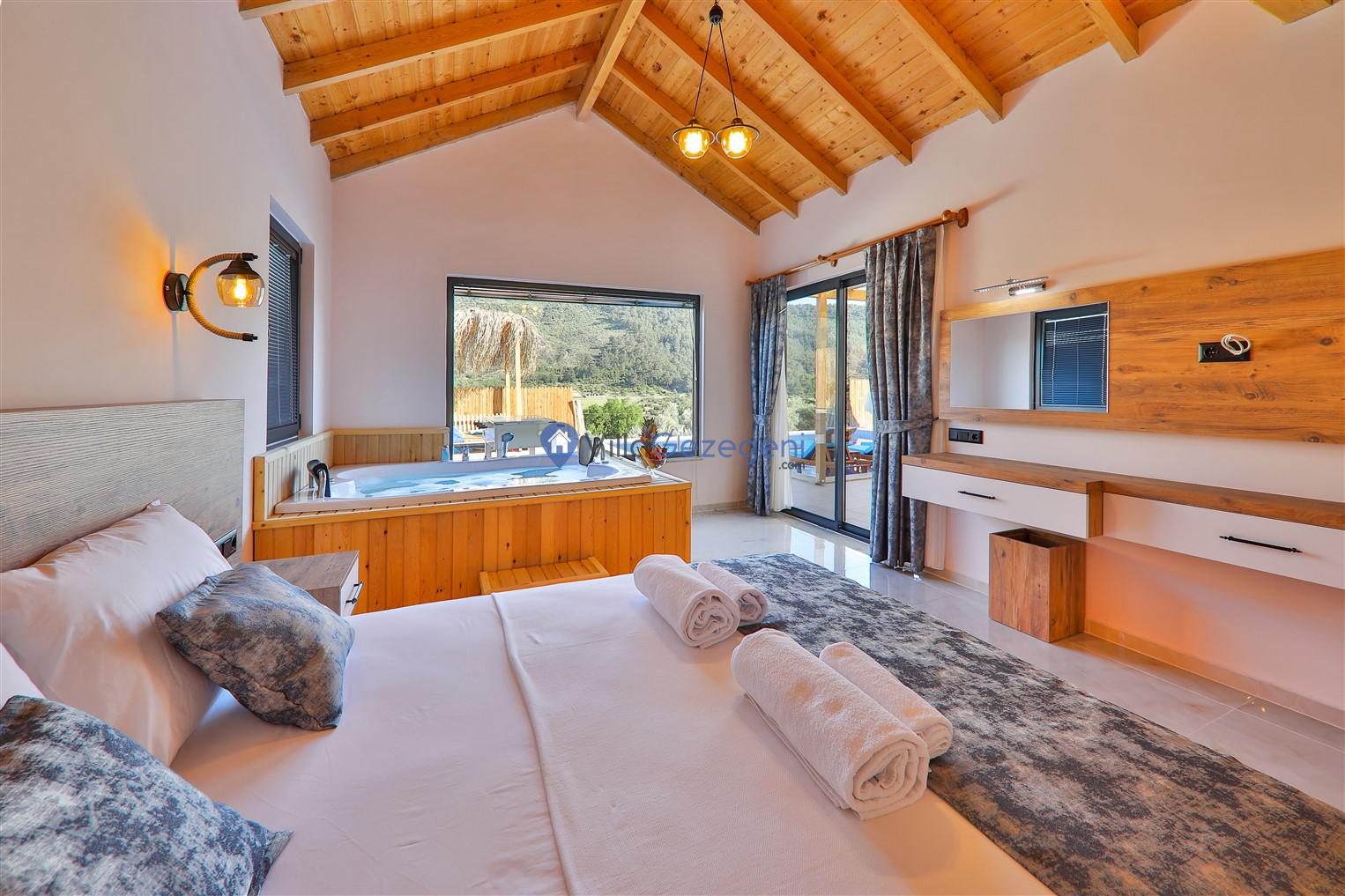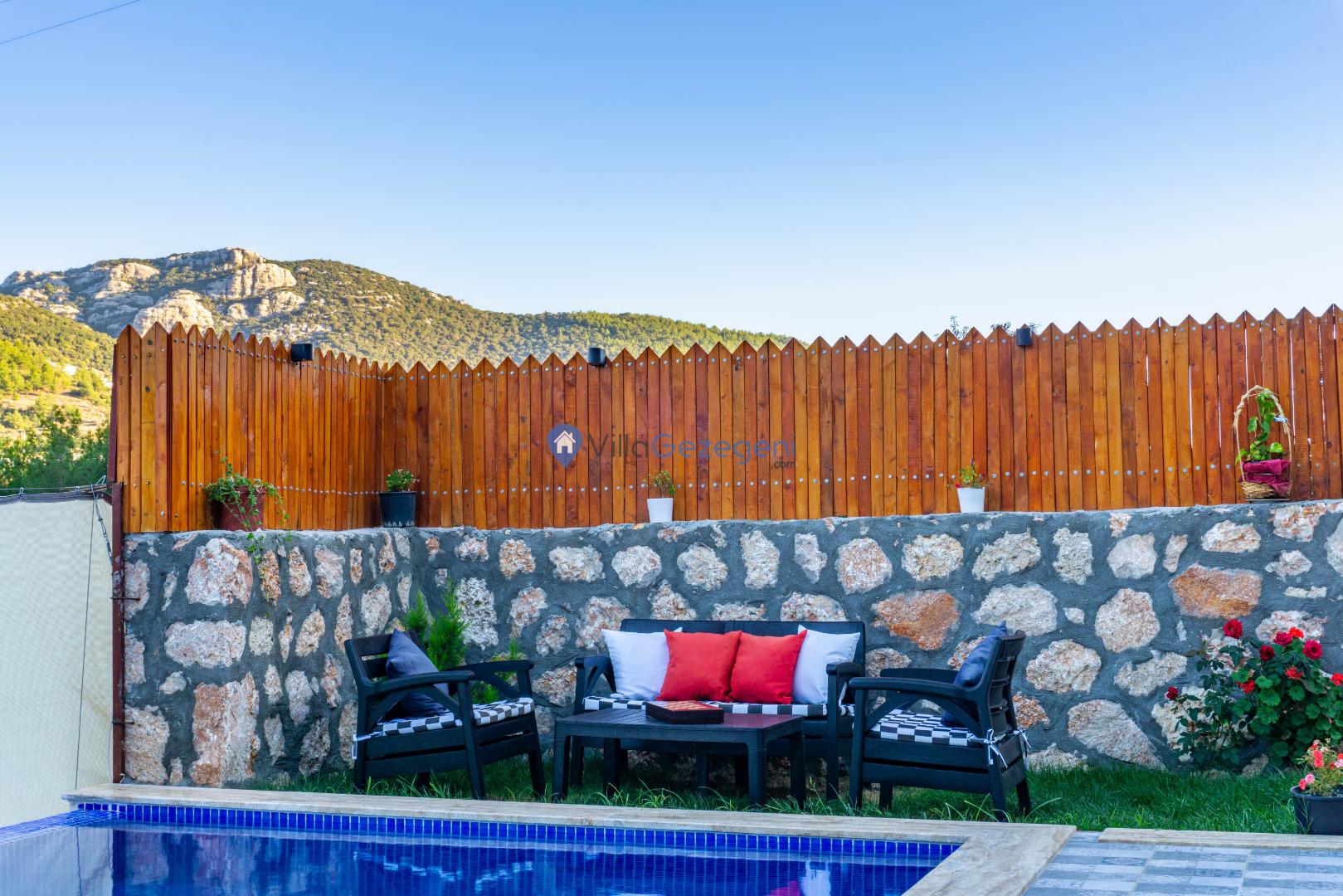Kalkan Sarıbelen Mevkiinde yer alan tek yatak odalı 2 kişi kapasiteli Muhafazakar balayı villası.