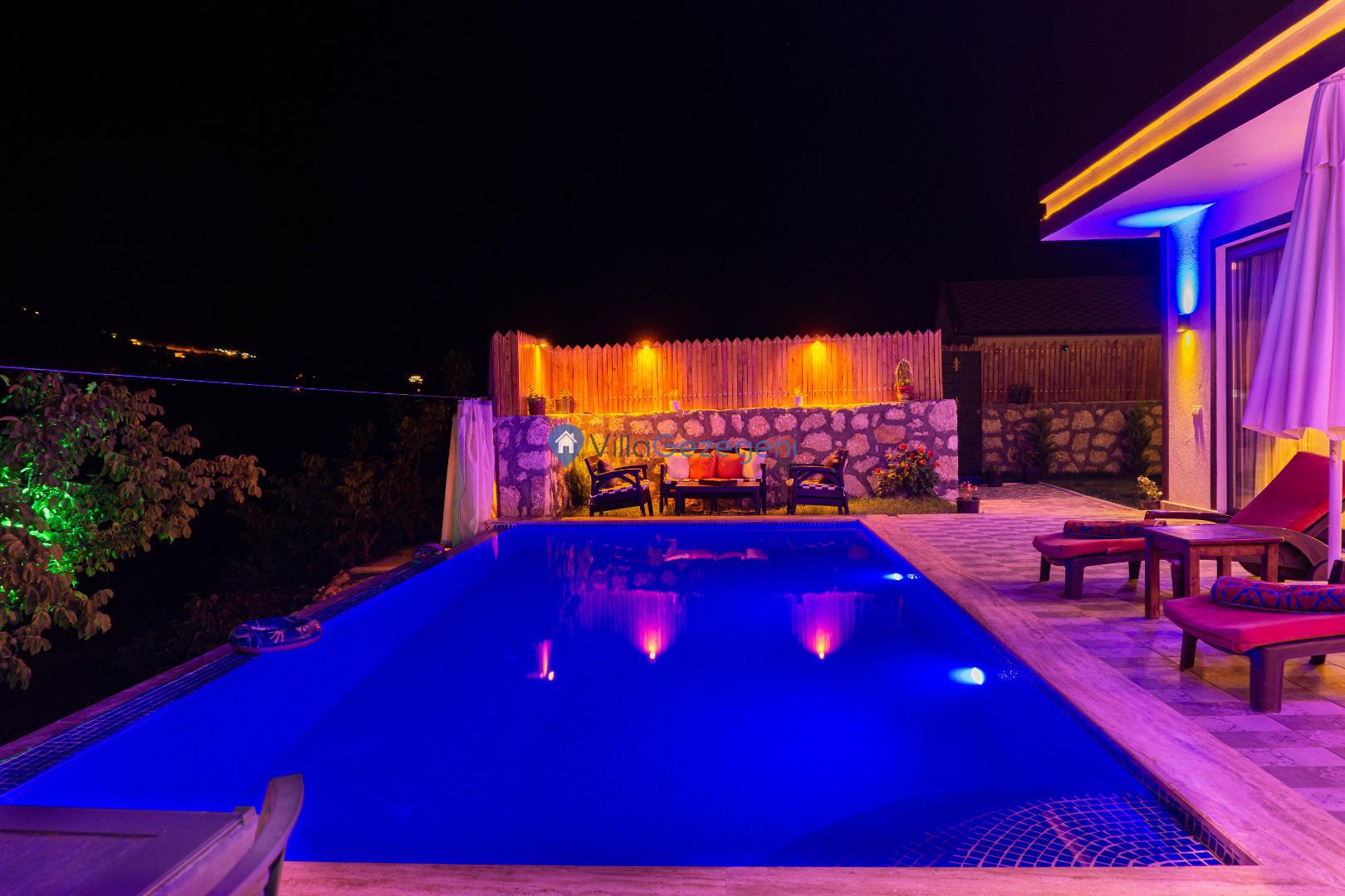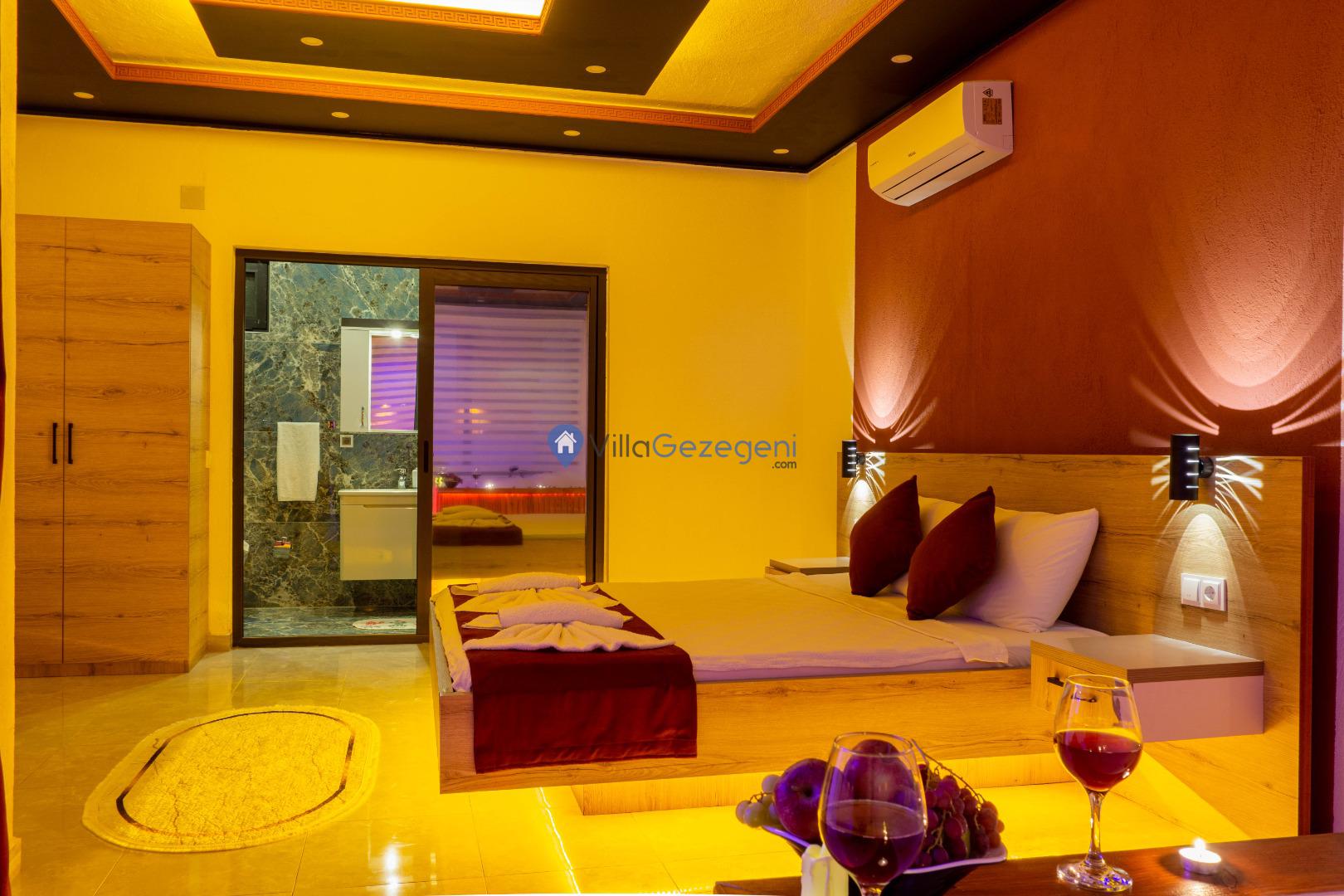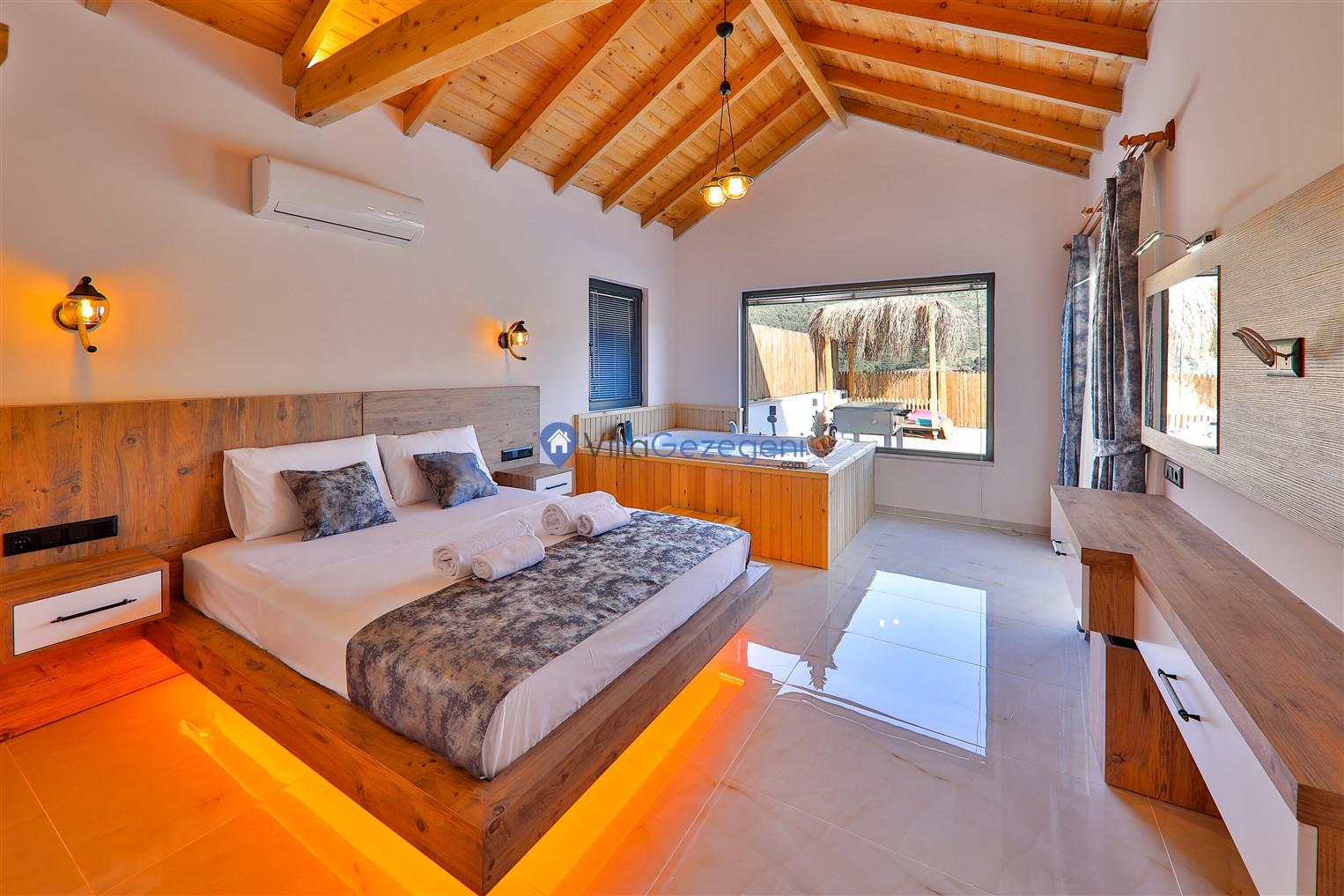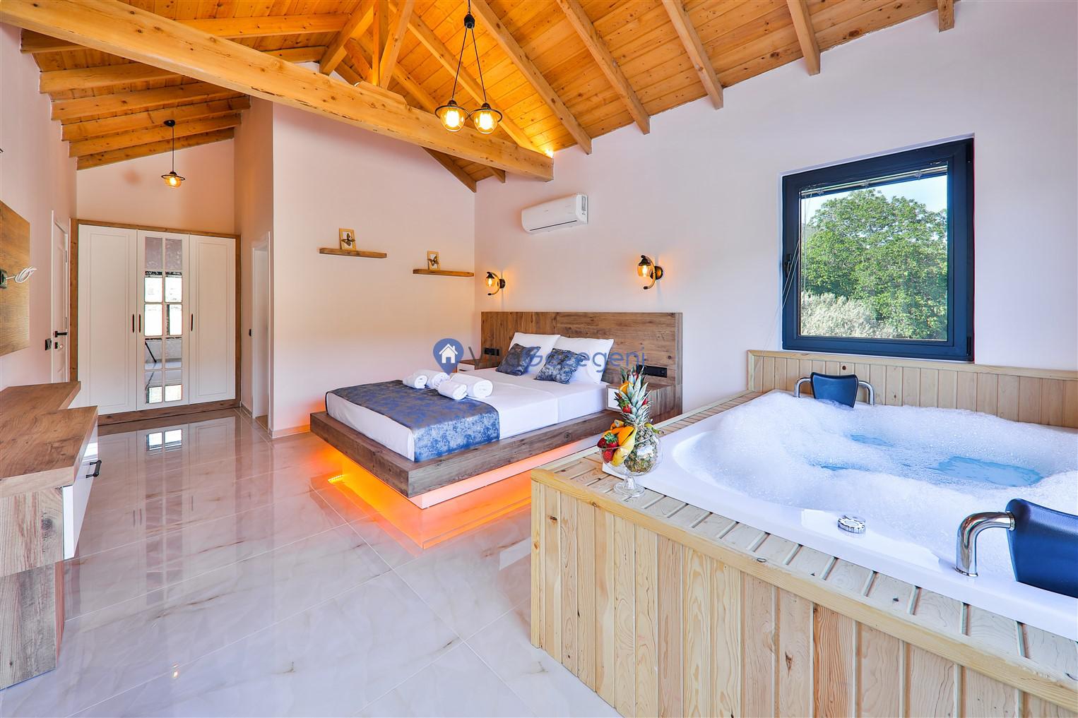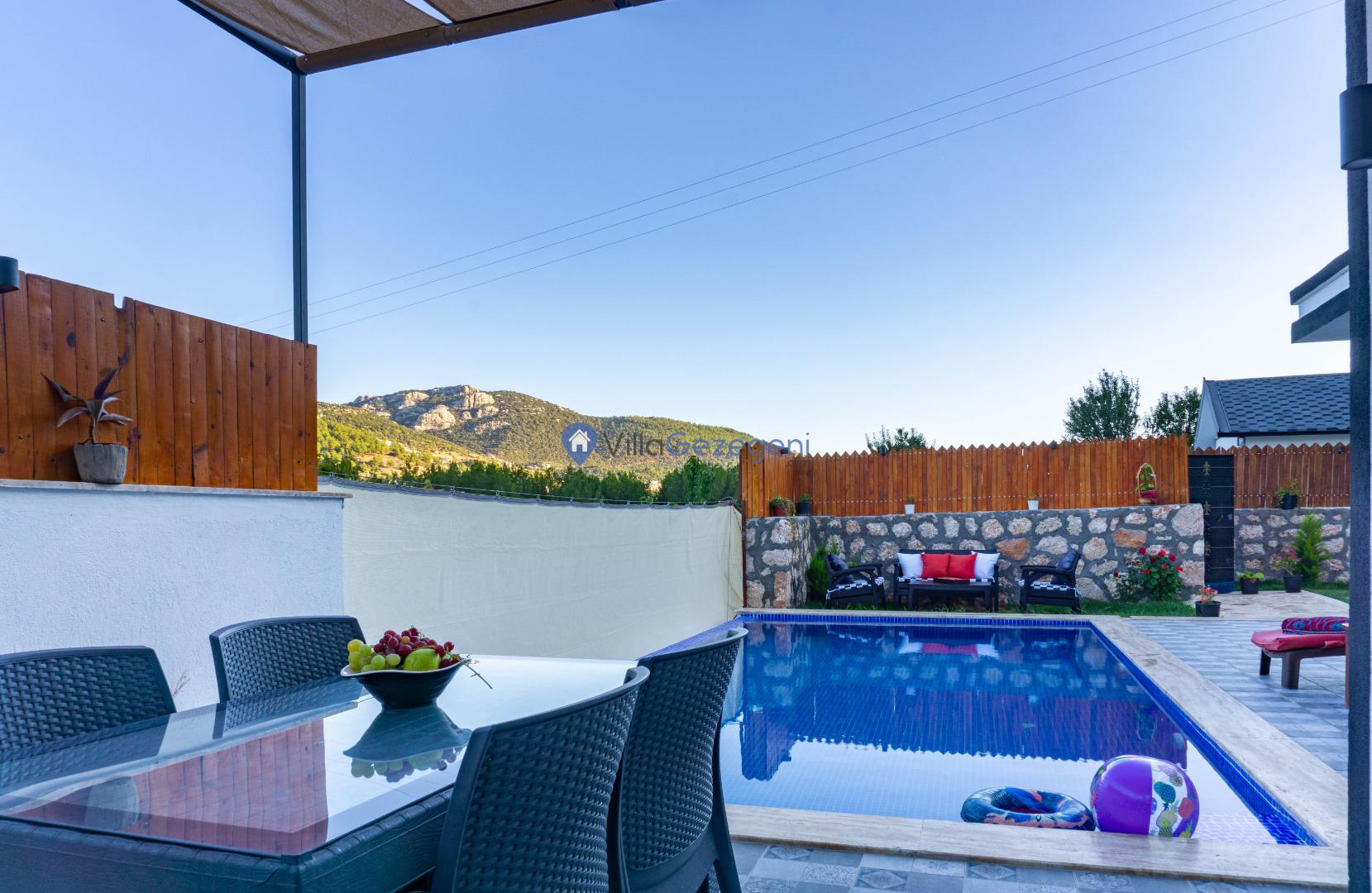 Kalkan Sarıbelen Mevkiinde yer alan tek yatak odalı 2 kişi kapasiteli Muhafazakar balayı villası.