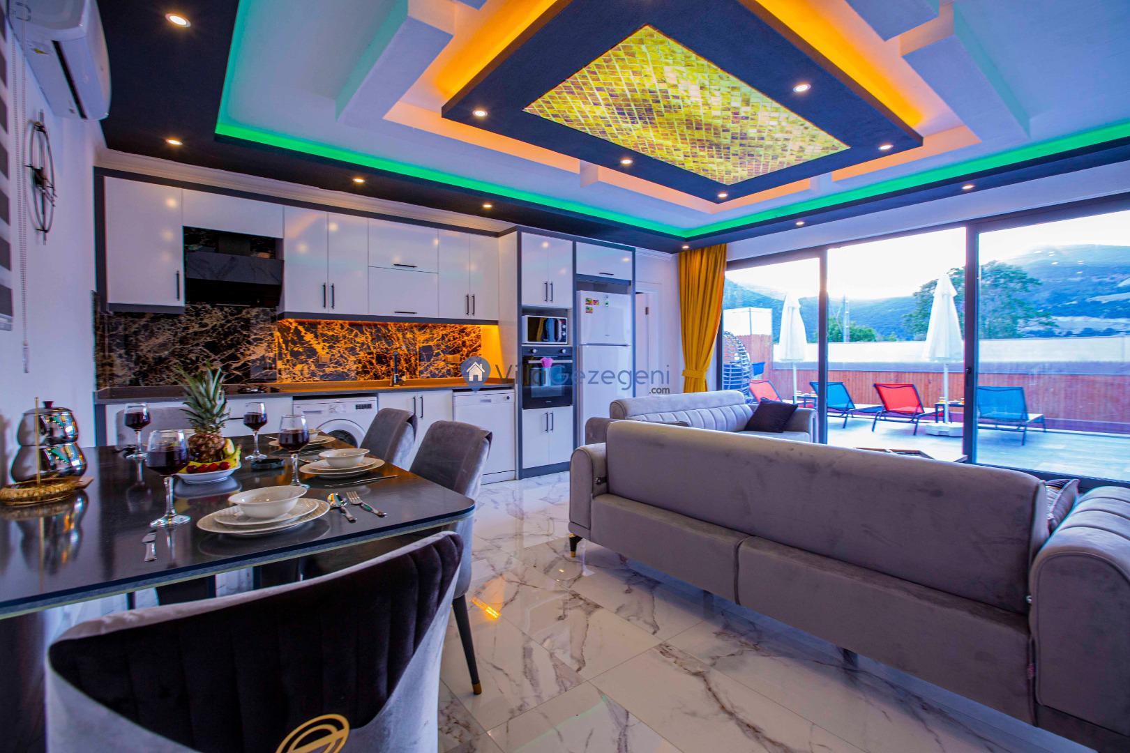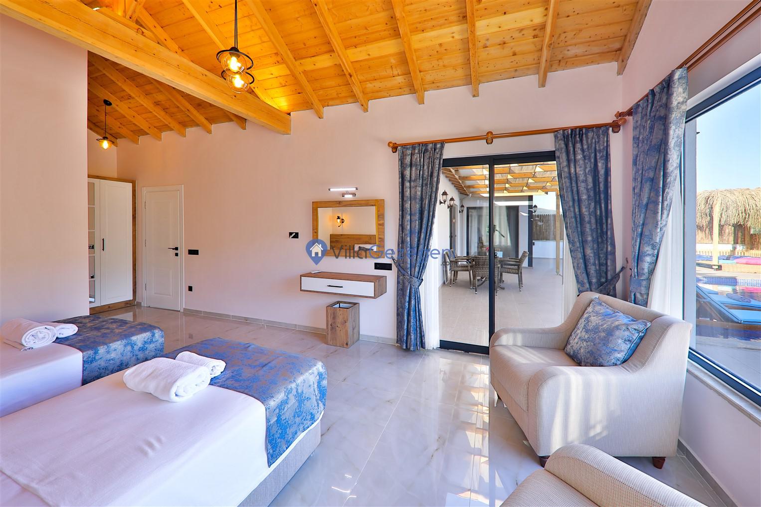 Kalkan Sarıbelen mevkiinde bulunan 2 yatak odalı 4 kişilik kiralık balayı villası