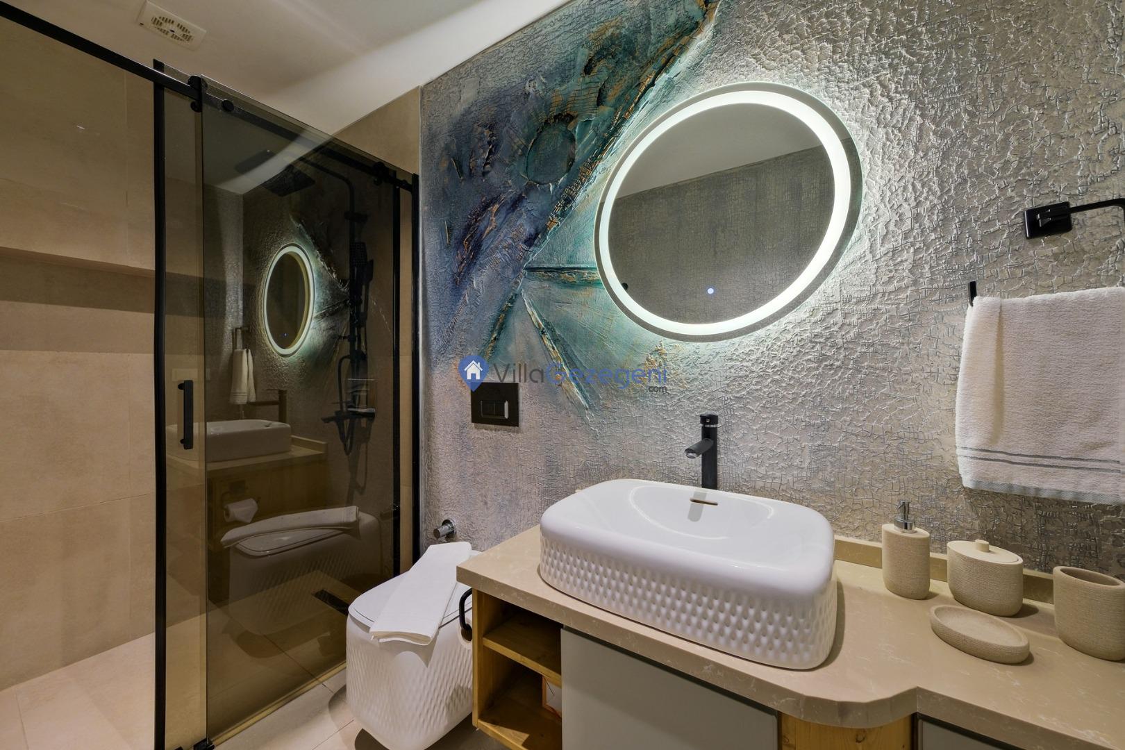 NOT : Villamızda 4 adet banyo/tuavlet mevcuttur 2 yatak odasında ebeveyn banyosu bulunmkatdır 2 yatak odasında banyo tuvalet bulunmamaktadır.ortak kullanım banyo tuvalet bulunmaktadır.