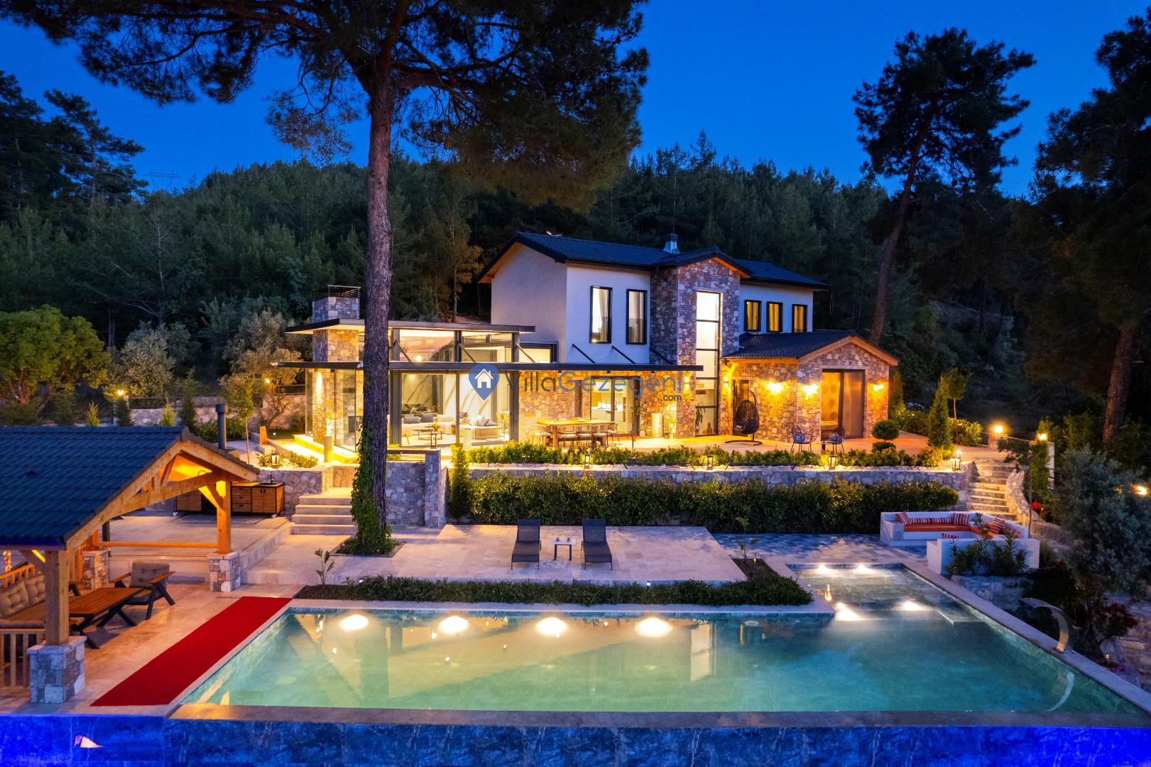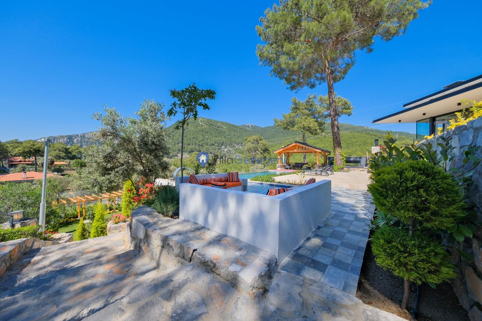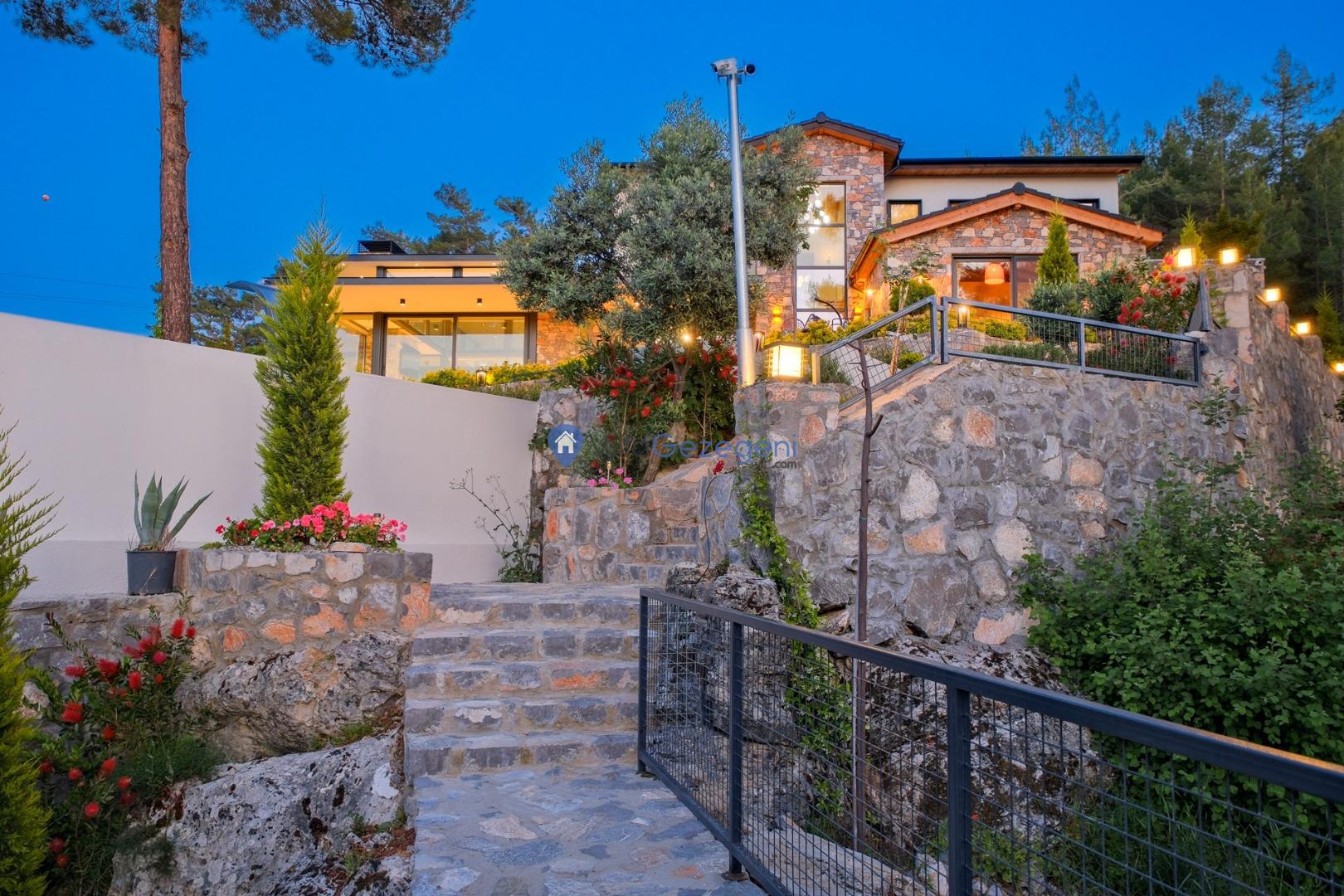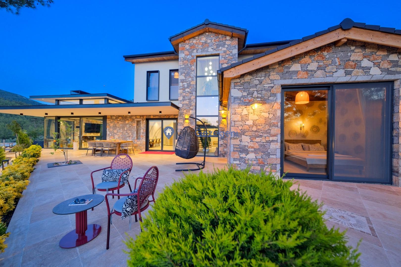 Muğla Fethiye Göcek Bölgesinde yer alan 4 yatak odalı 8 kişi kapasiteli doğa içerisinde lüks kiralık tatil villası.