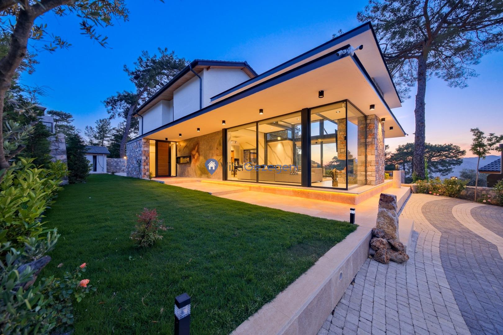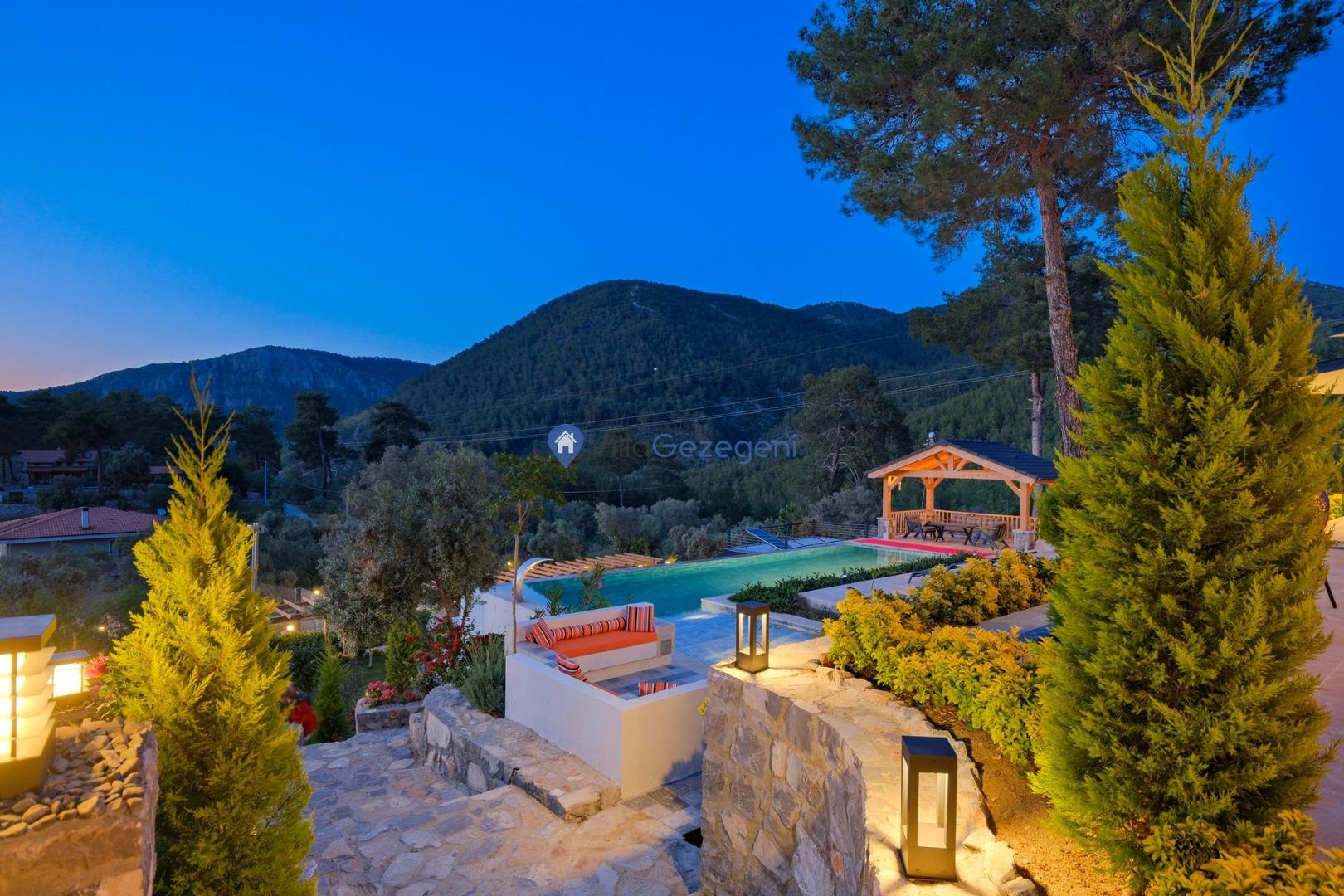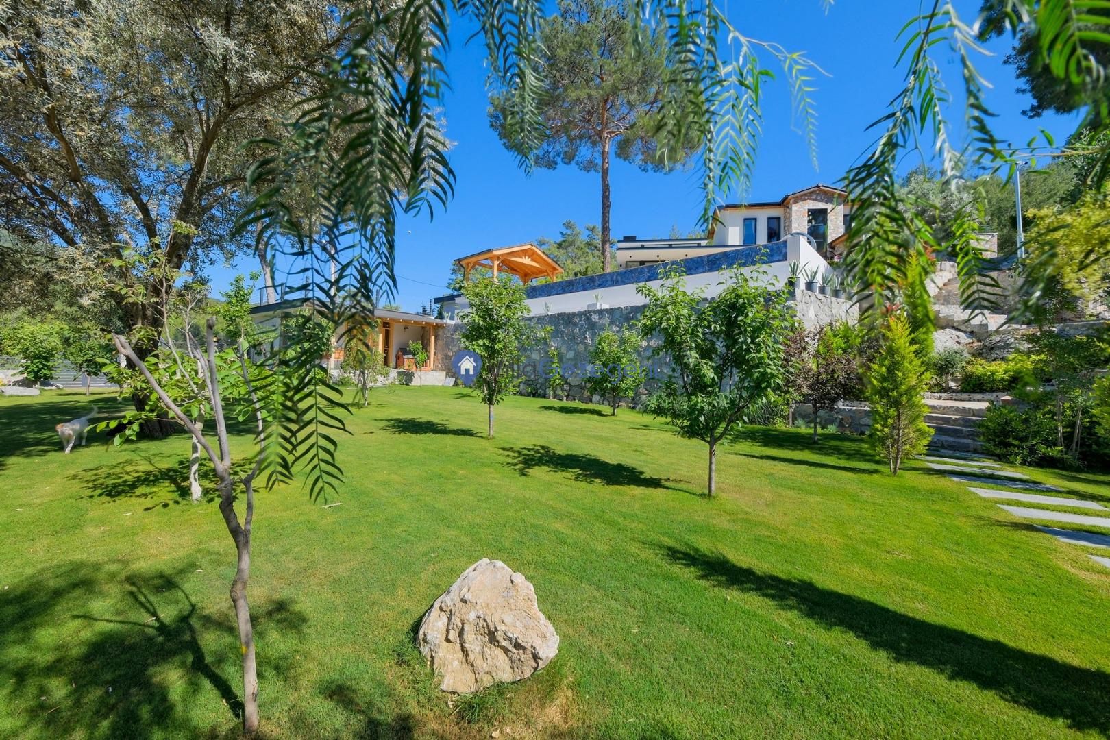Muğla Fethiye Göcek Bölgesinde yer alan 4 yatak odalı 8 kişi kapasiteli doğa içerisinde lüks kiralık tatil villası.