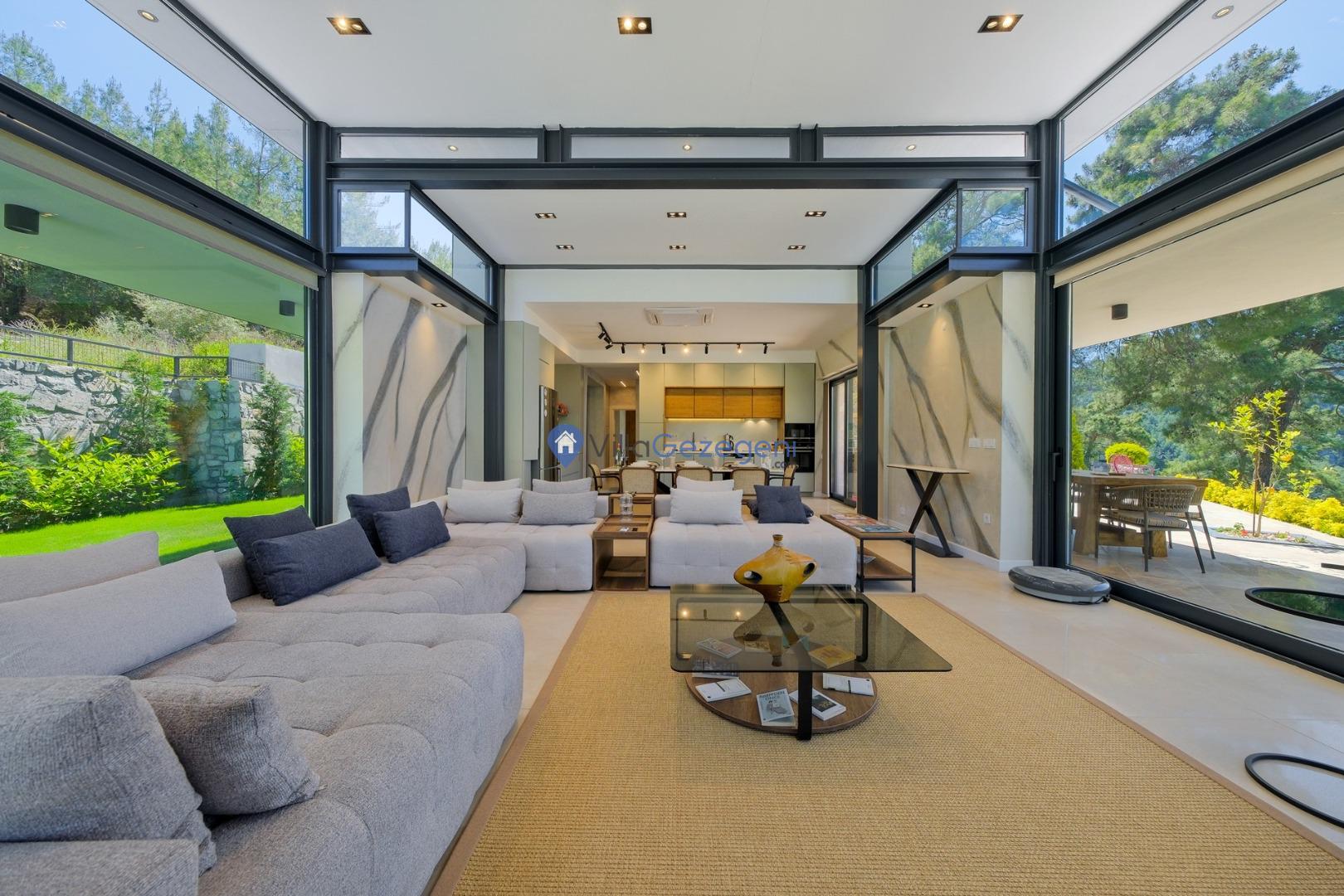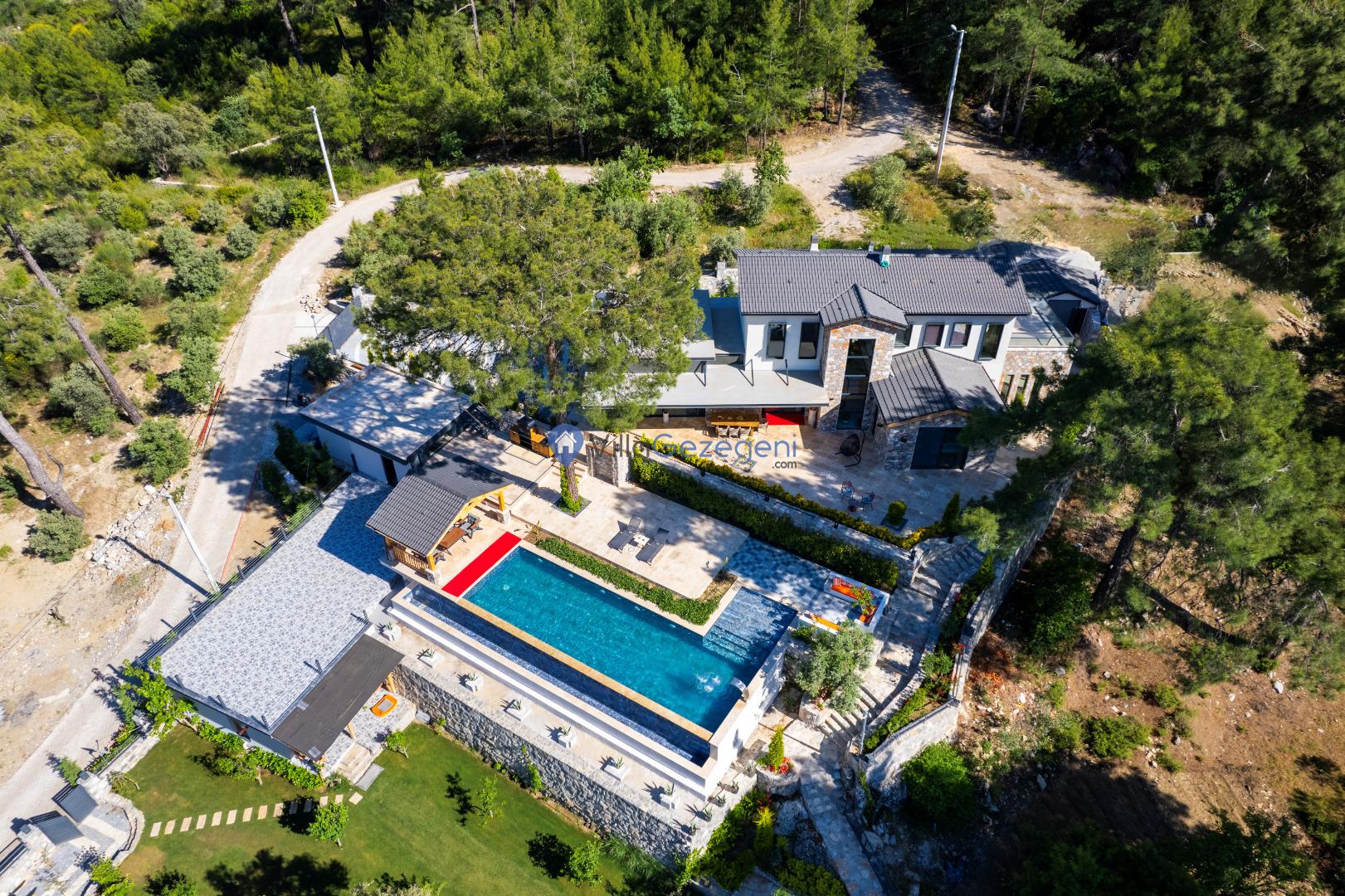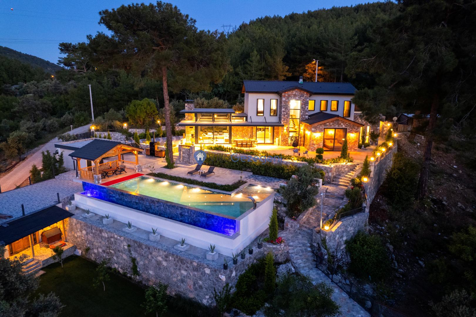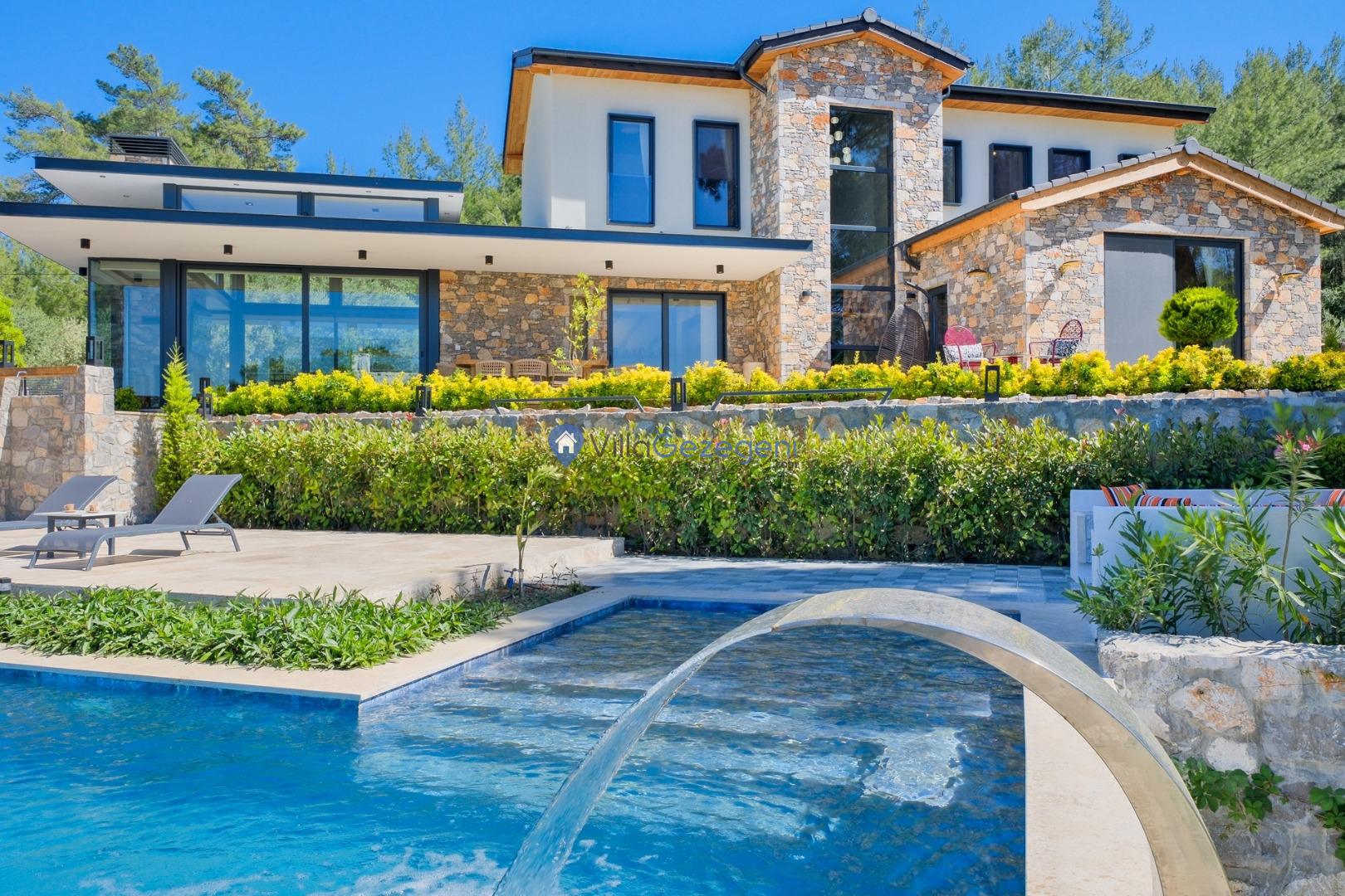 Muğla Fethiye Göcek Bölgesinde yer alan 4 yatak odalı 8 kişi kapasiteli doğa içerisinde lüks kiralık tatil villası.