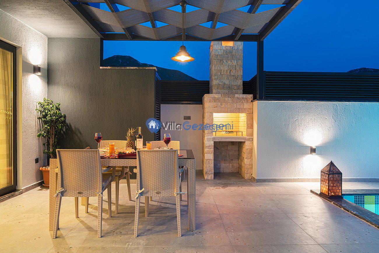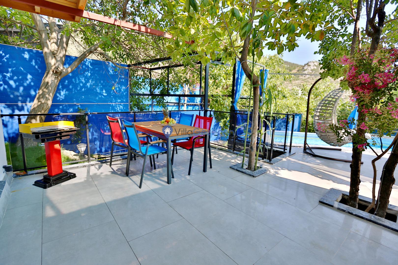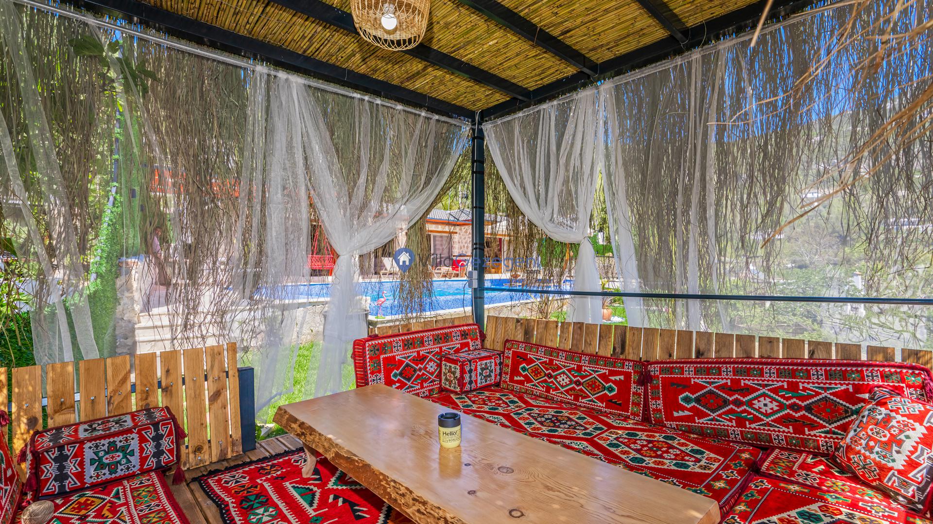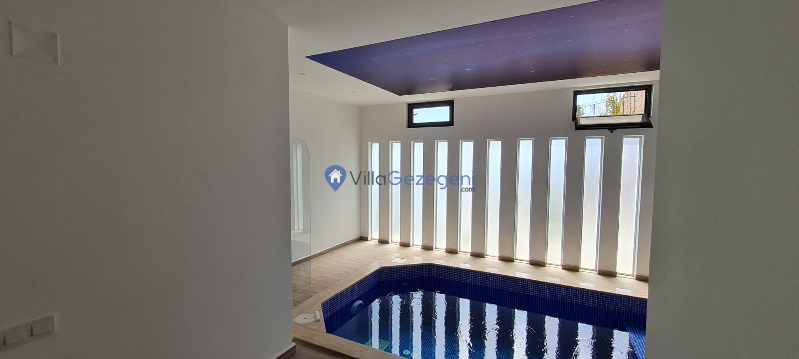 Bu villanın havuz terası, doğayla iç içe, tamamen korunaklı yapısıyla mahremiyet arayan misafirler için huzurlu ve konforlu bir alan sunar. Dışarıdan görünmeyecek şekilde tasarlanmış bu özel teras, hem güvenli hem de özgürce vakit geçirebileceğiniz bir ortam sağlar.