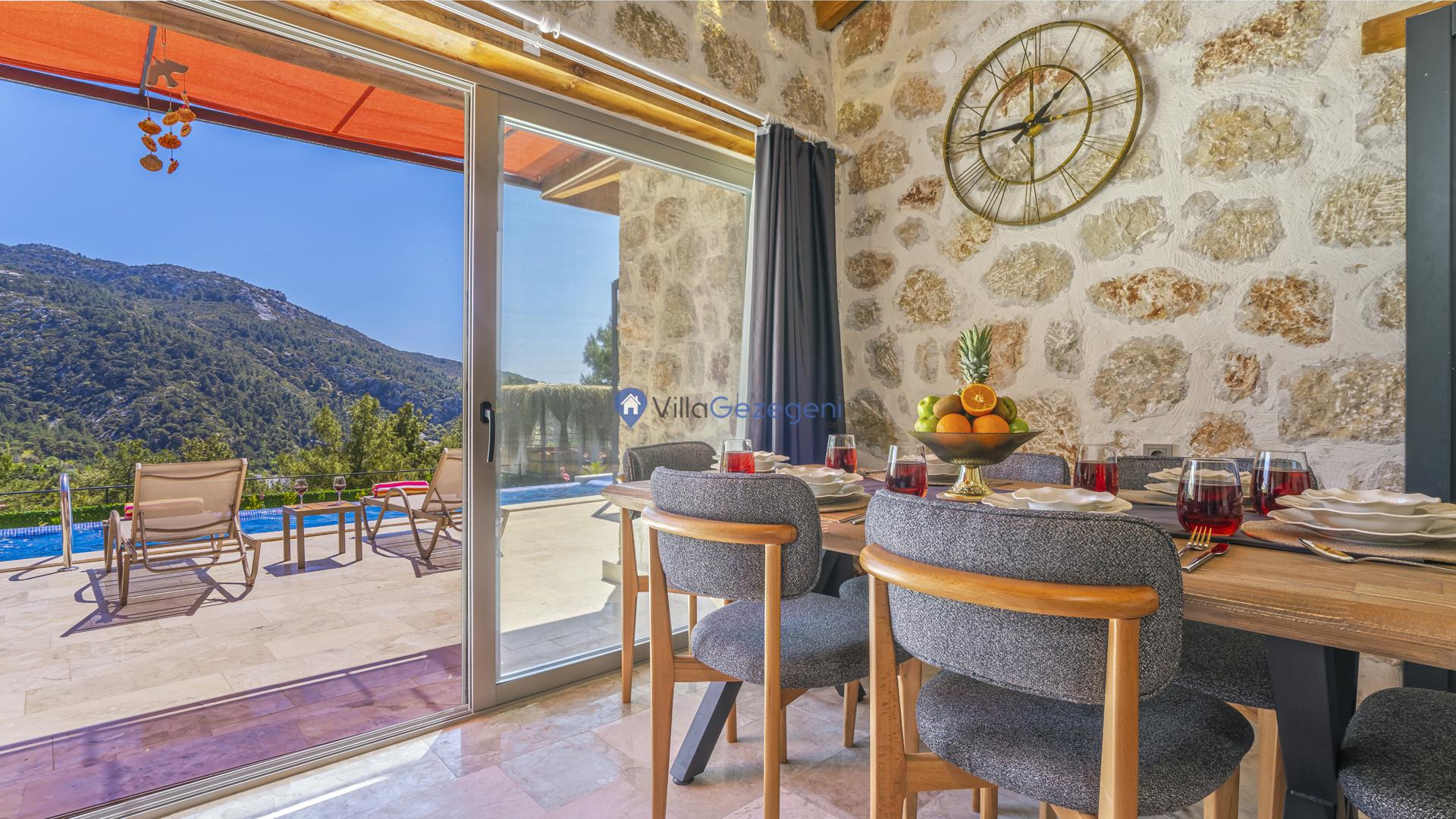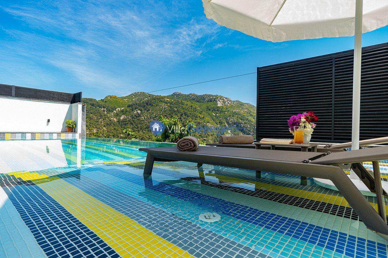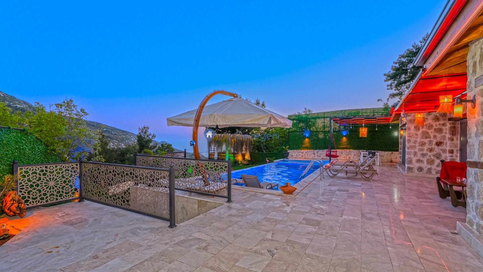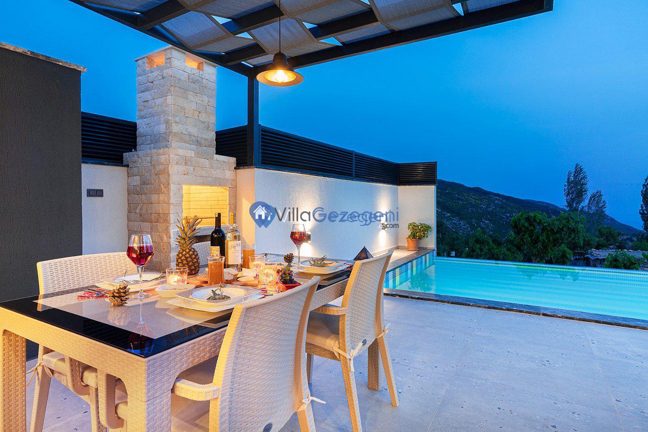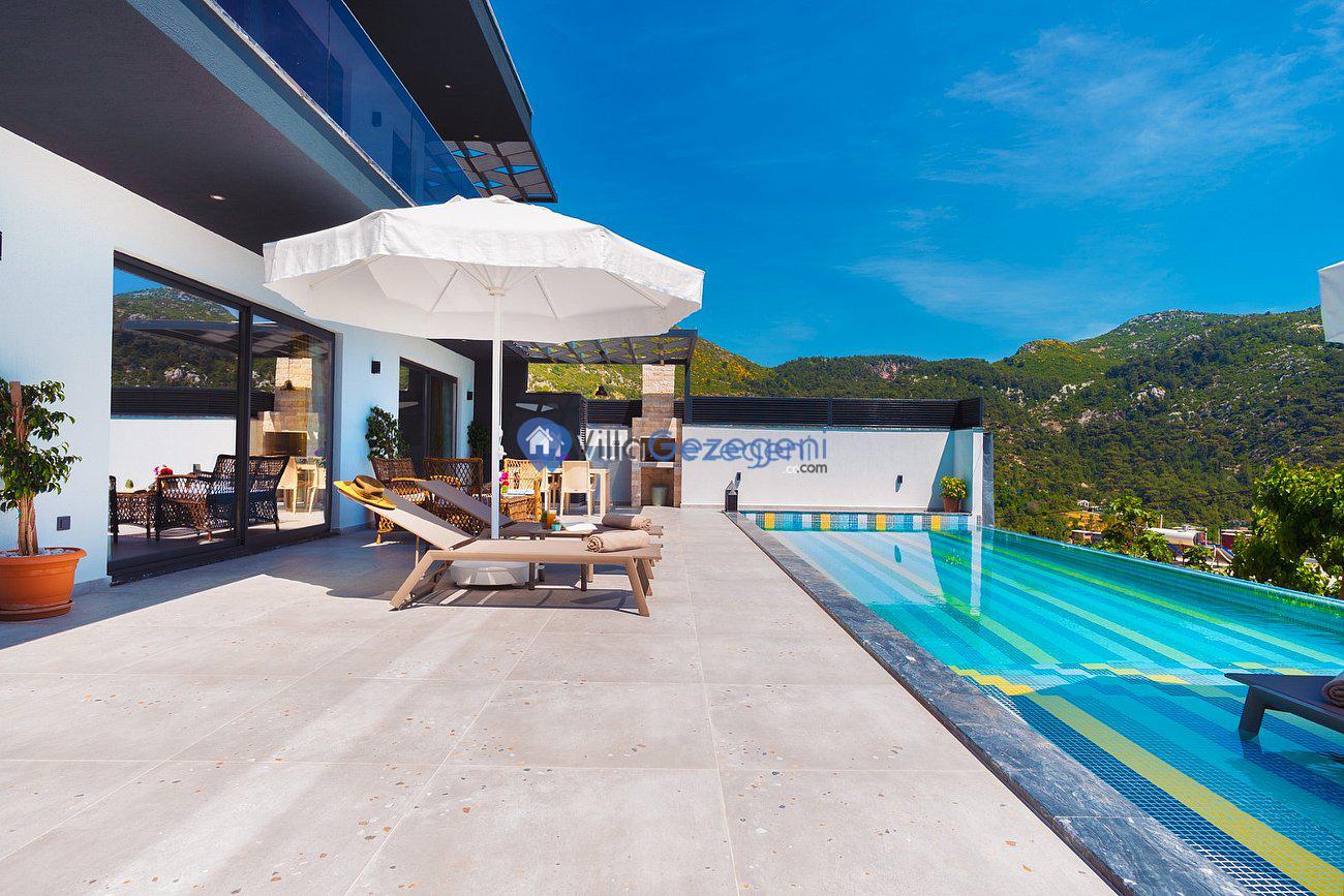 Bu villanın havuz terası, doğayla iç içe, tamamen korunaklı yapısıyla mahremiyet arayan misafirler için huzurlu ve konforlu bir alan sunar. Dışarıdan görünmeyecek şekilde tasarlanmış bu özel teras, hem güvenli hem de özgürce vakit geçirebileceğiniz bir ortam sağlar.