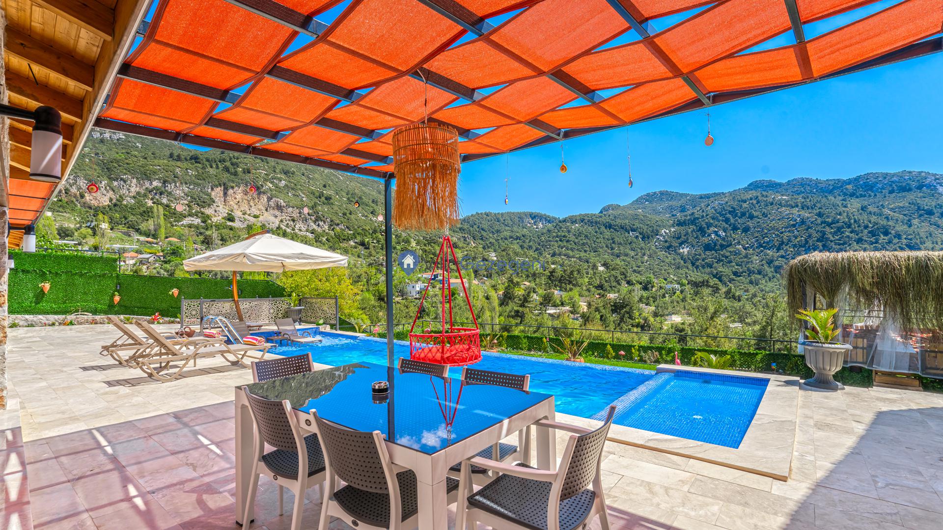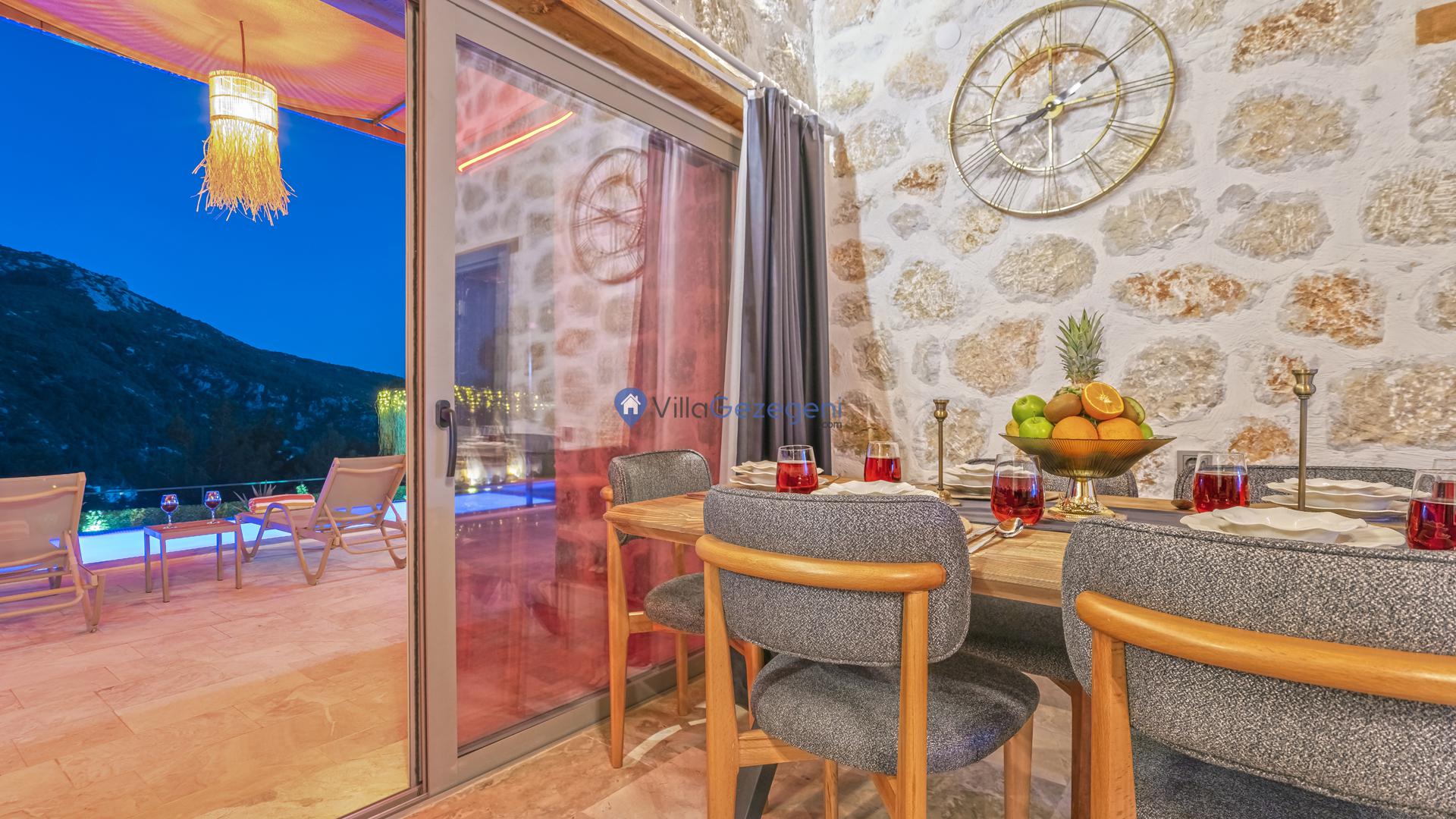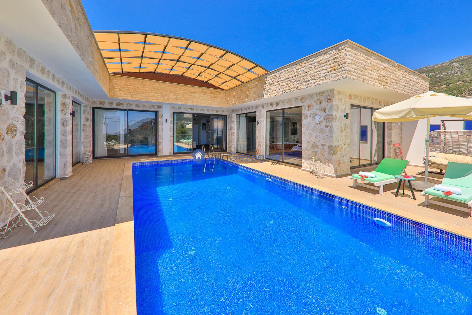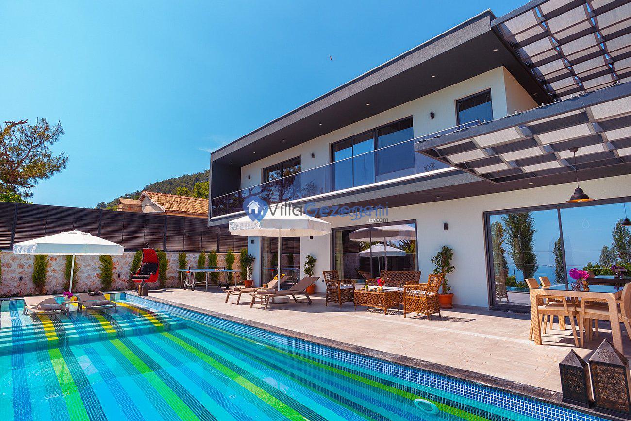 Bu villanın havuz terası, doğayla iç içe, tamamen korunaklı yapısıyla mahremiyet arayan misafirler için huzurlu ve konforlu bir alan sunar. Dışarıdan görünmeyecek şekilde tasarlanmış bu özel teras, hem güvenli hem de özgürce vakit geçirebileceğiniz bir ortam sağlar.