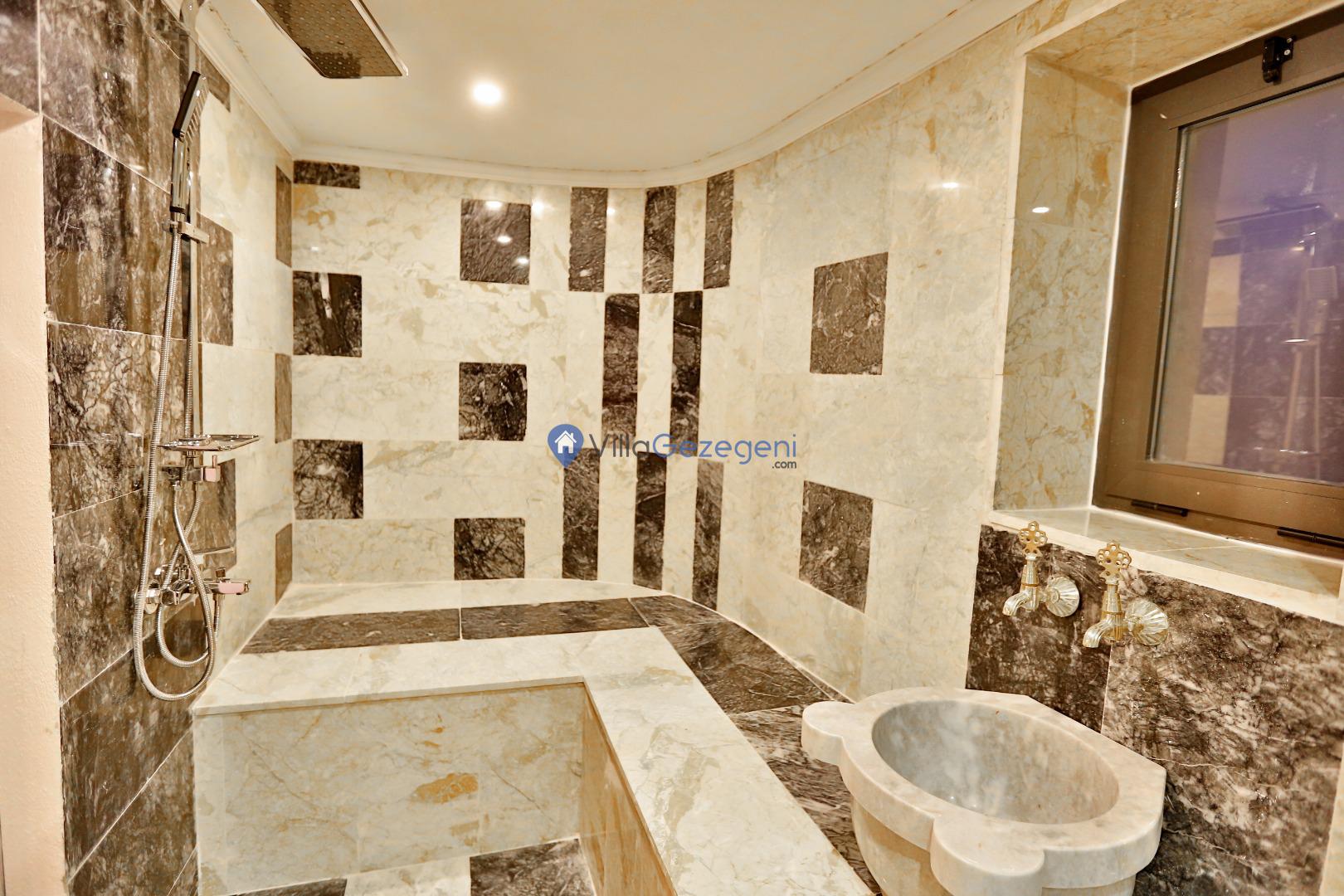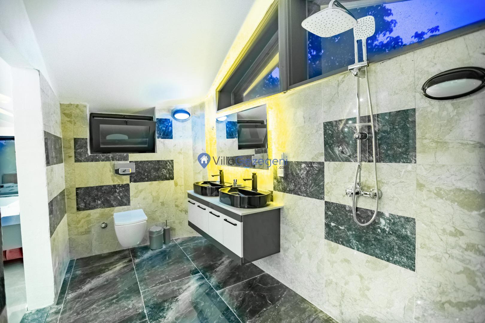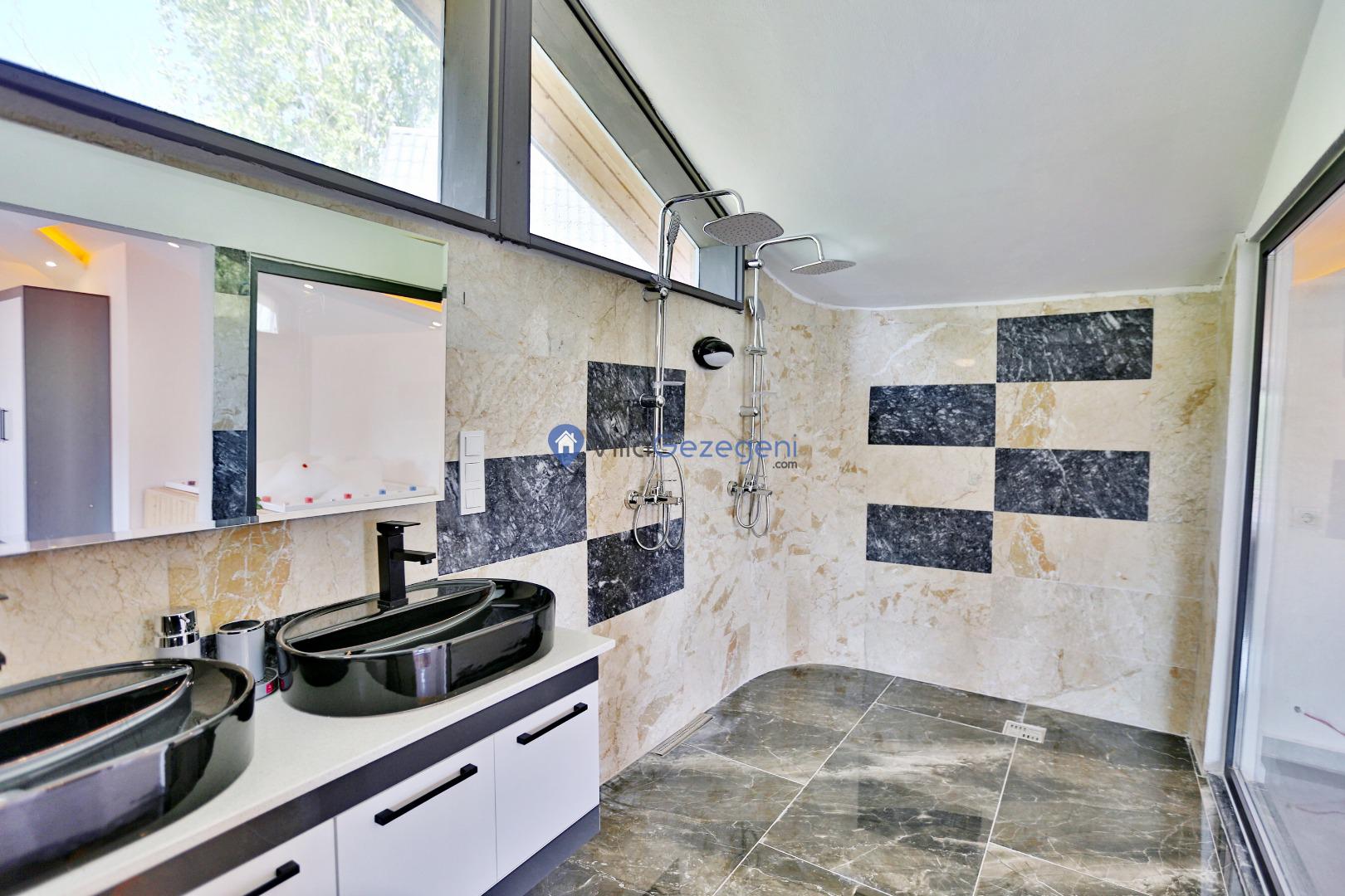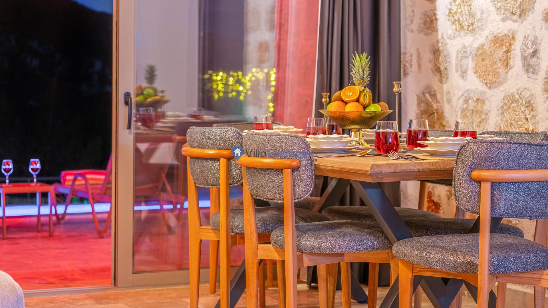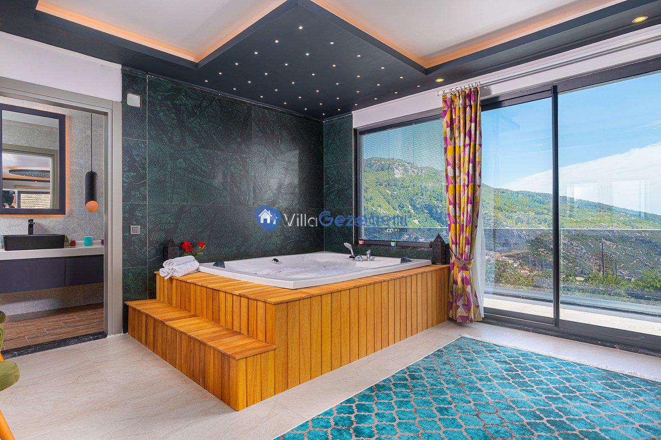 Bu villanın havuz terası, doğayla iç içe, tamamen korunaklı yapısıyla mahremiyet arayan misafirler için huzurlu ve konforlu bir alan sunar. Dışarıdan görünmeyecek şekilde tasarlanmış bu özel teras, hem güvenli hem de özgürce vakit geçirebileceğiniz bir ortam sağlar.