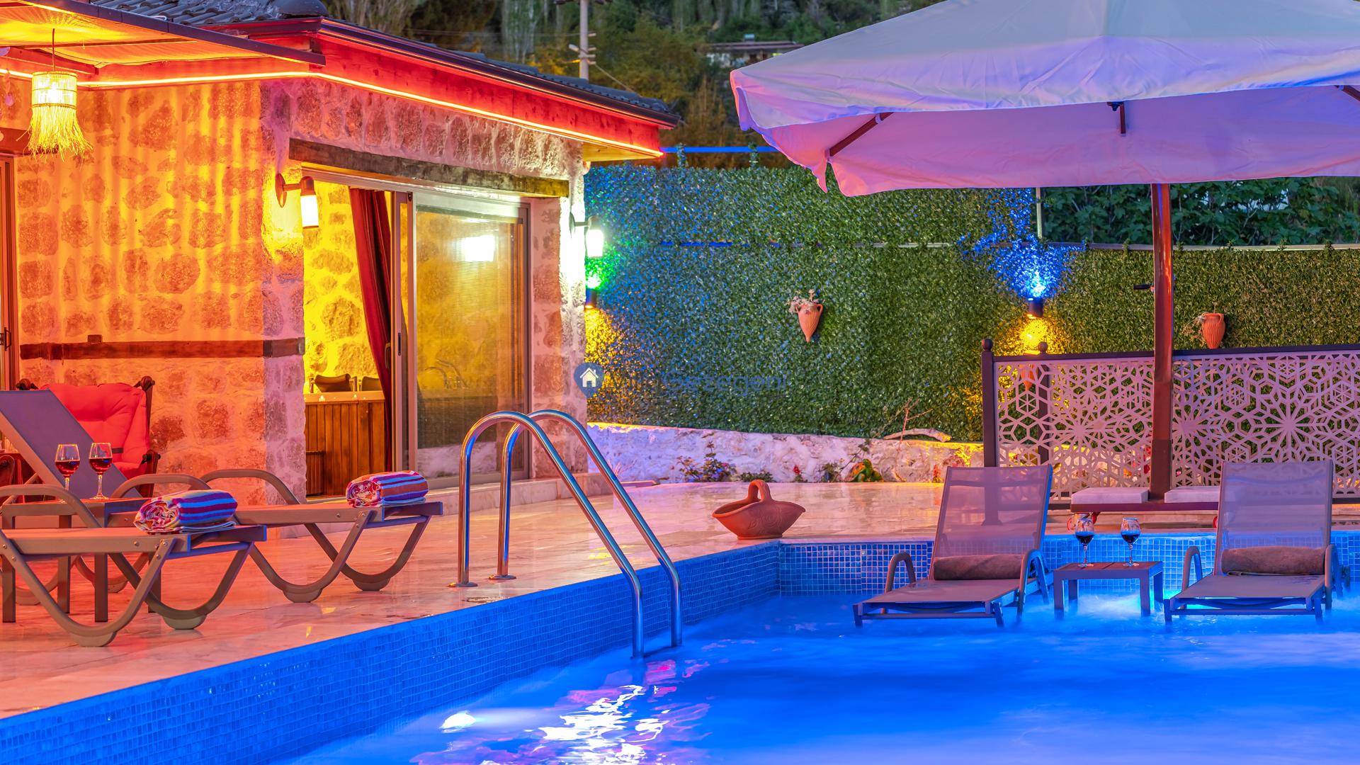 Kaş/Kalkan’ın yemyeşil doğasıyla ünlü İslamlar bölgesinde konumlanan bu özel villa, 2 yatak odası ve 4 kişilik konaklama kapasitesiyle özellikle balayı çiftleri ve çekirdek aileler için huzur dolu bir tatil imkânı sunar. Doğa ile iç içe, sessiz ve sakin bir atmosferde yer alan villa, mahremiyete önem veren misafirler için muhafazakâr konseptiyle öne çıkar.
