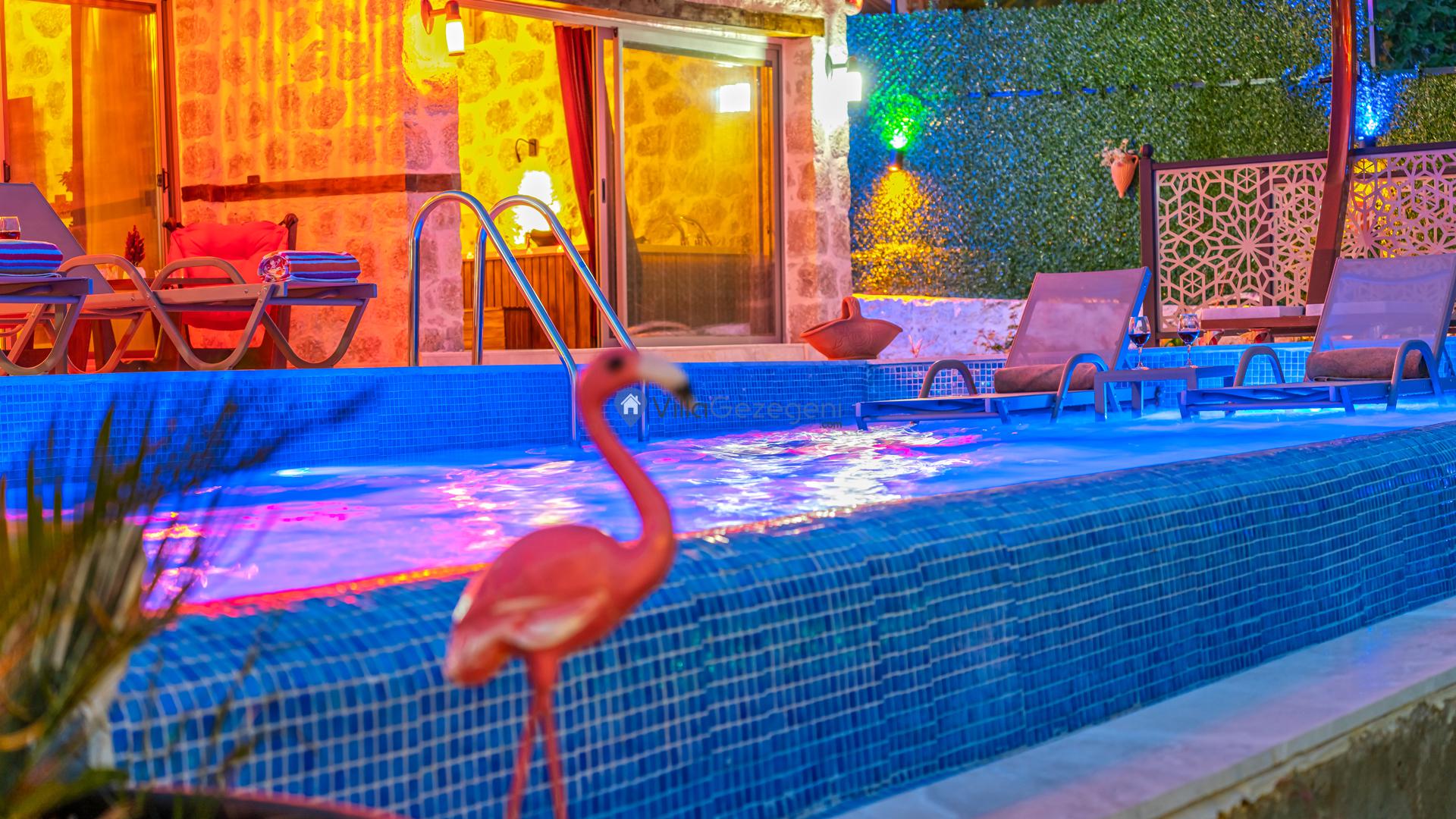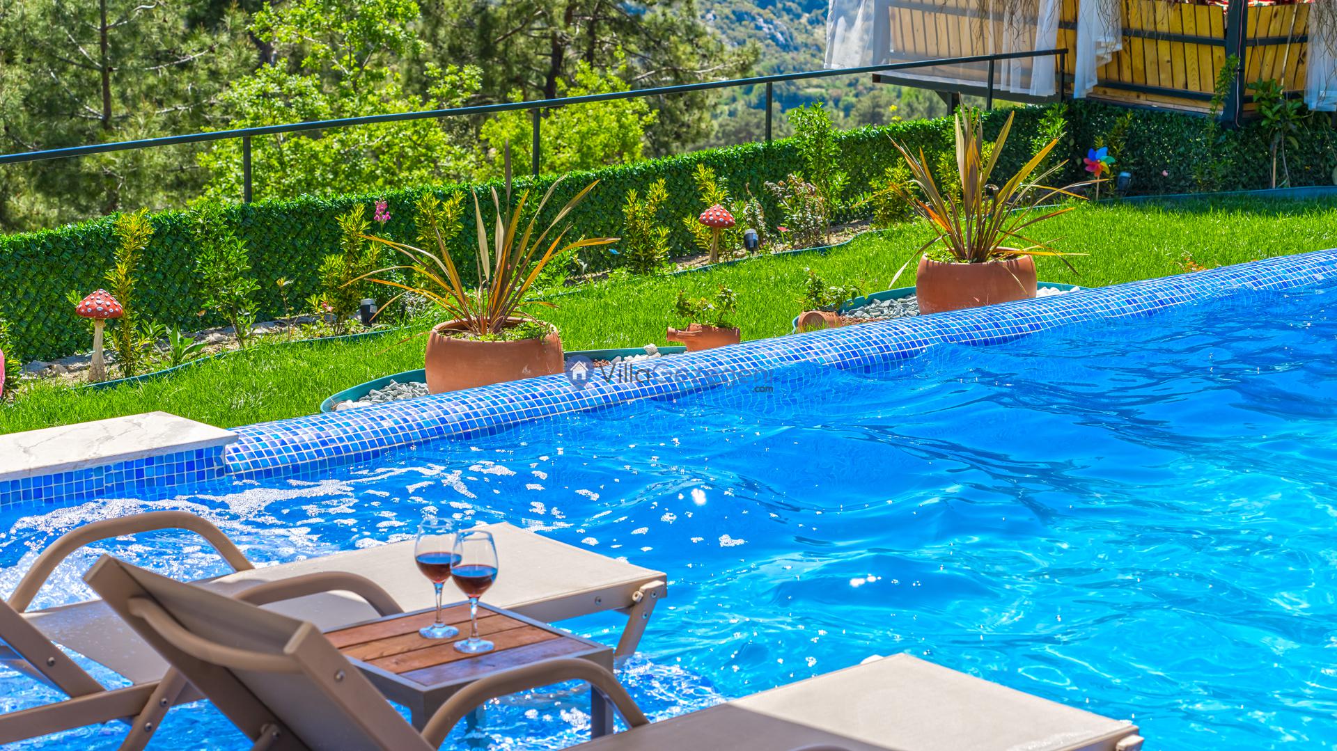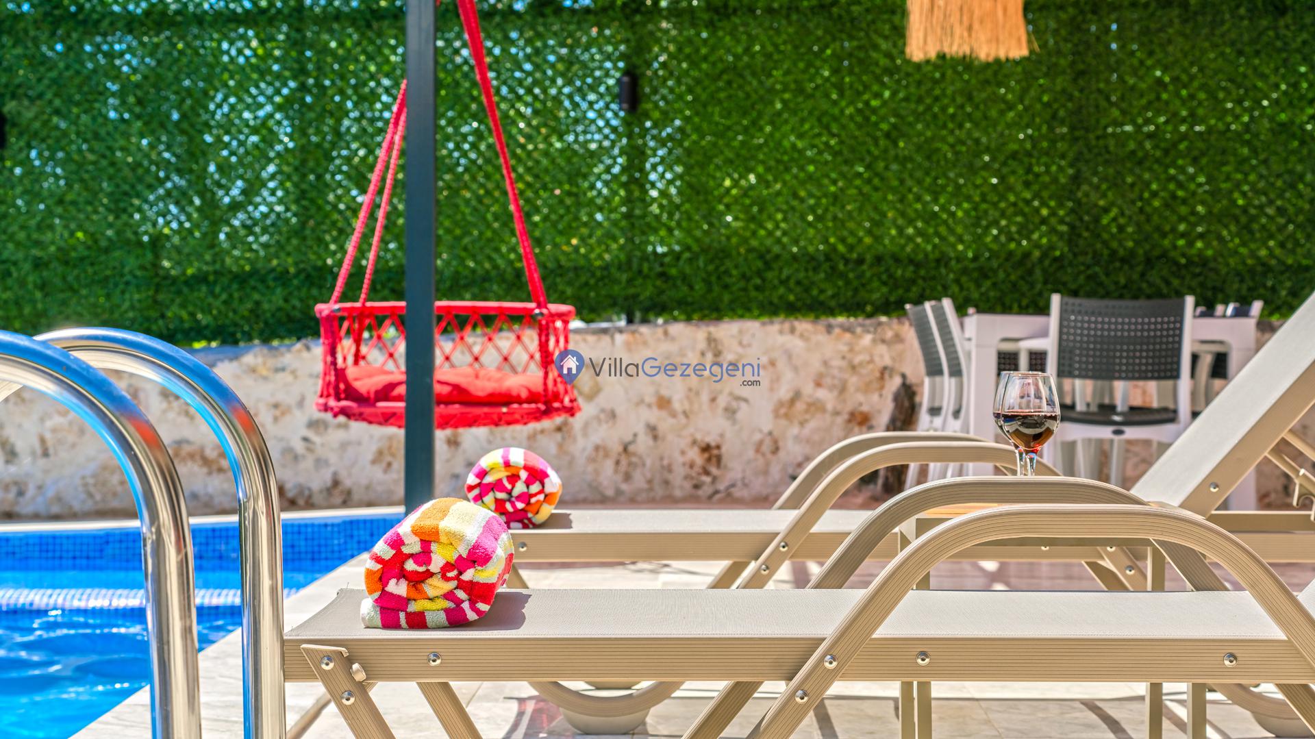 Korunaklı havuz alanı sayesinde dışarıdan görünmeden özgürce vakit geçirebilir, sadece size ait bu özel alanda dinlenmenin ve rahatlamanın keyfini çıkarabilirsiniz.