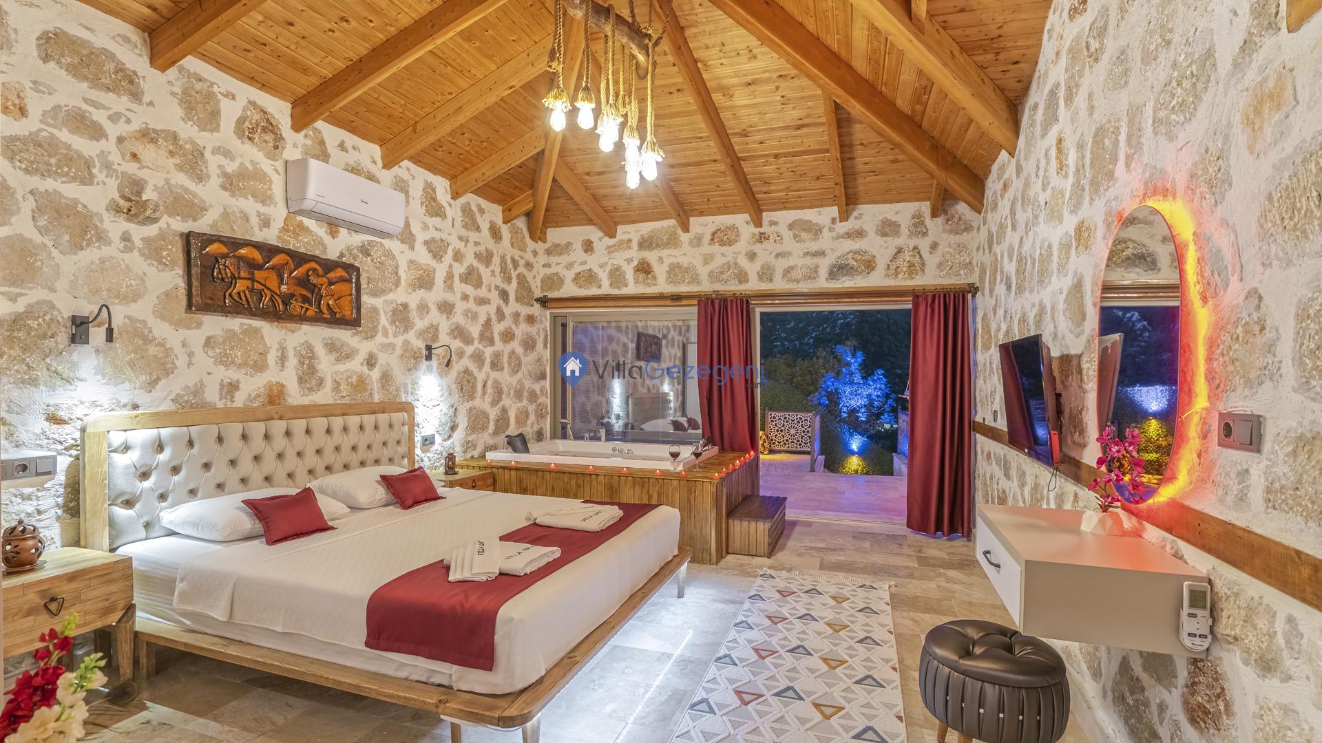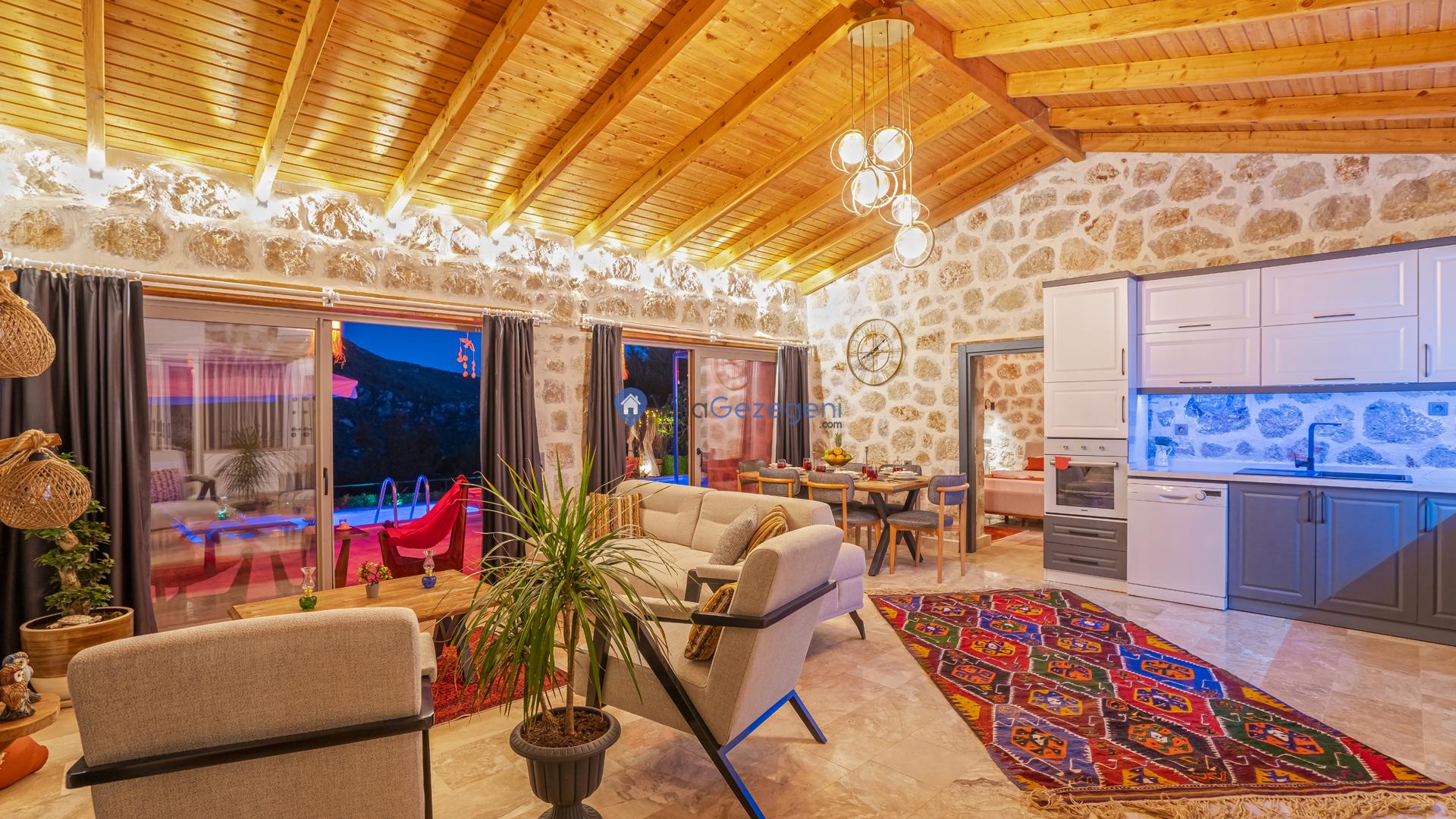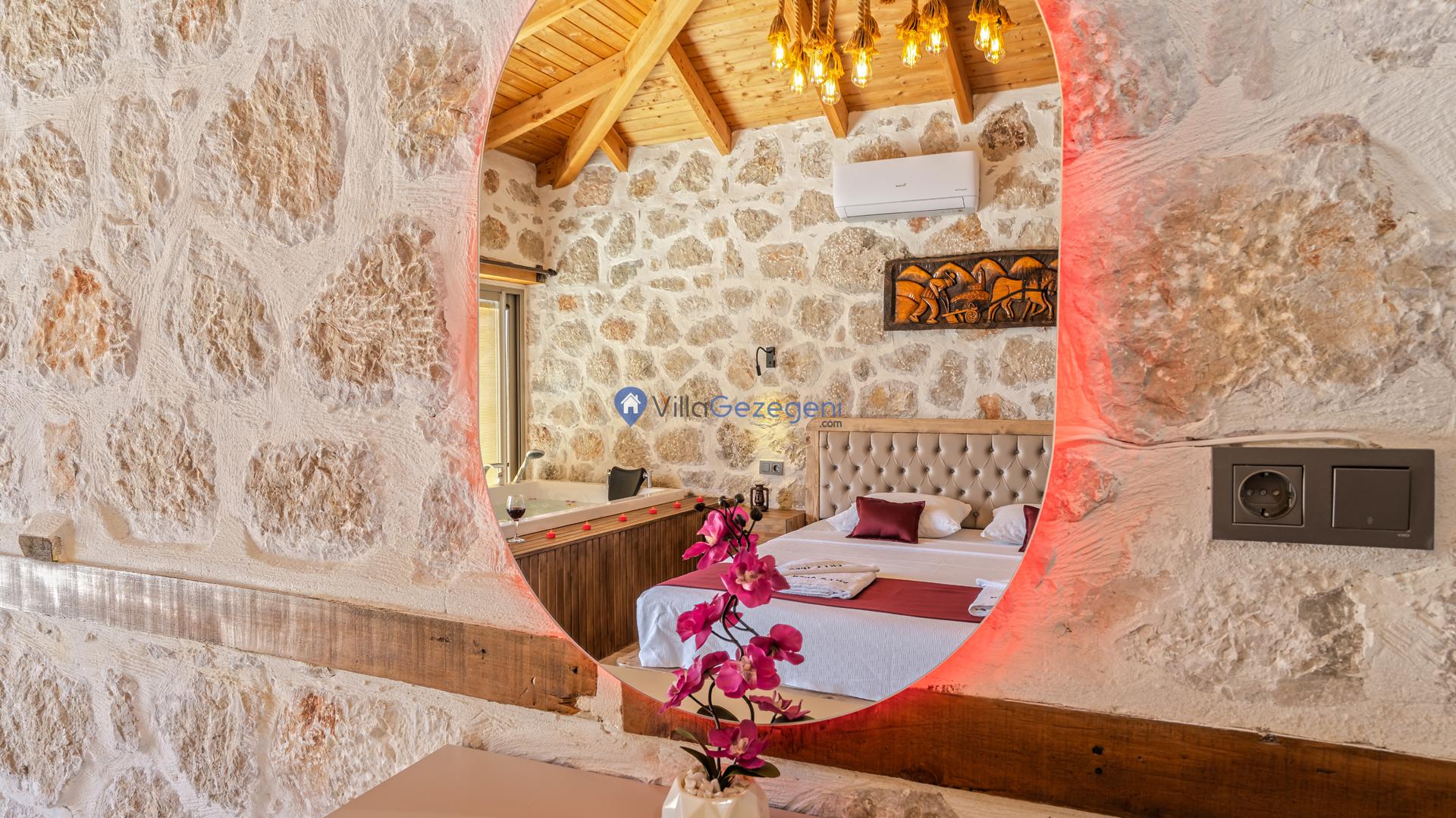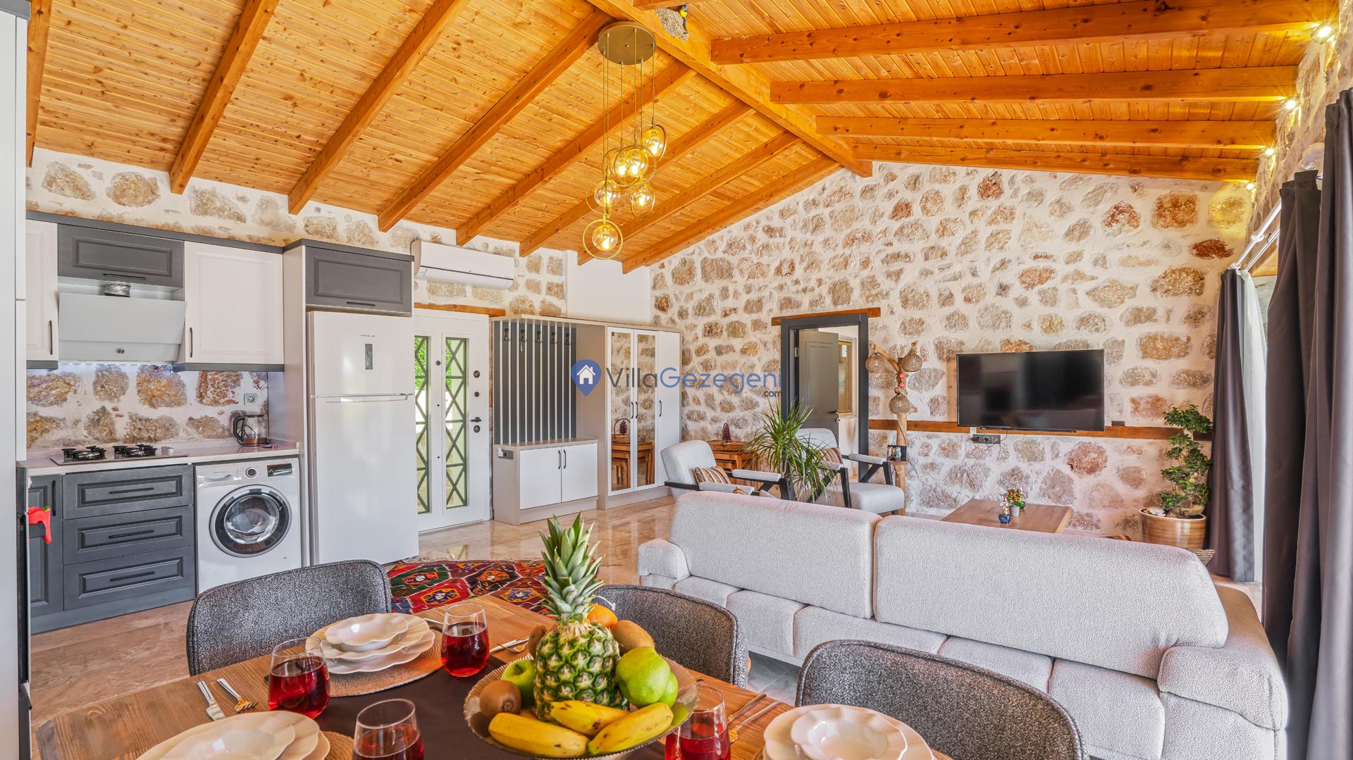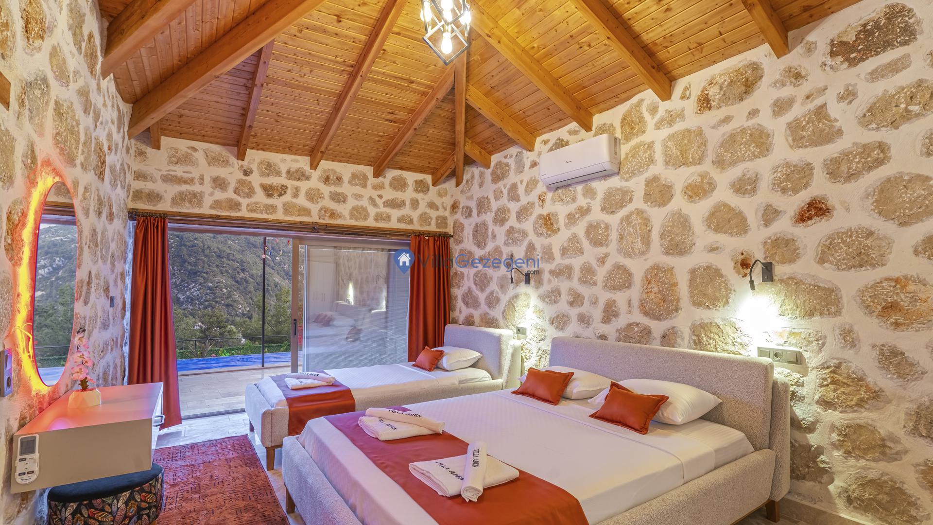 Kaş/Kalkan/İslamlar bölgesinde yer alan 2 yatak odalı 4 kişi kapasiteli muhafazakar doğa içerisinde balayı villası.